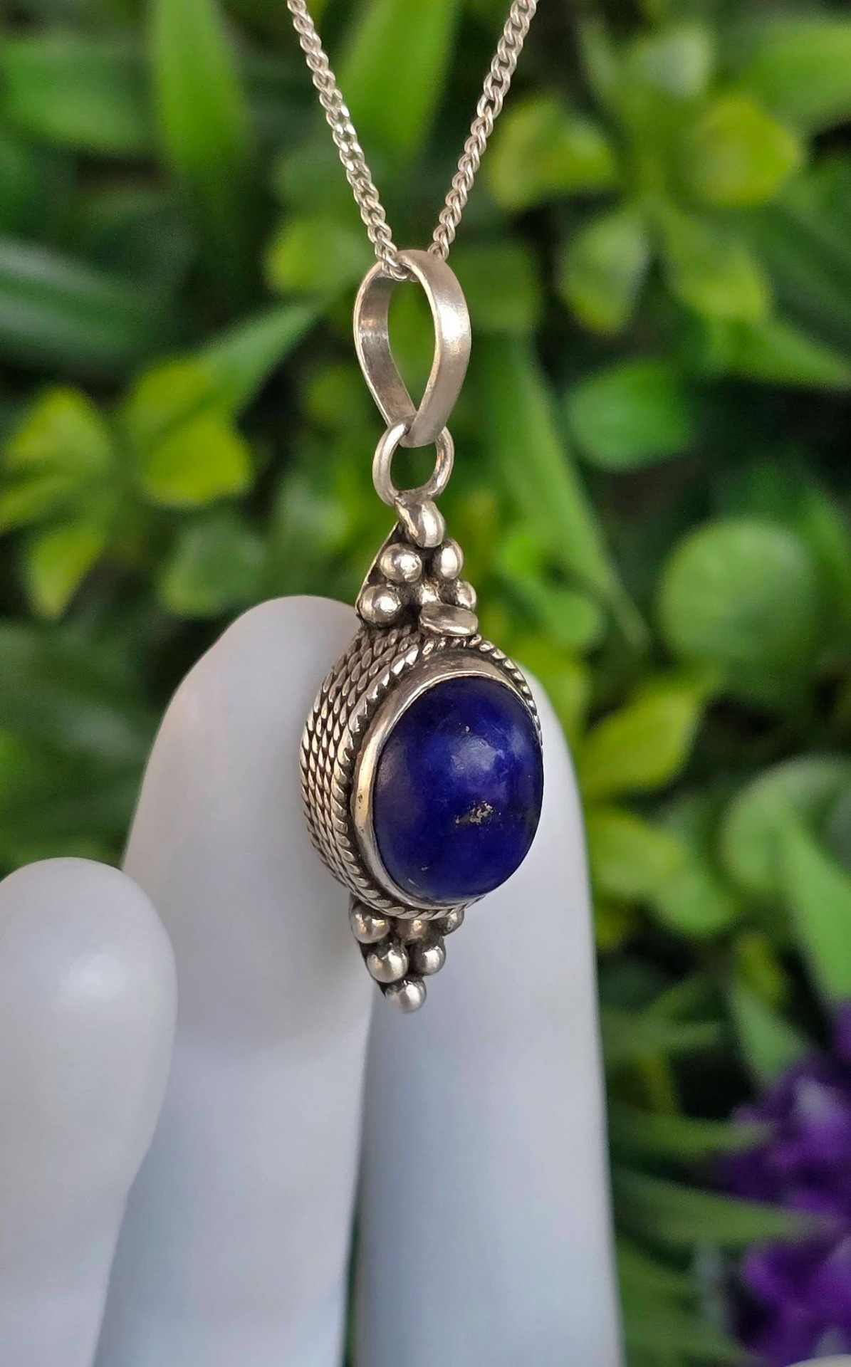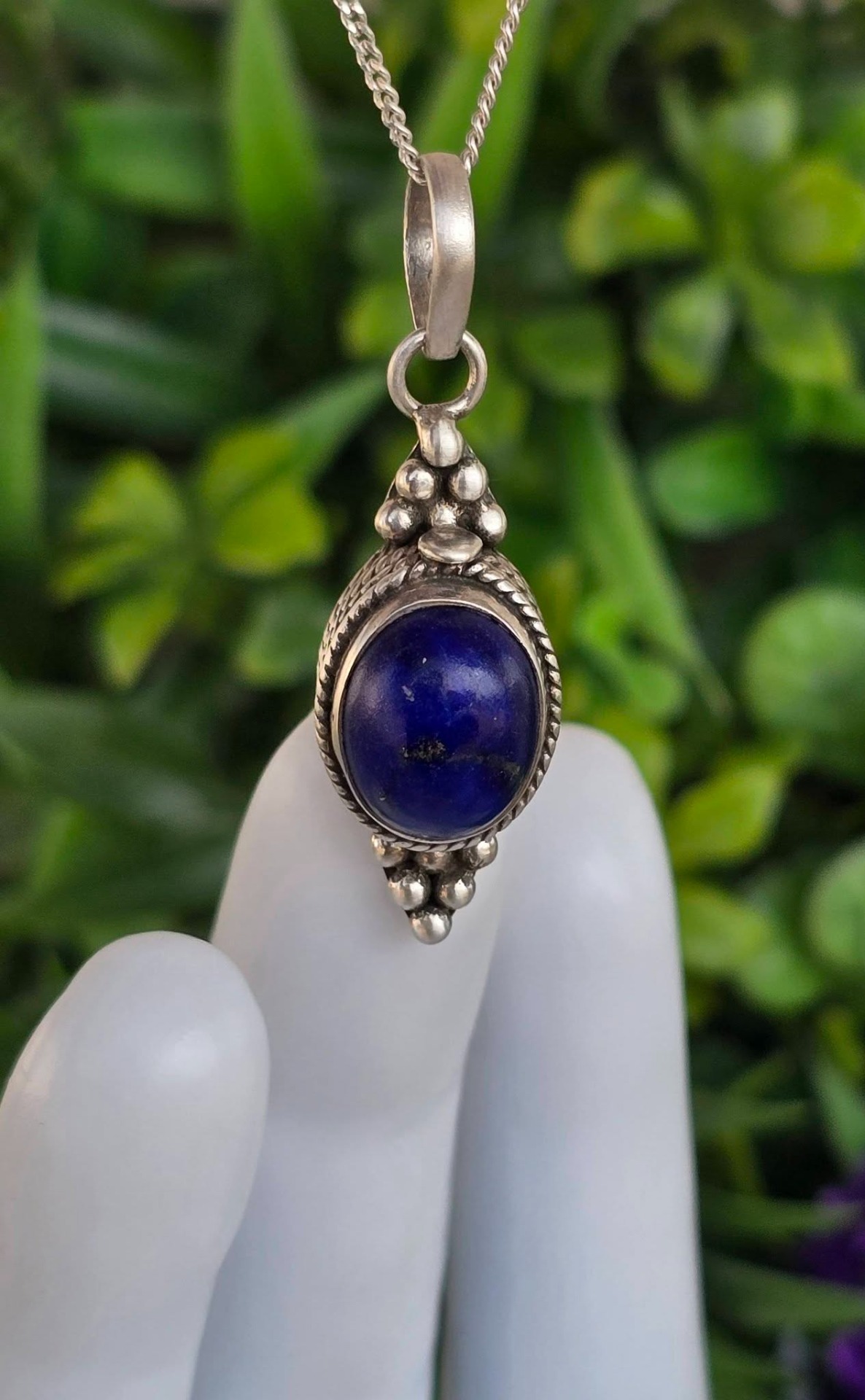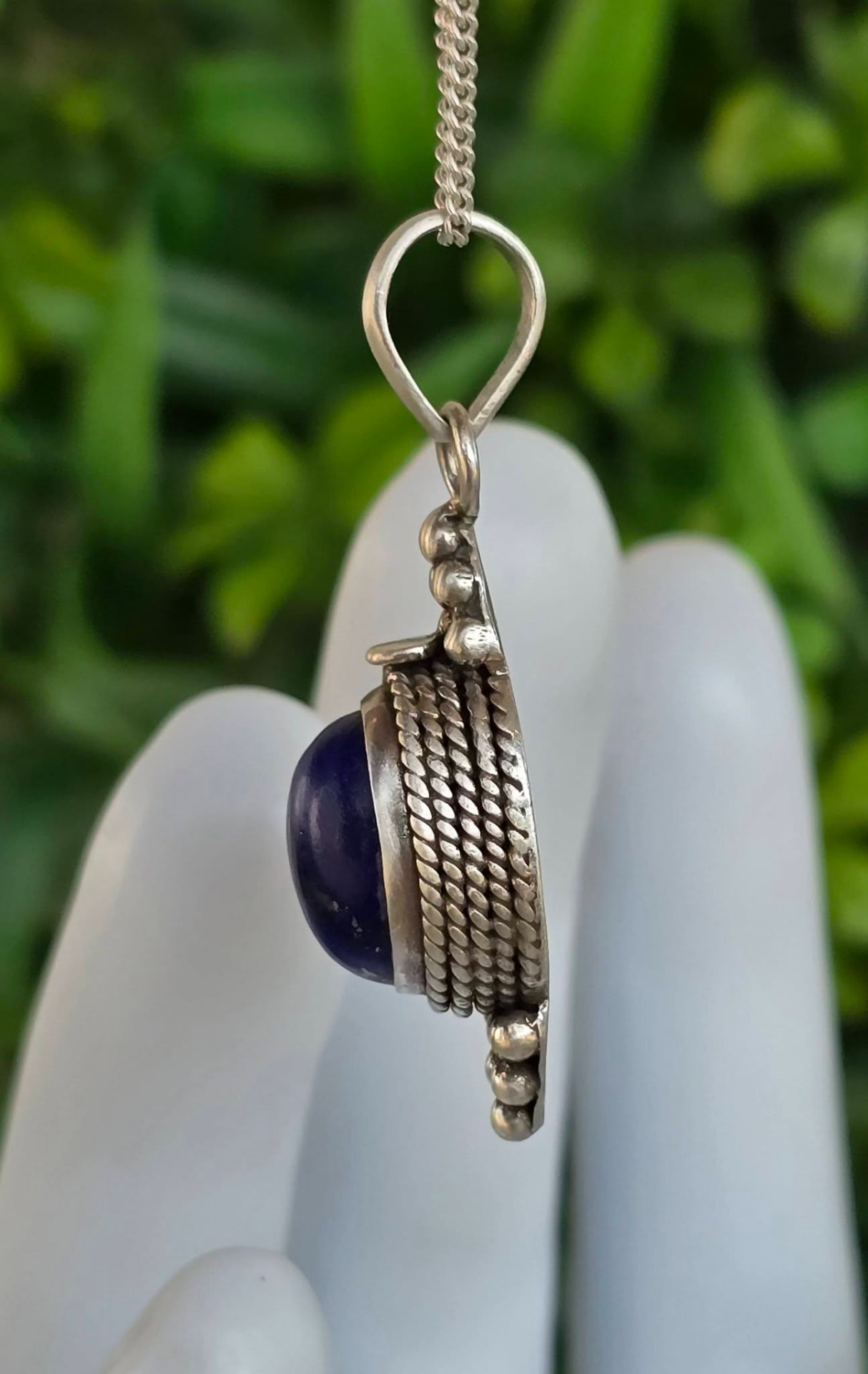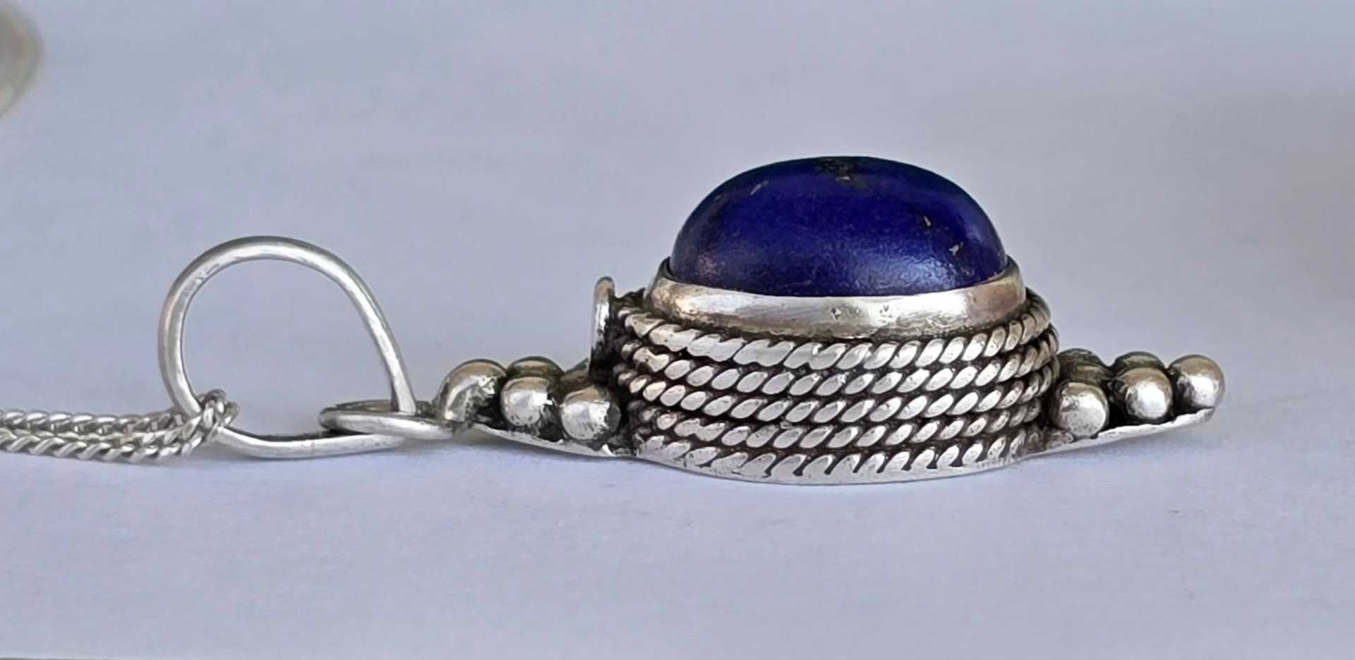 Lanț cu pandantiv vechi din argint, cu lapis lazuli natural, cu incluziuni de pirită.