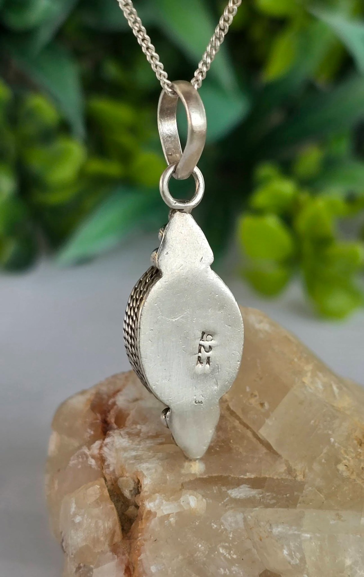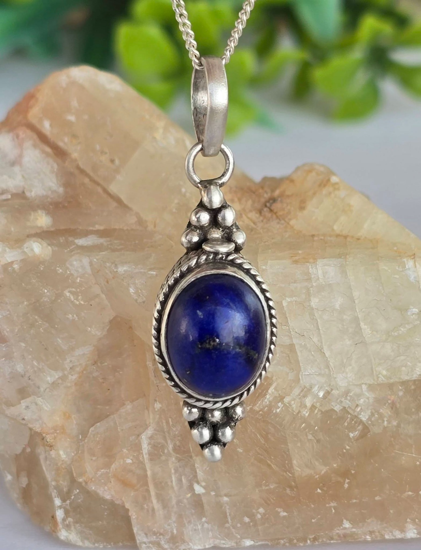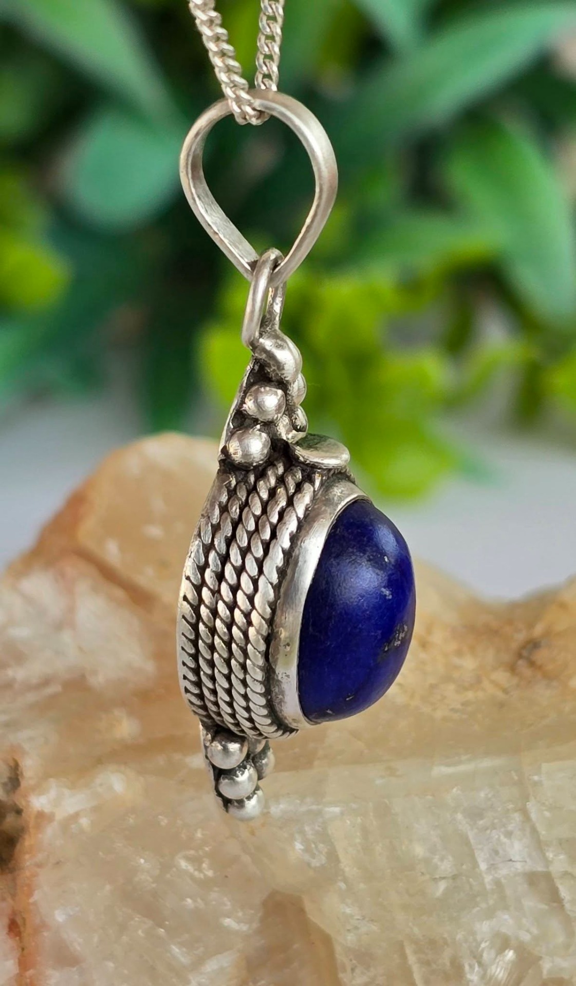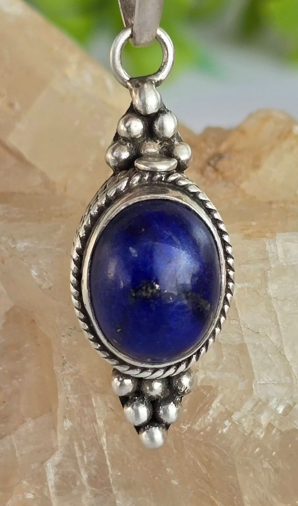 Lanț cu pandantiv vechi din argint, cu lapis lazuli natural, cu incluziuni de pirită.