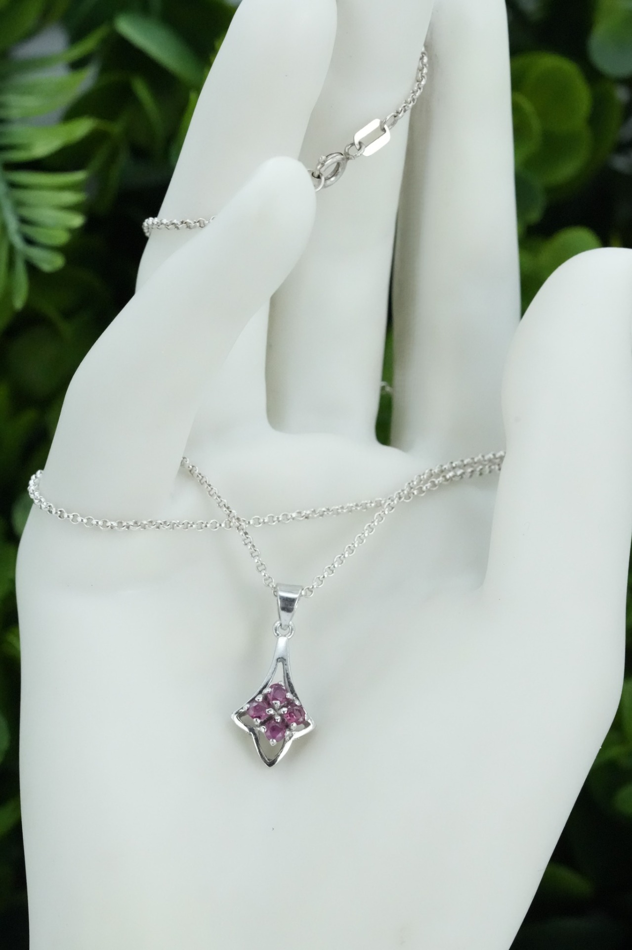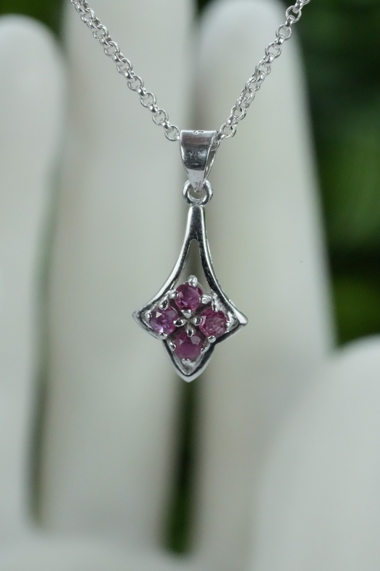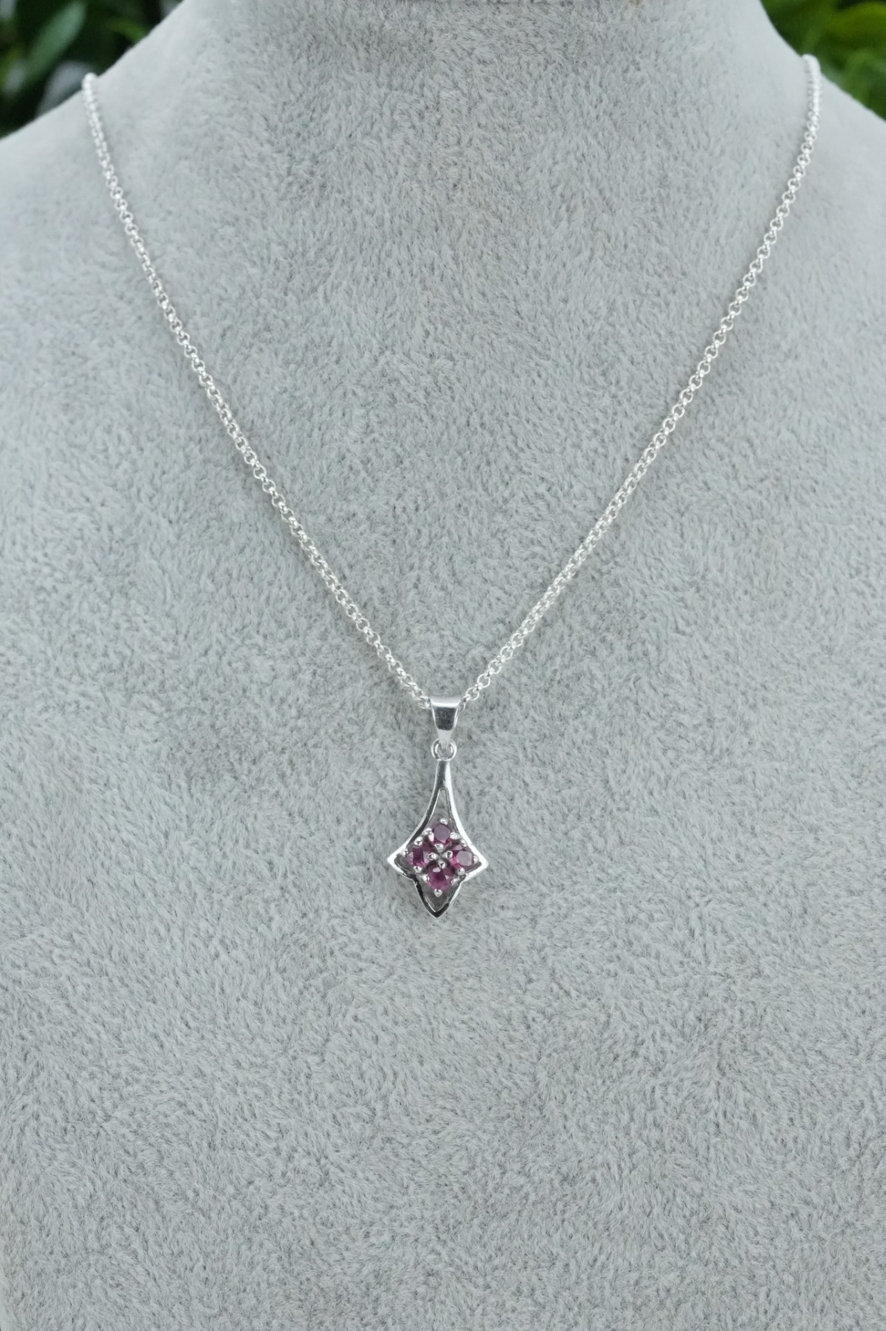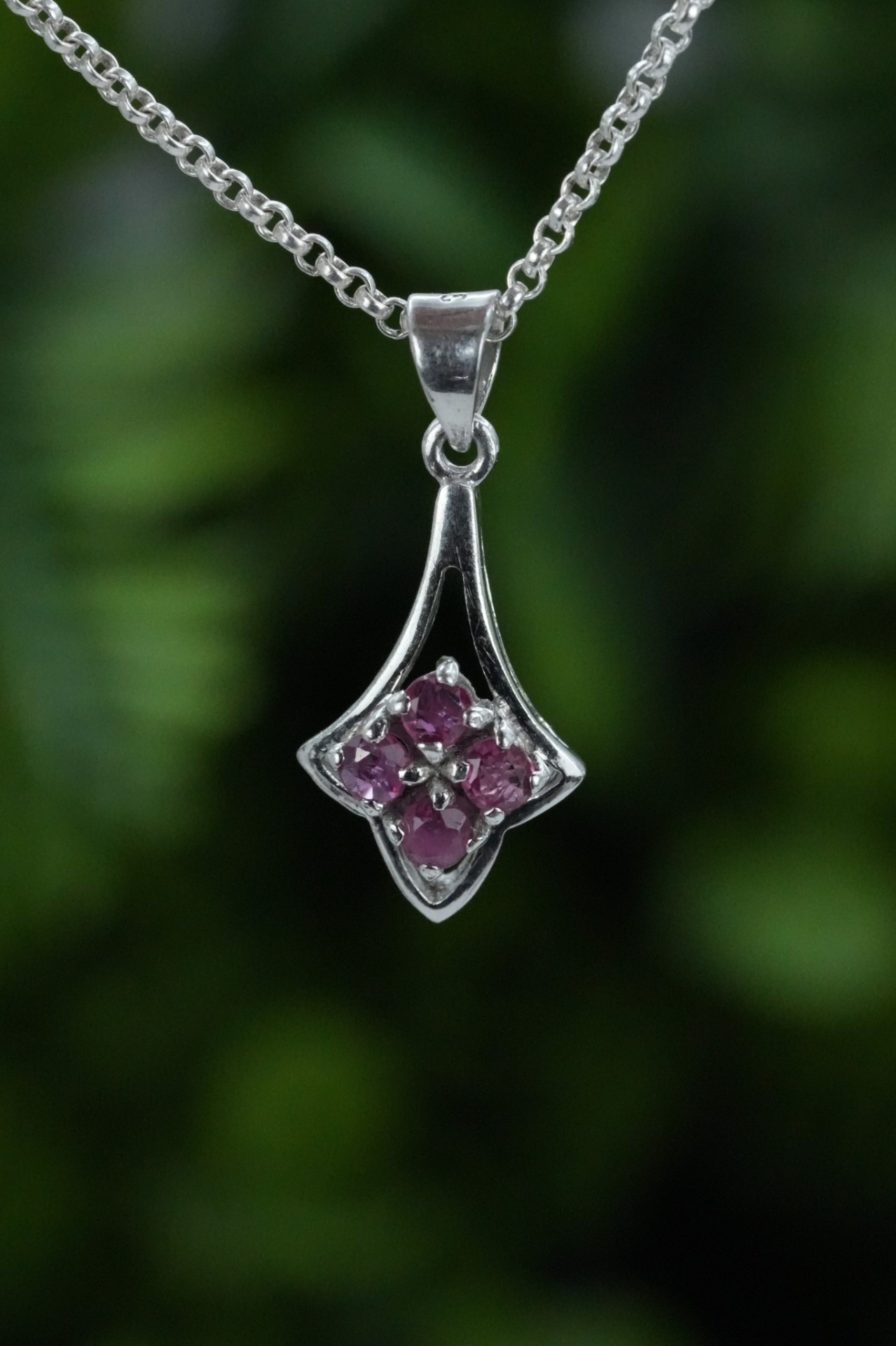Lanț cu pandantiv vechi din argint, cu rubine naturale.