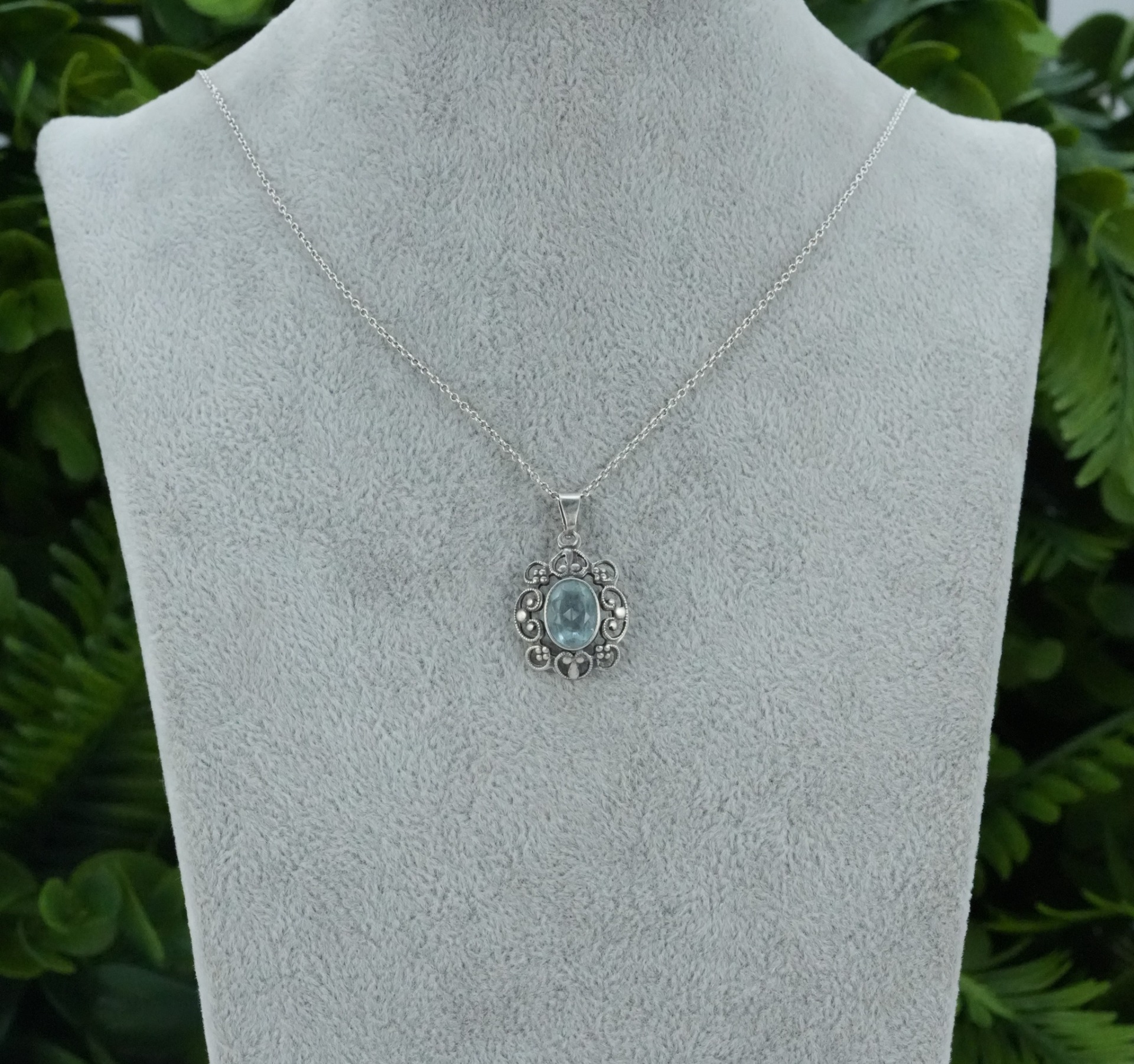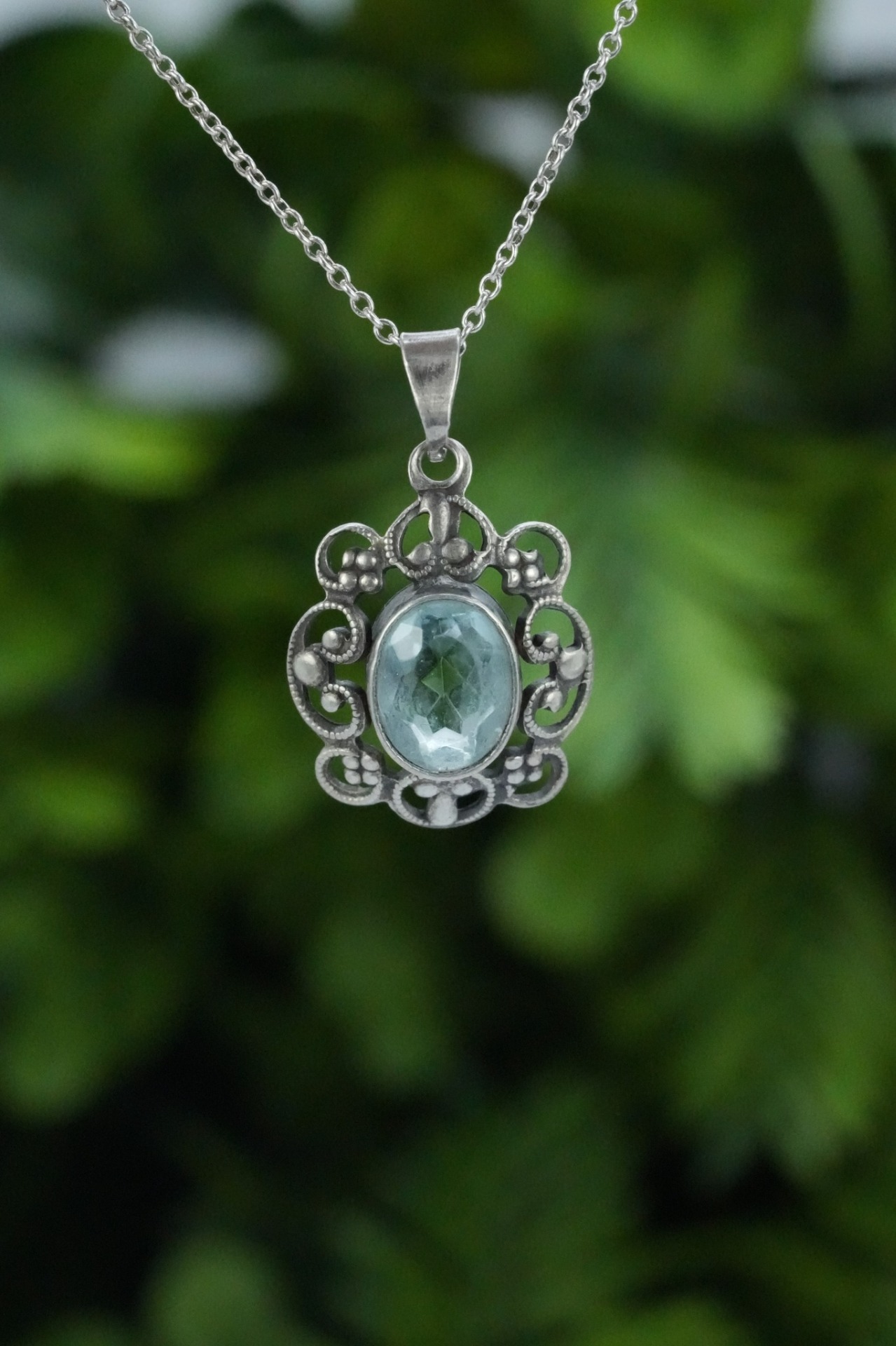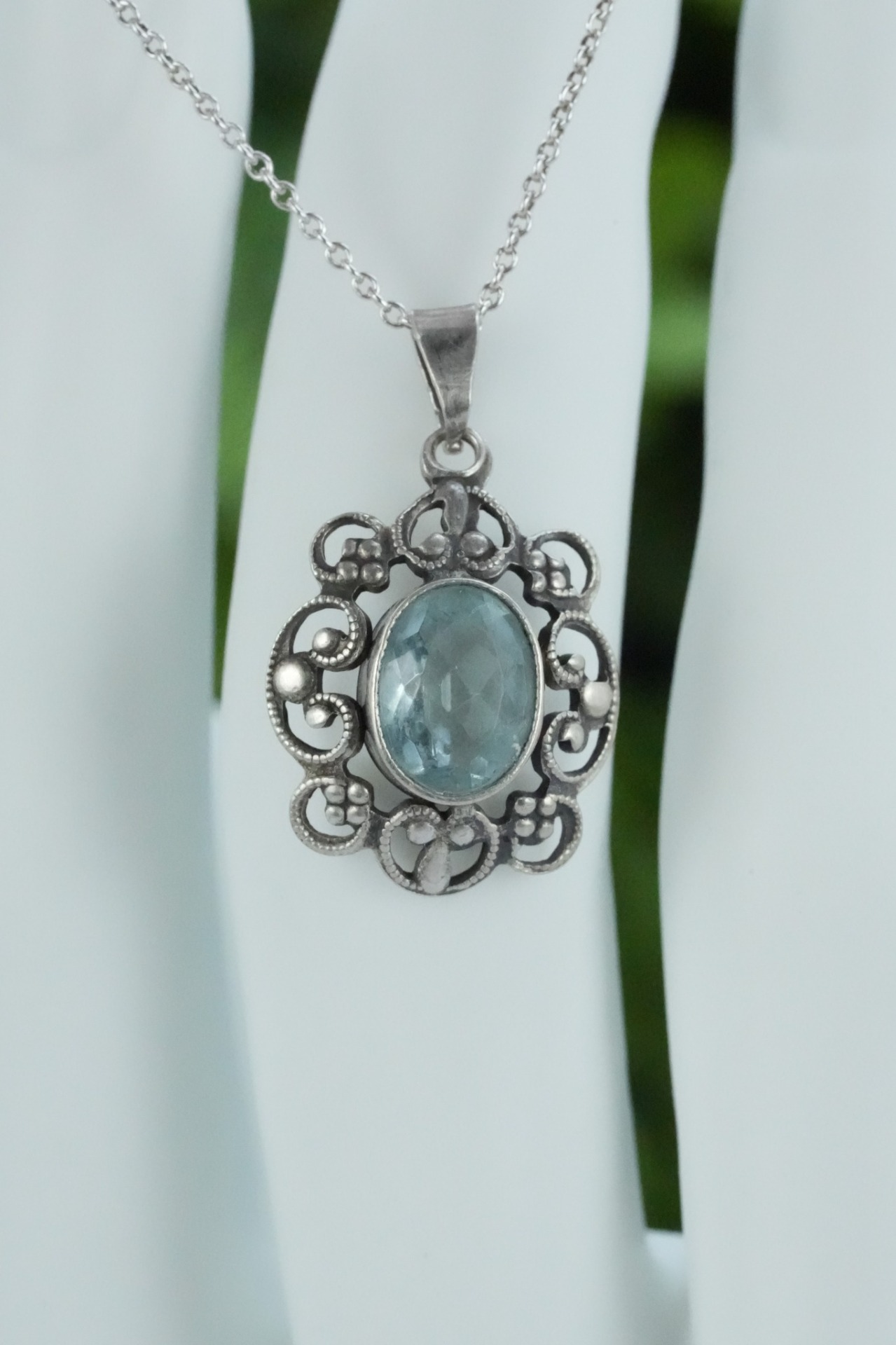 Lanț cu pandantiv vechi, din argint, cu topaz simulat.