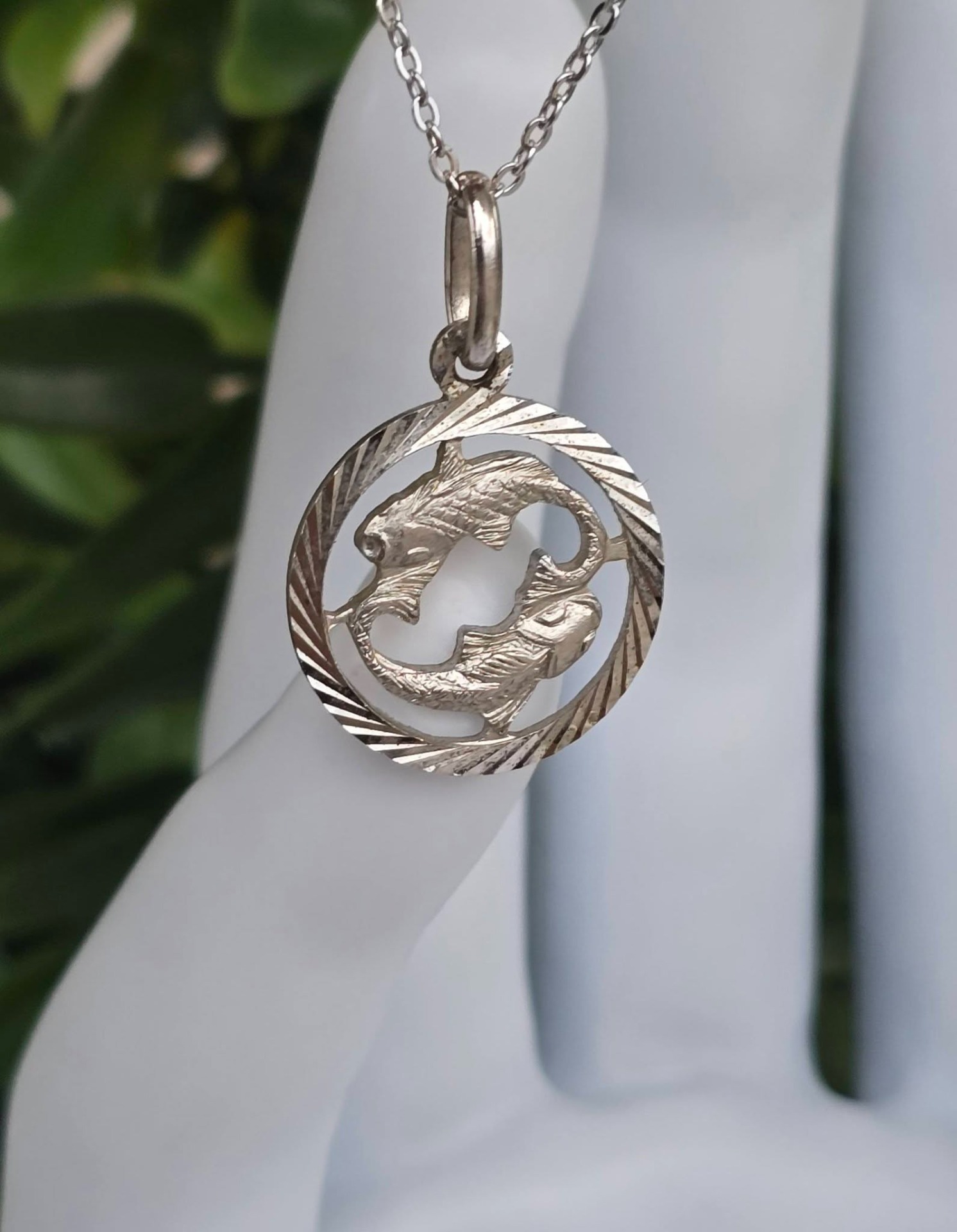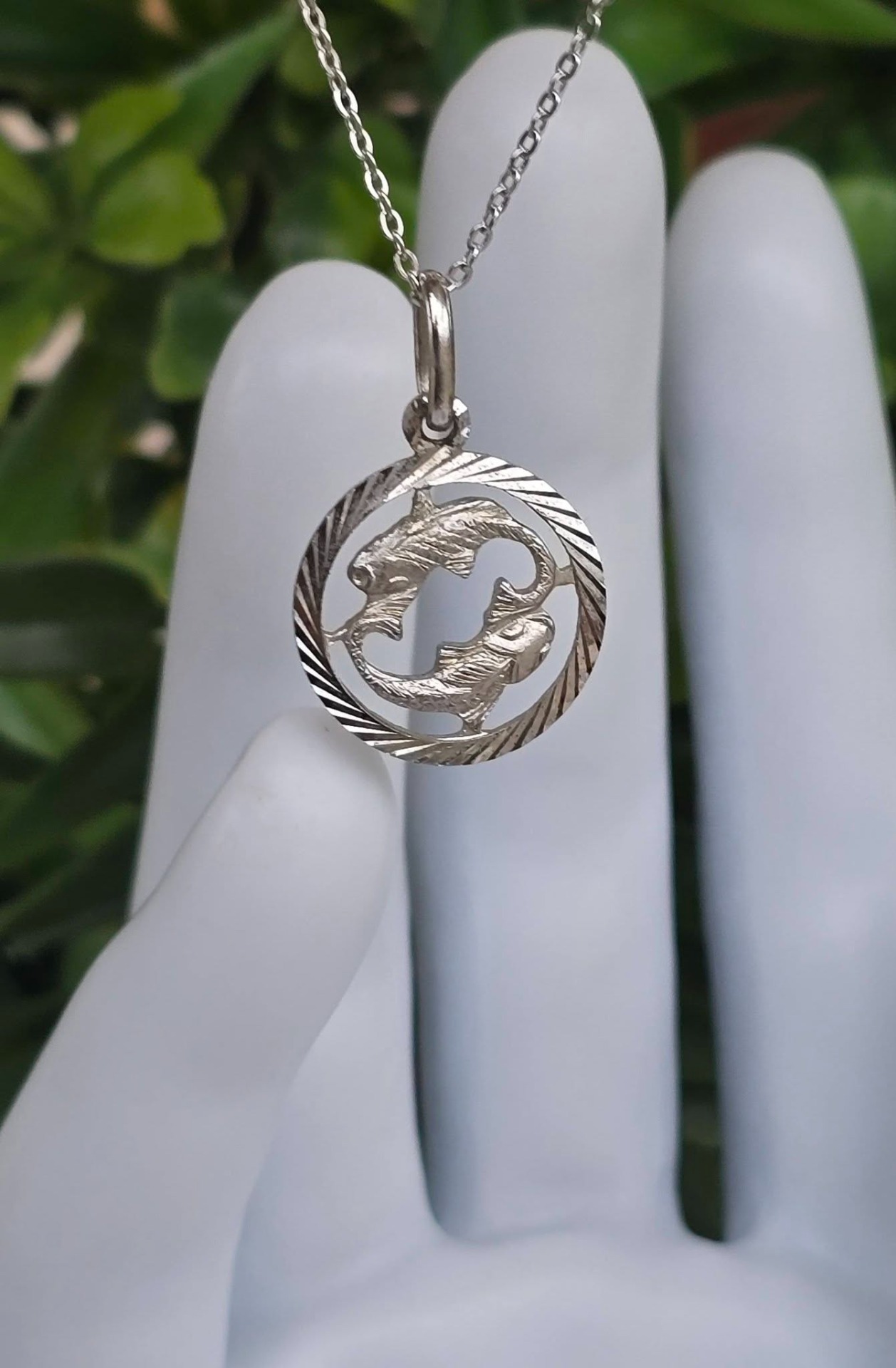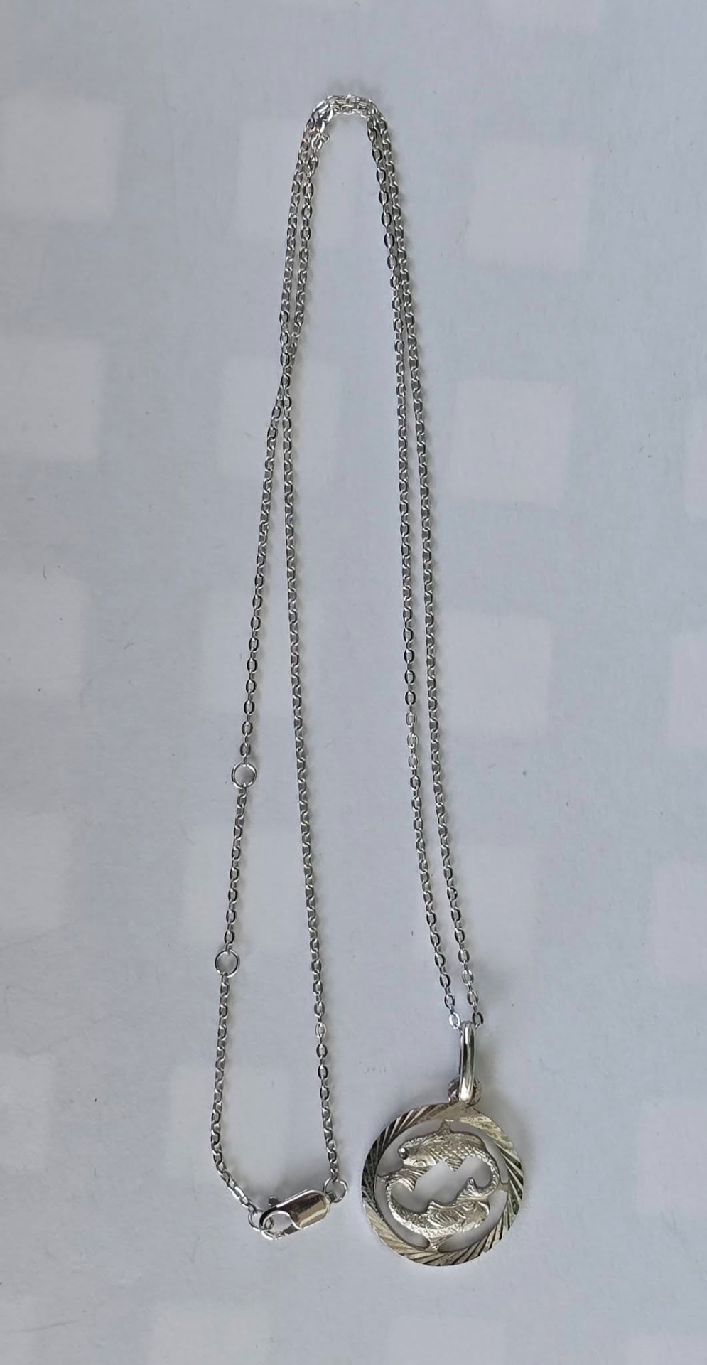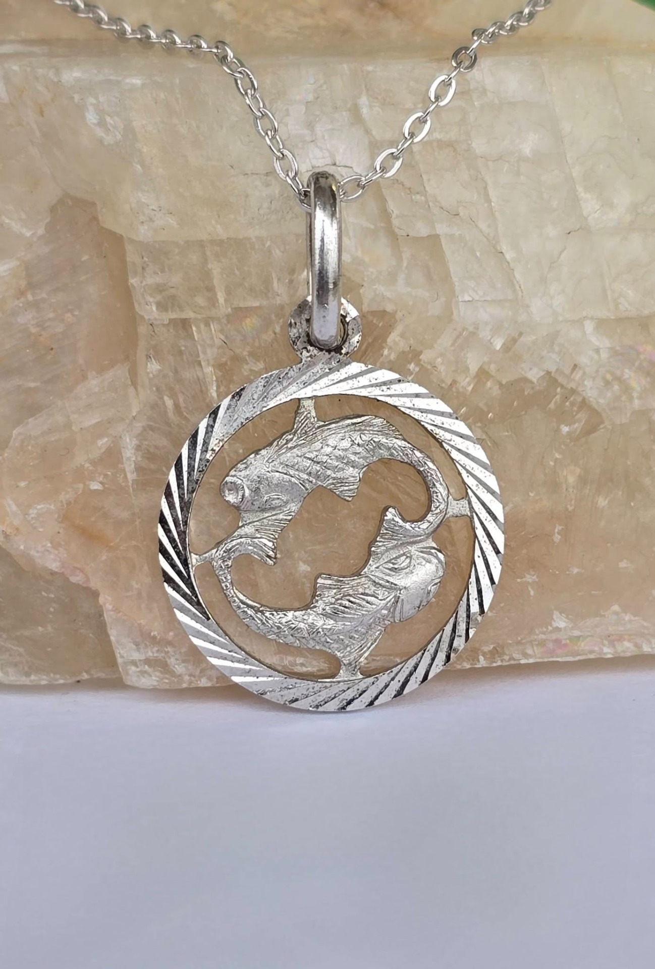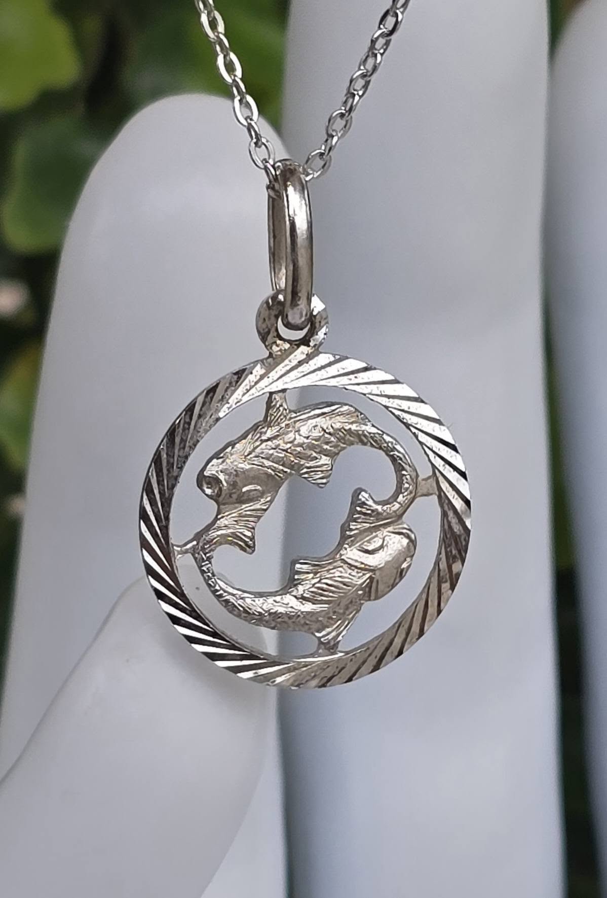 Lanț cu pandantiv vechi zodiacal "Pești", din argint, frumos lucrat manual