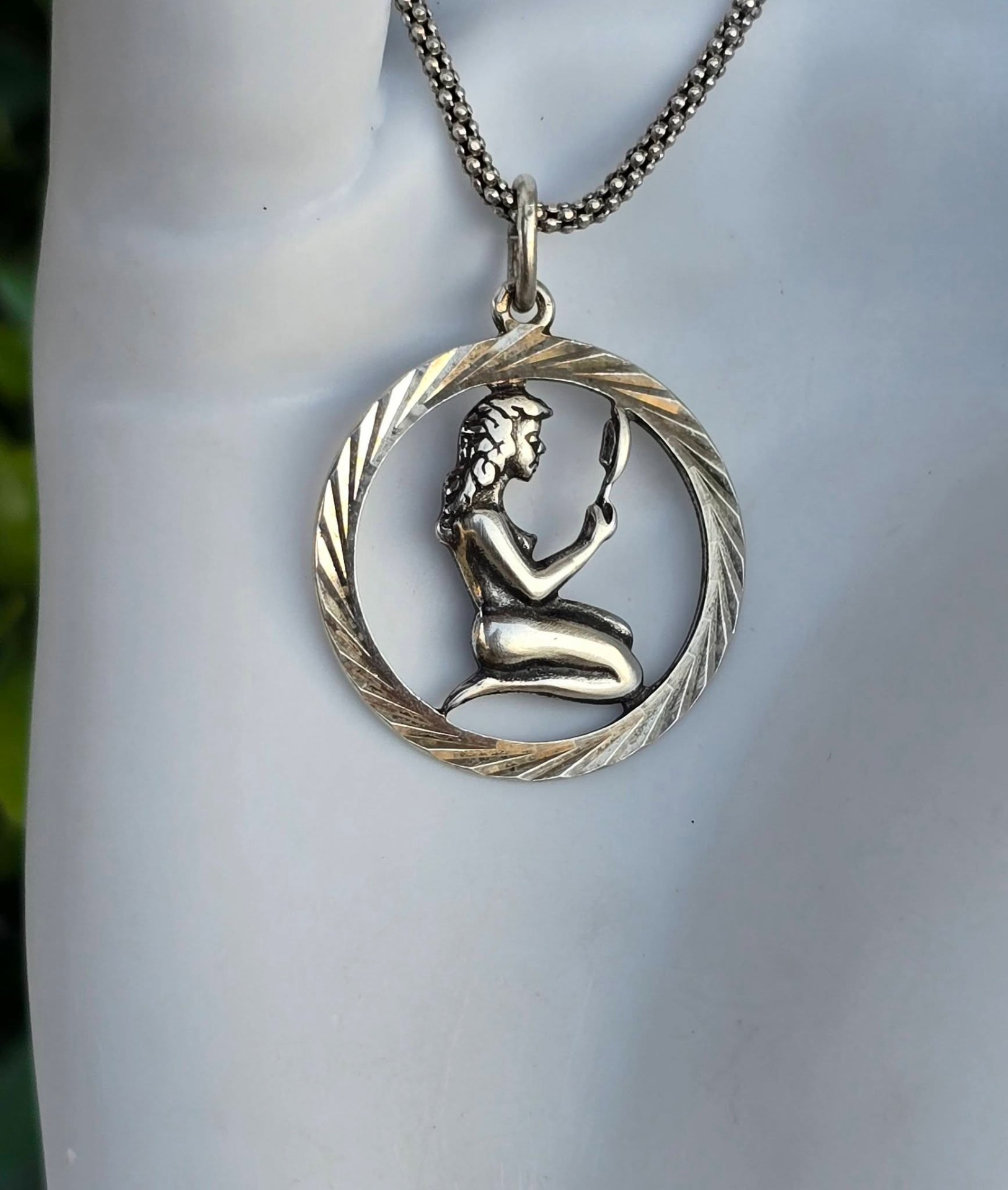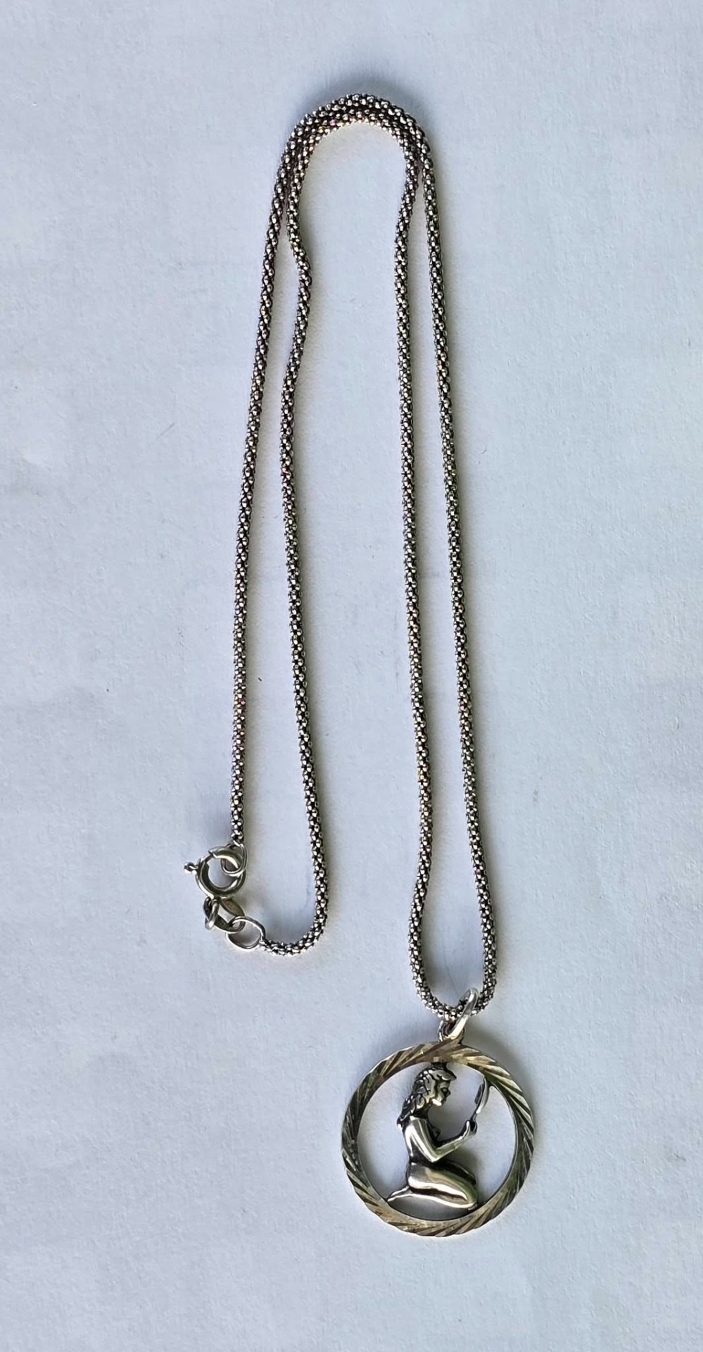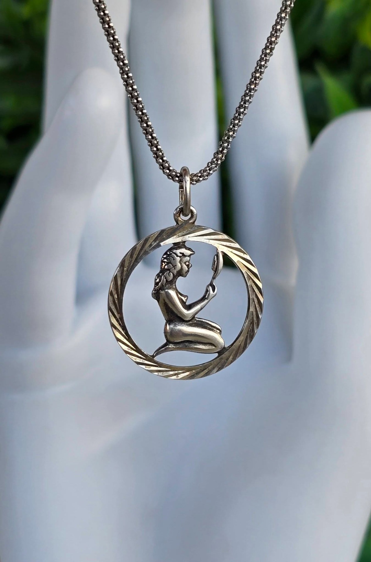 Lanț cu pandantiv zodiacal "Fecioara", vechi, din argint, frumos lucrat manual.