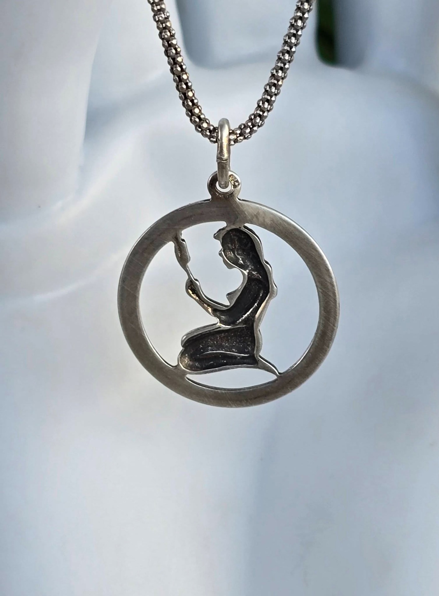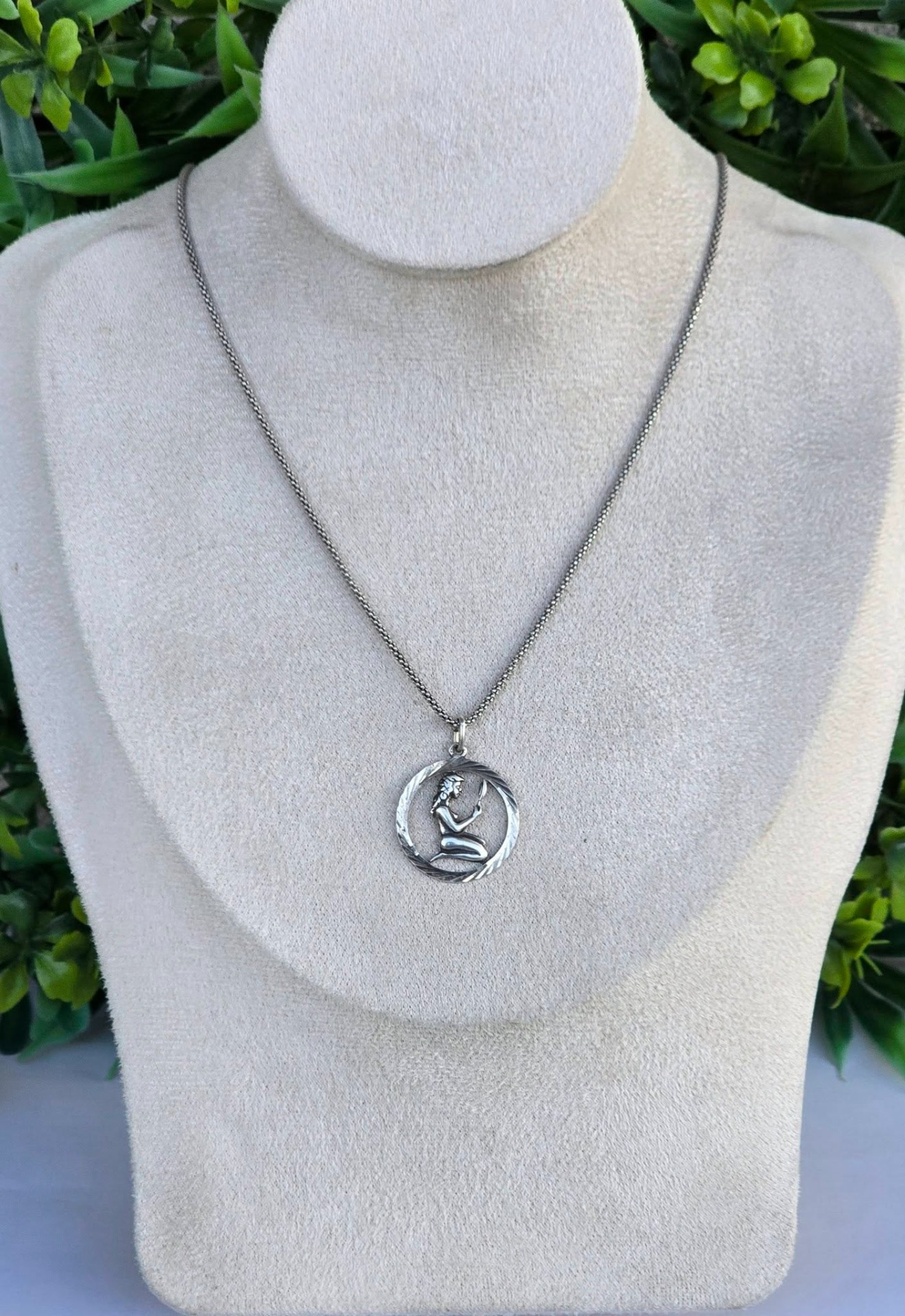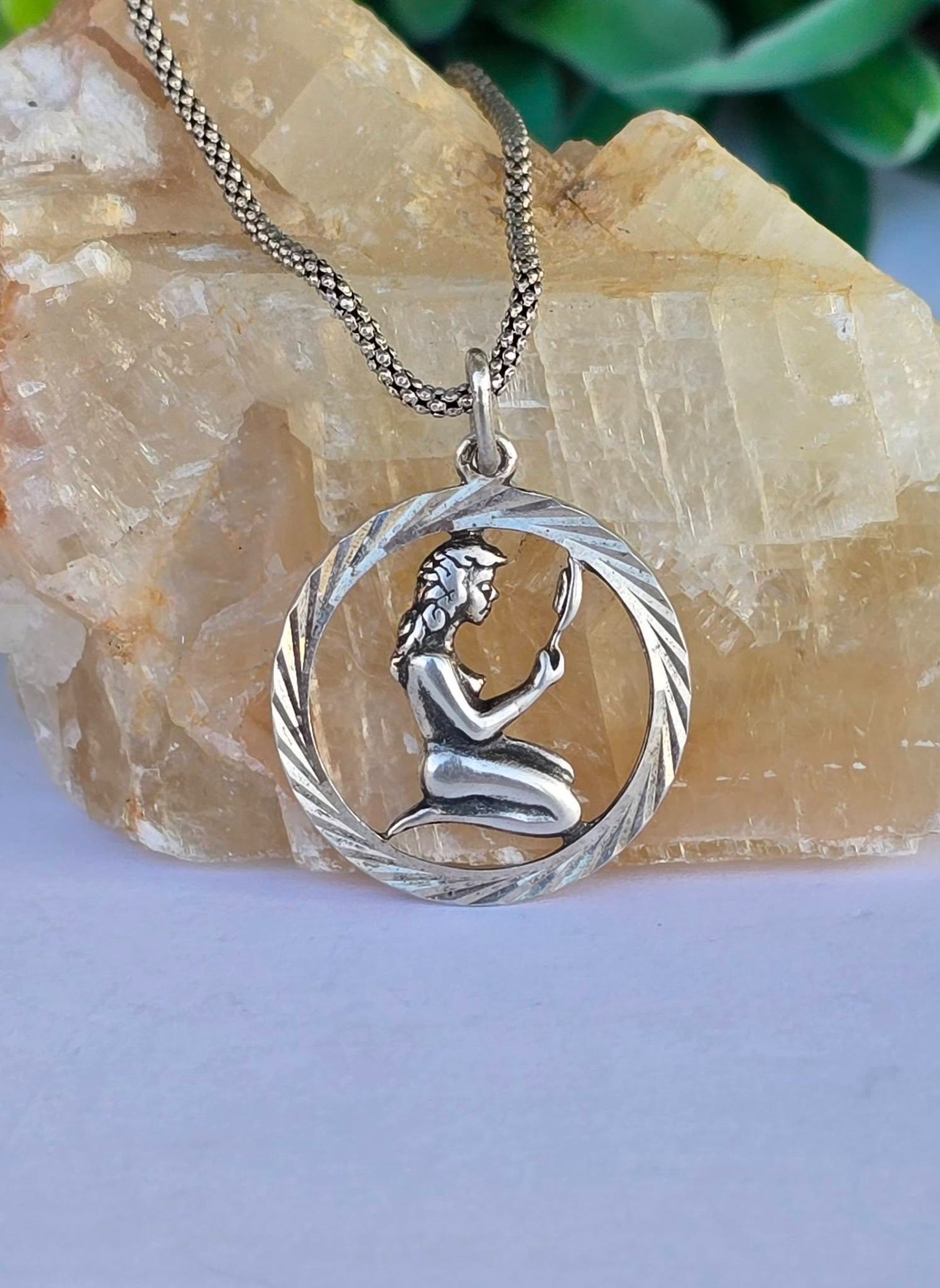 Lanț cu pandantiv zodiacal "Fecioara", vechi, din argint, frumos lucrat manual.