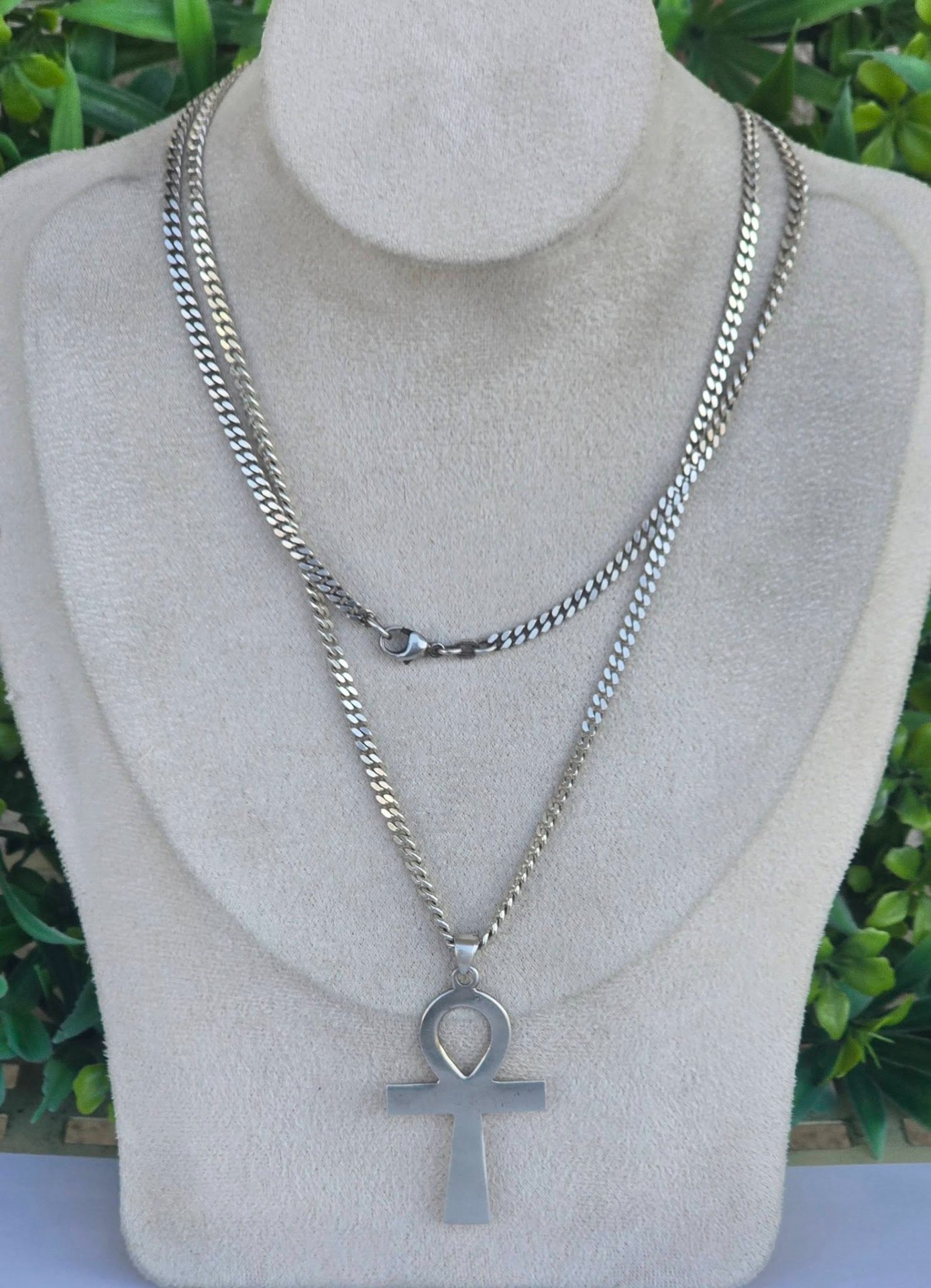Lanț "Friedrich Binder" foarte lung, cu cruce egipteană "Ankh" (crucea egipteană a vieții), unul dintre cele mai puternice simboluri ale Egiptului Antic, reprezentând viața eternă, regenerarea și uniunea dintre elementele masculine și feminine.