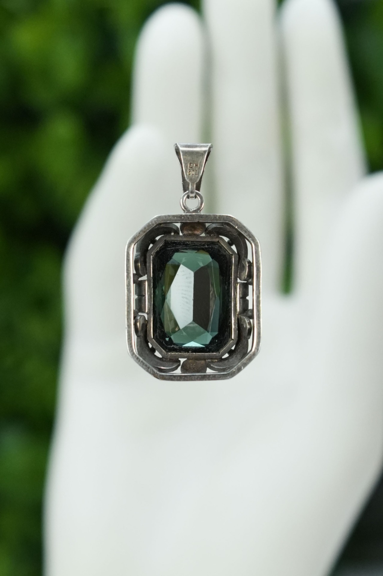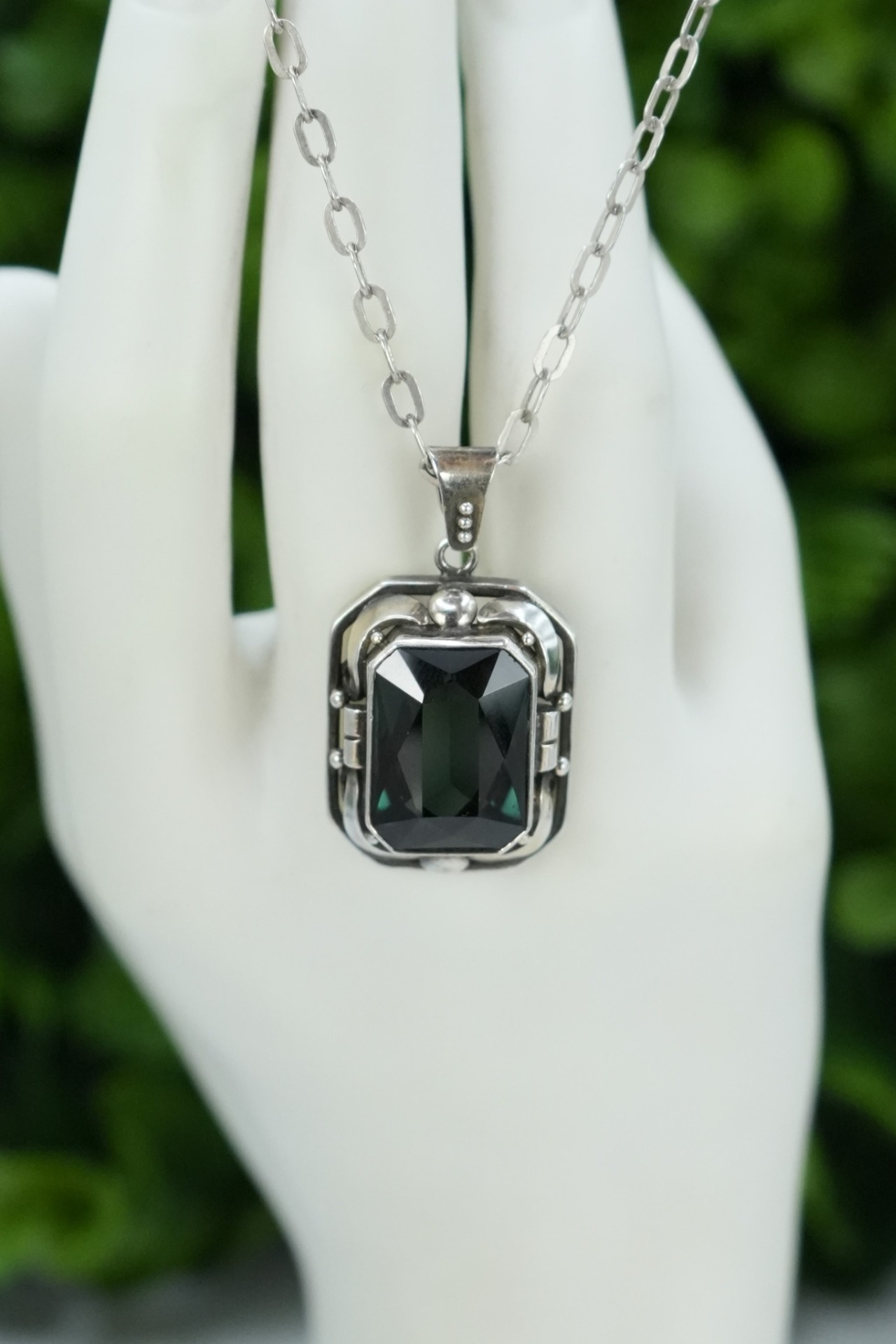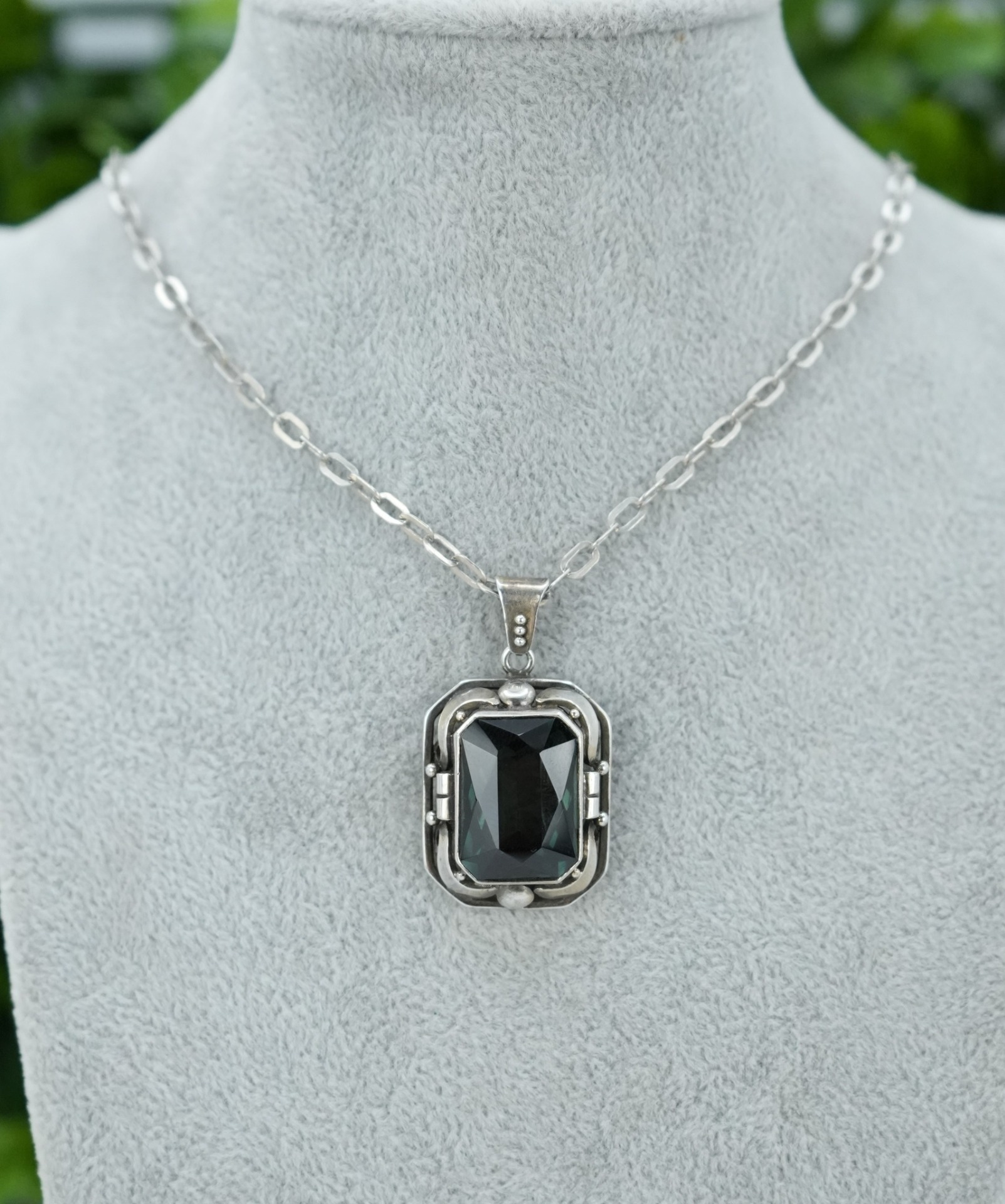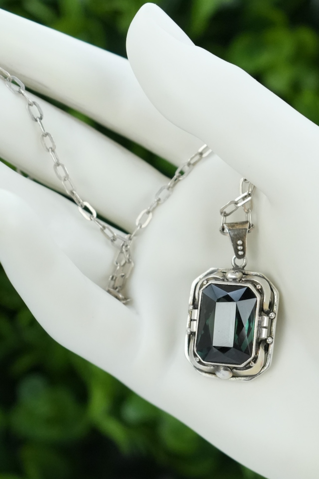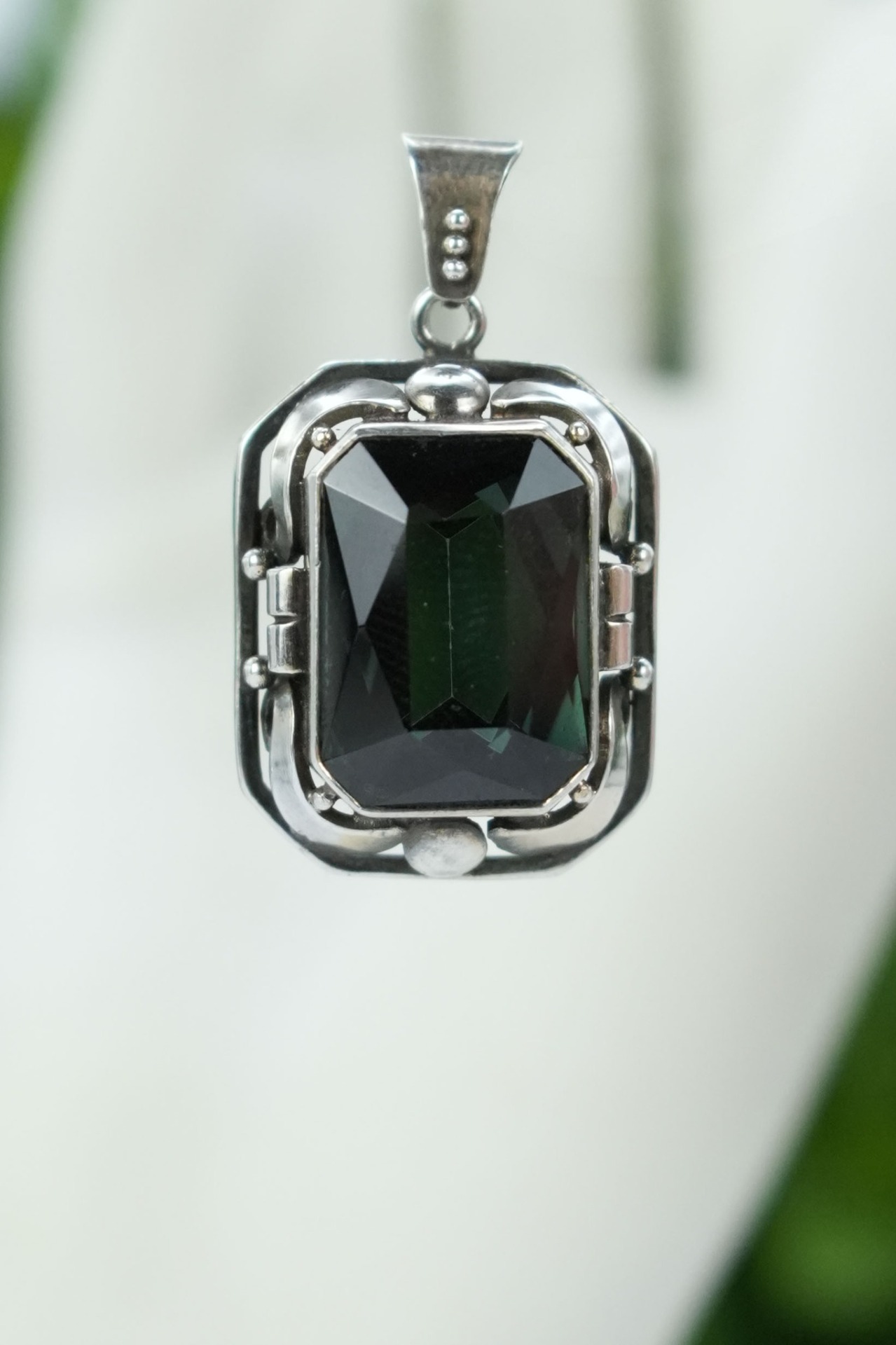 Lanț lung cu pandantiv vechi, din argint, cu peridot superb natural.