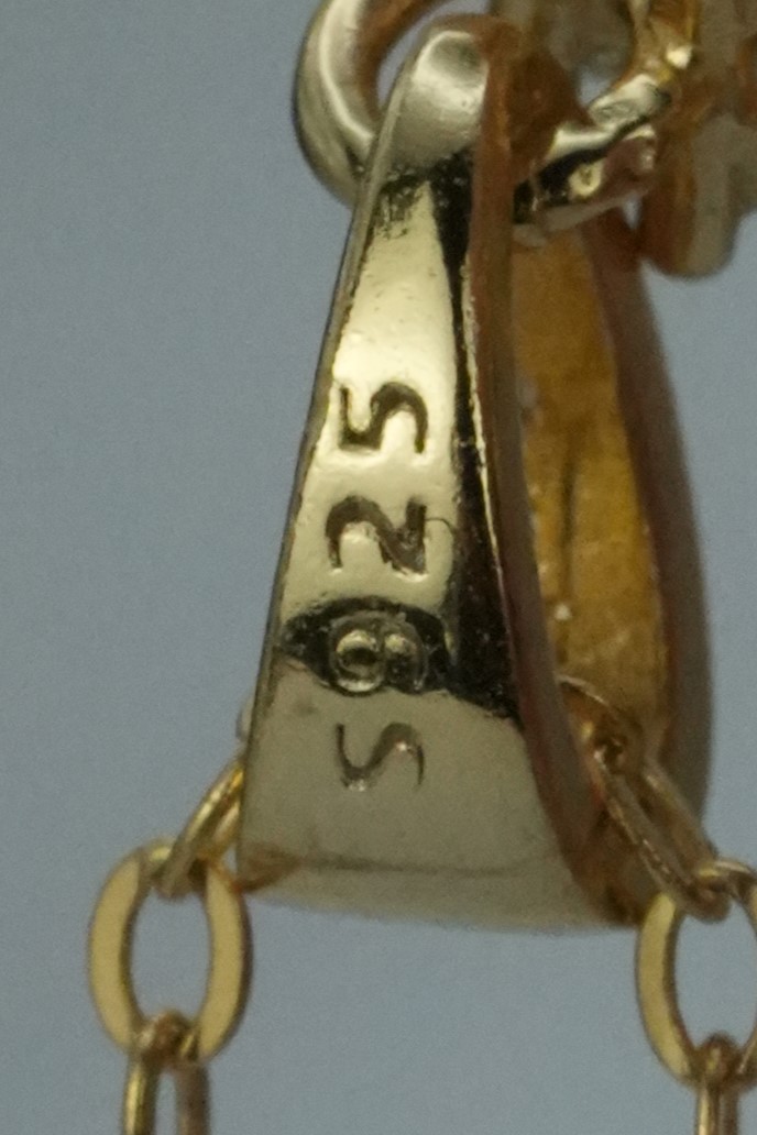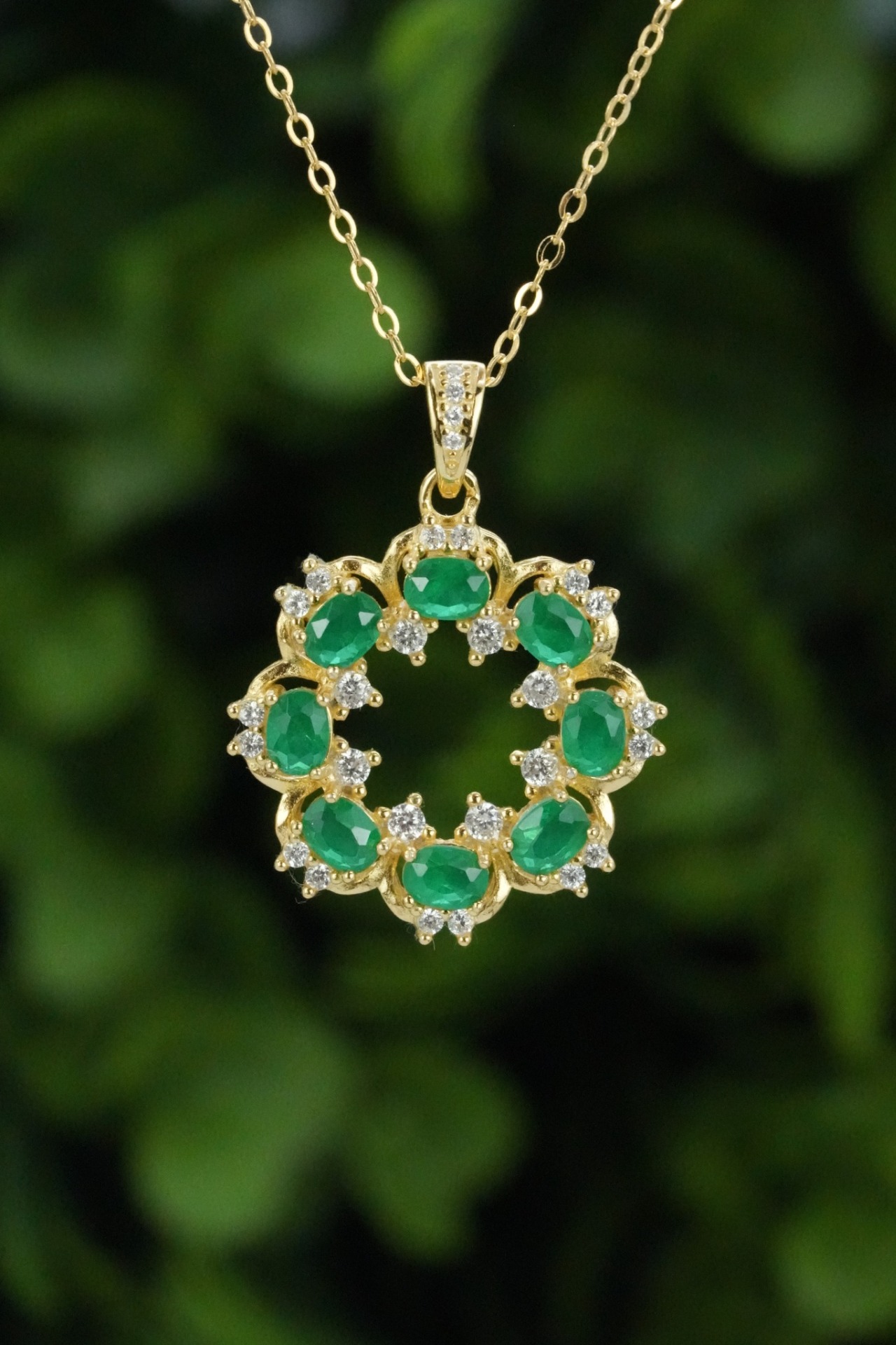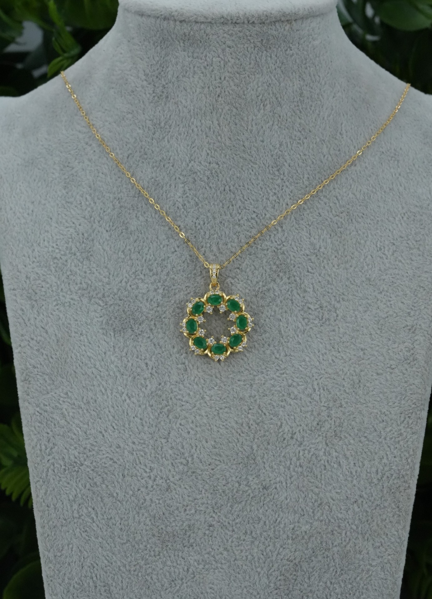 Lanț lung cu pandantiv vechi impresionant, din argint aurit, cu smaralde "doublet" naturale și pietre cubic zirconia.