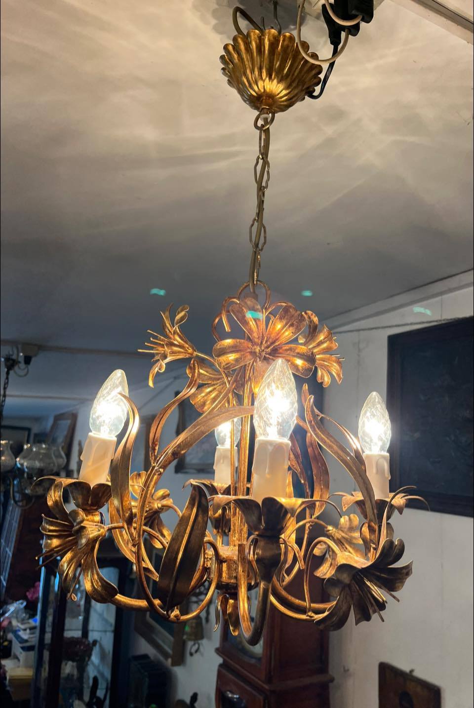 Lustră vintage aurie cu 4becuri – design floral elegant