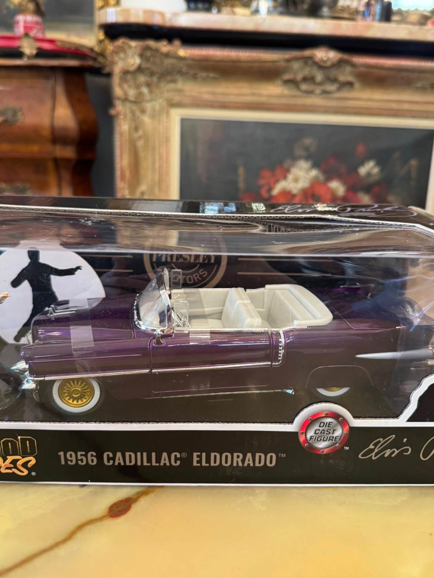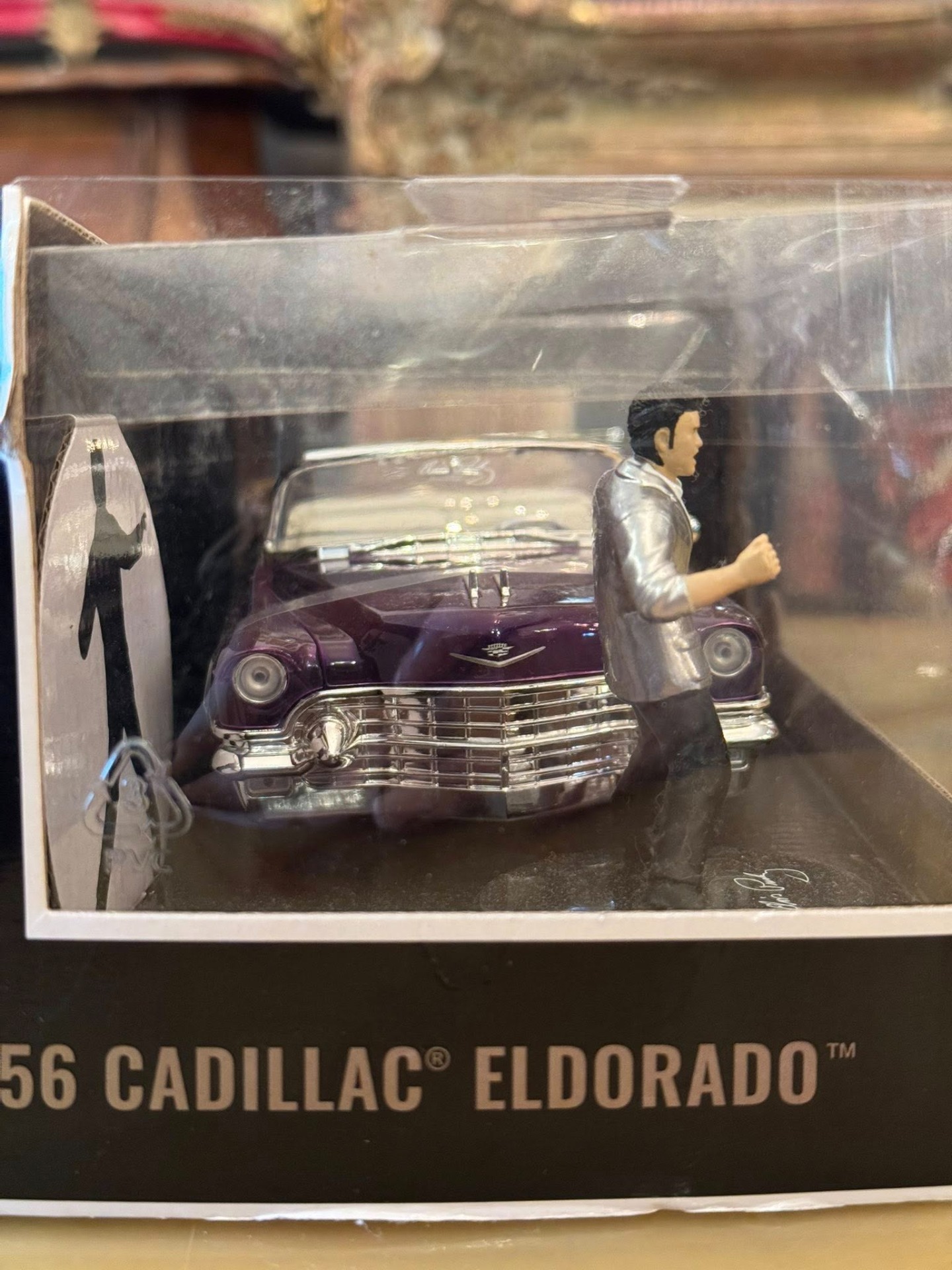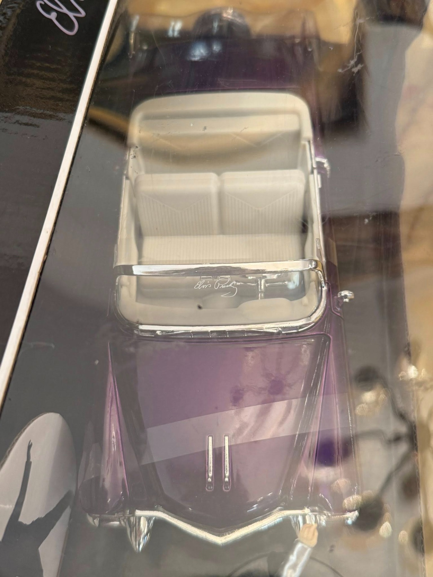 Model mașină: Un Cadillac Eldorado din 1956, varianta decapotabilă, de culoare mov (purple).
