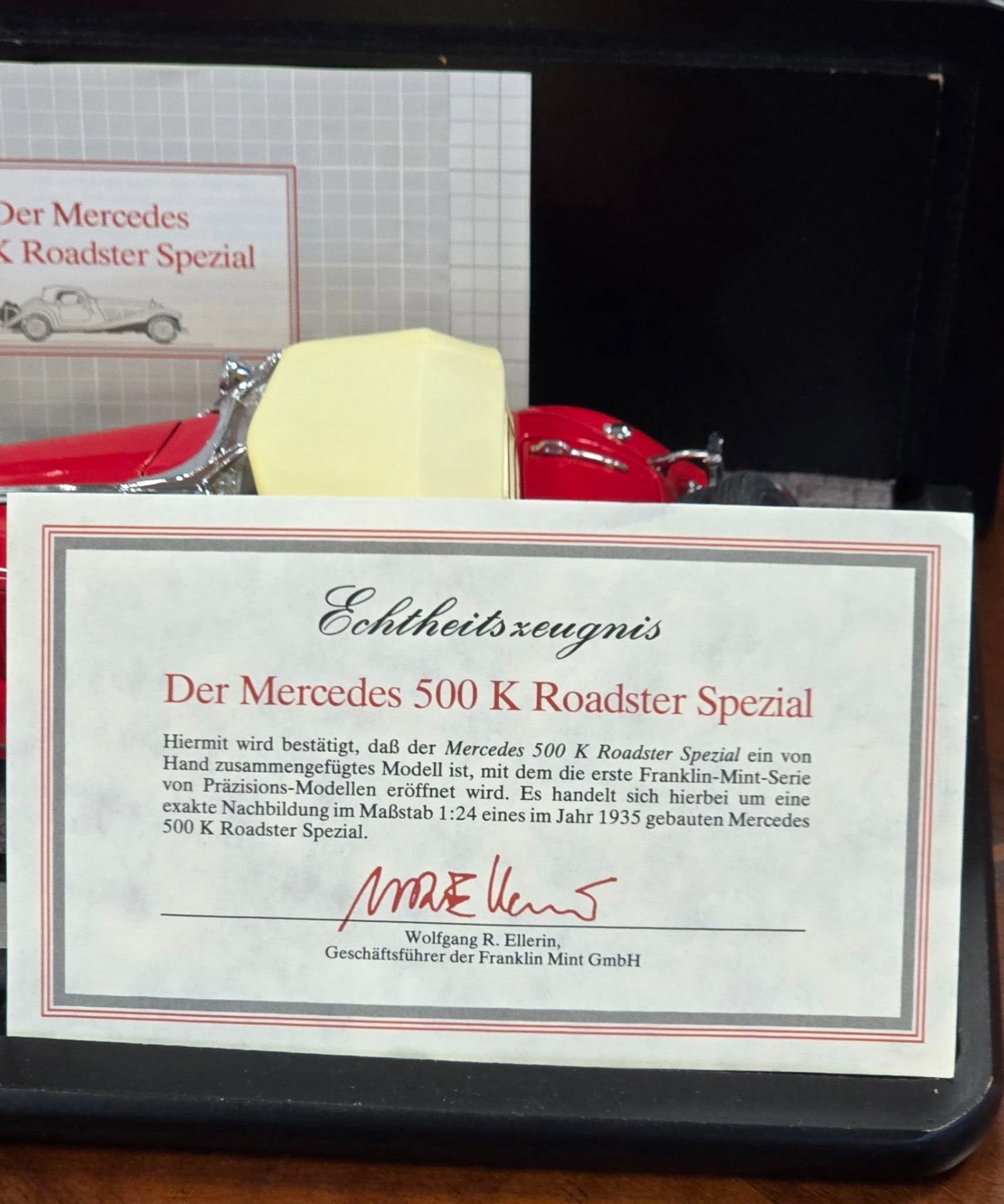 Machetă Franklin Mint de colecție Mercedes-Benz 500 K Special Roadster 1935, unul dintre cele mai iconice și mai dezirabile automobile din istorie, realizat la