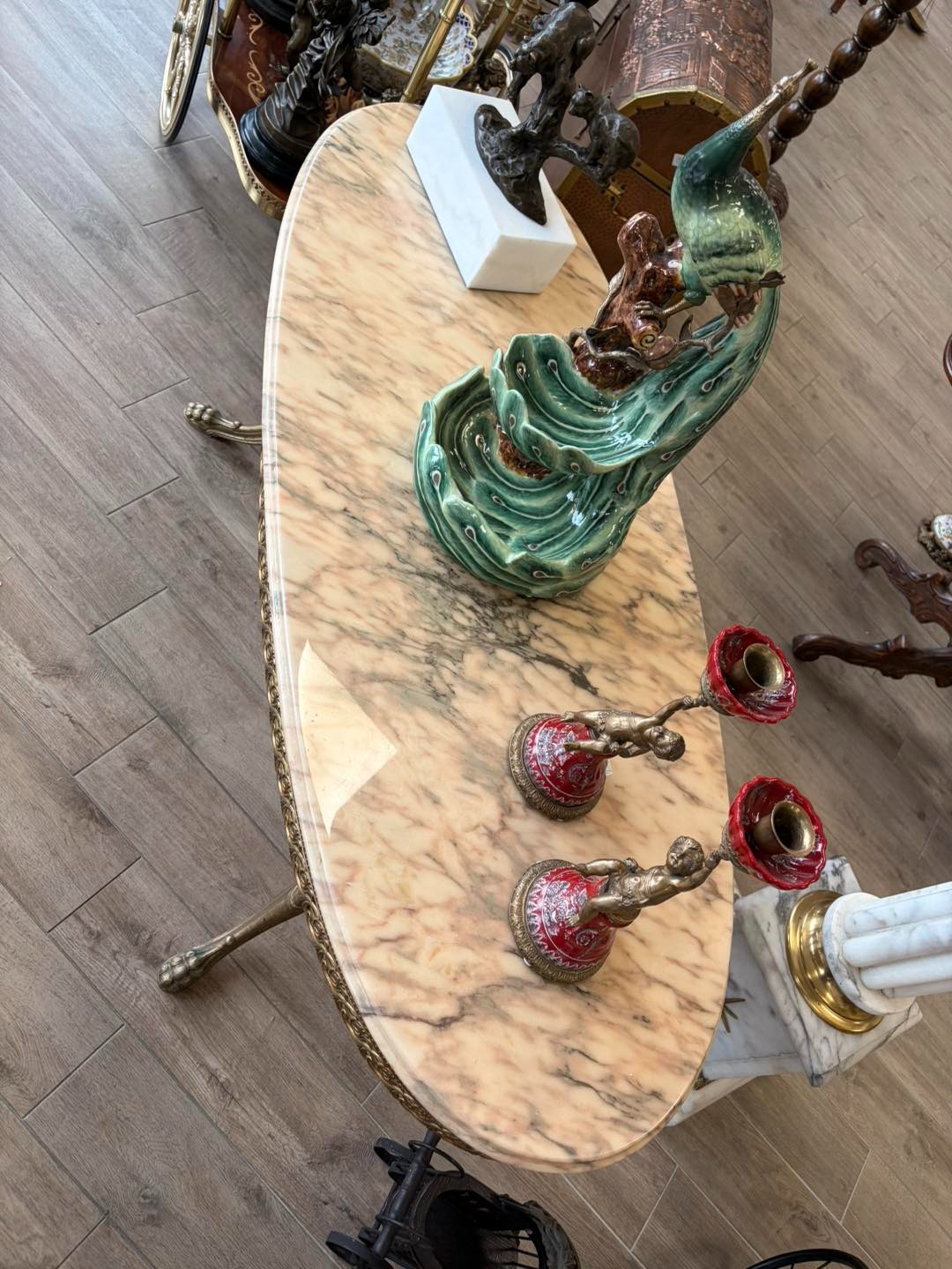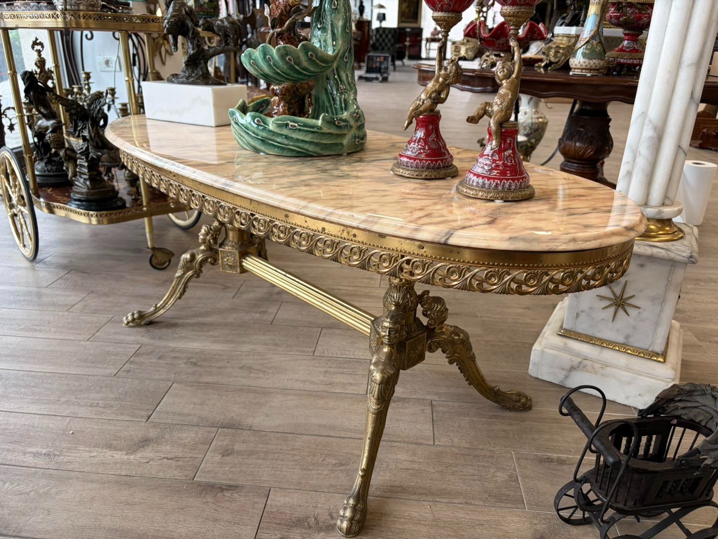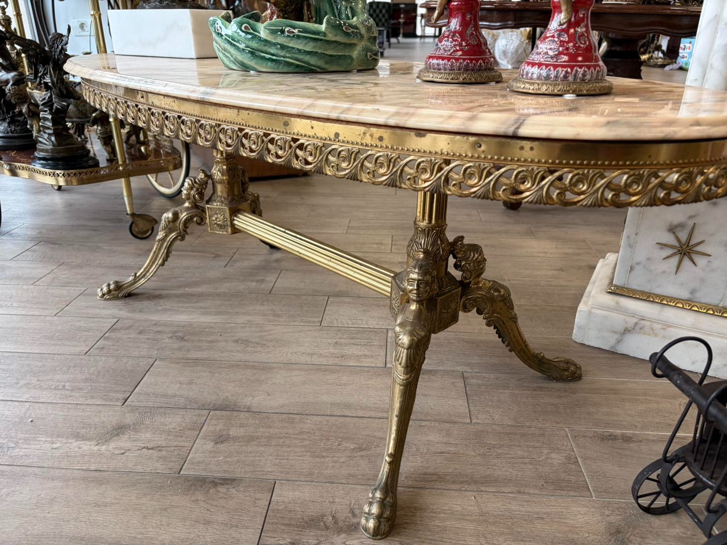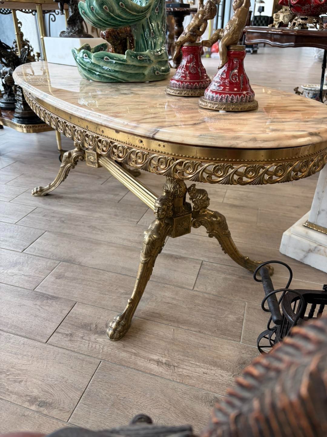 Masa cu picior de bronz stilul empire și blat de marmură.