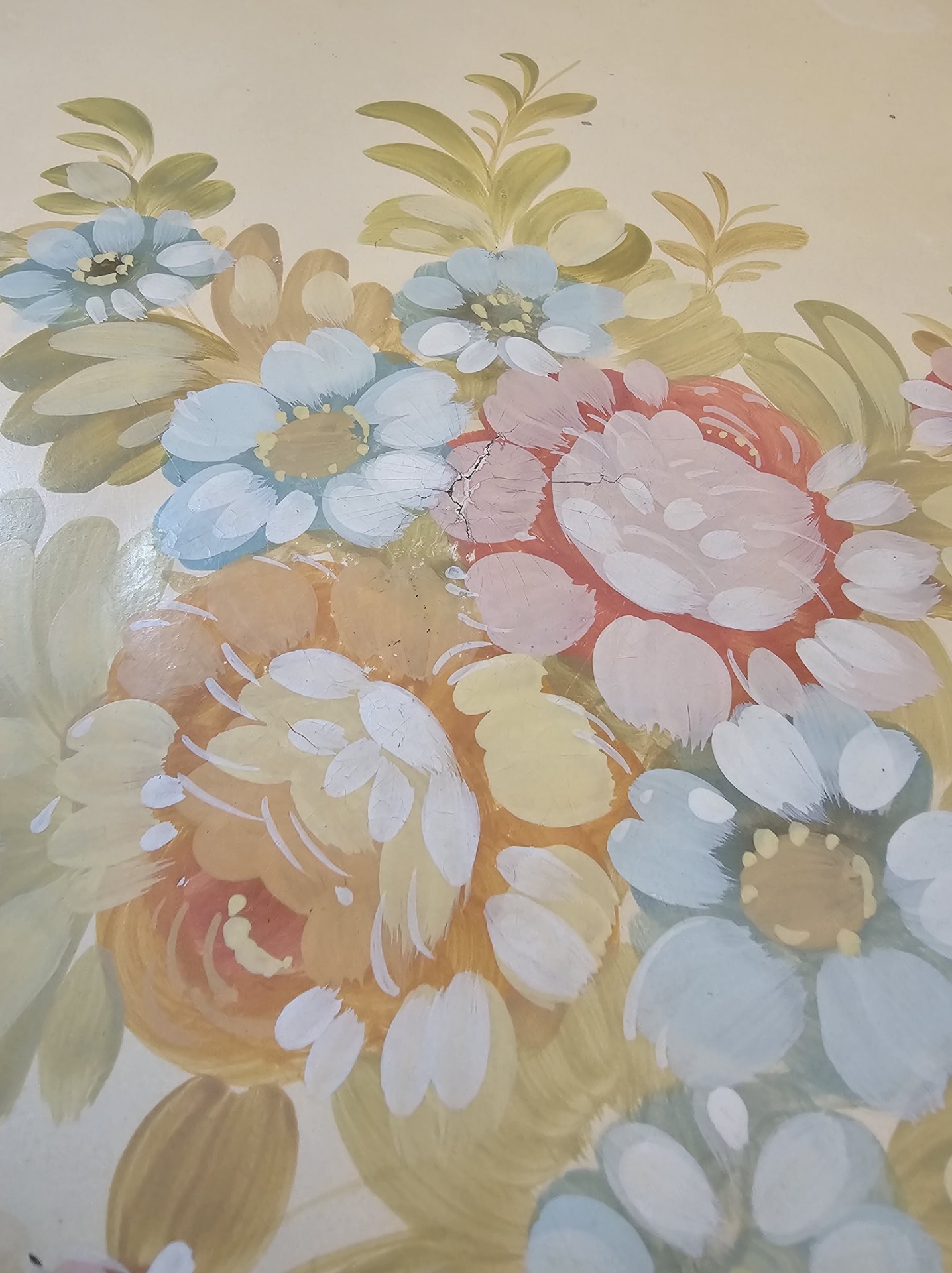 Culoare: crem cu detalii aurii și pictură florală pastelată