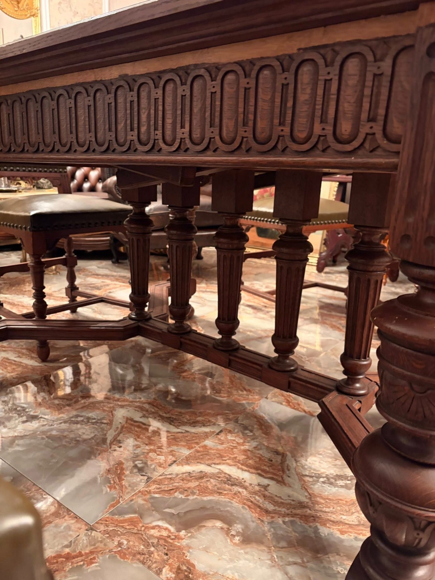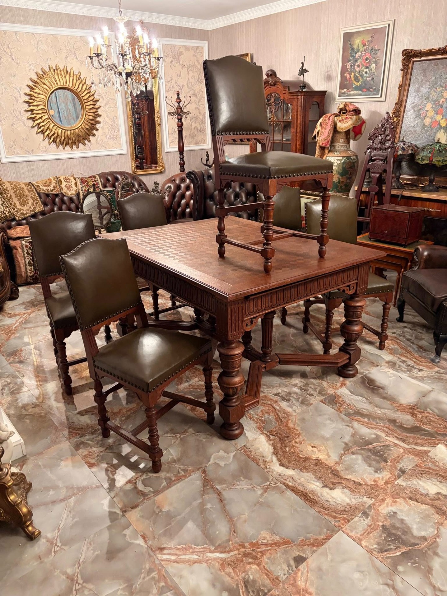 Este un set robust, conceput să dureze, ideal pentru o sală de mese formală sau o cameră cu tematică rustică-nobilă.