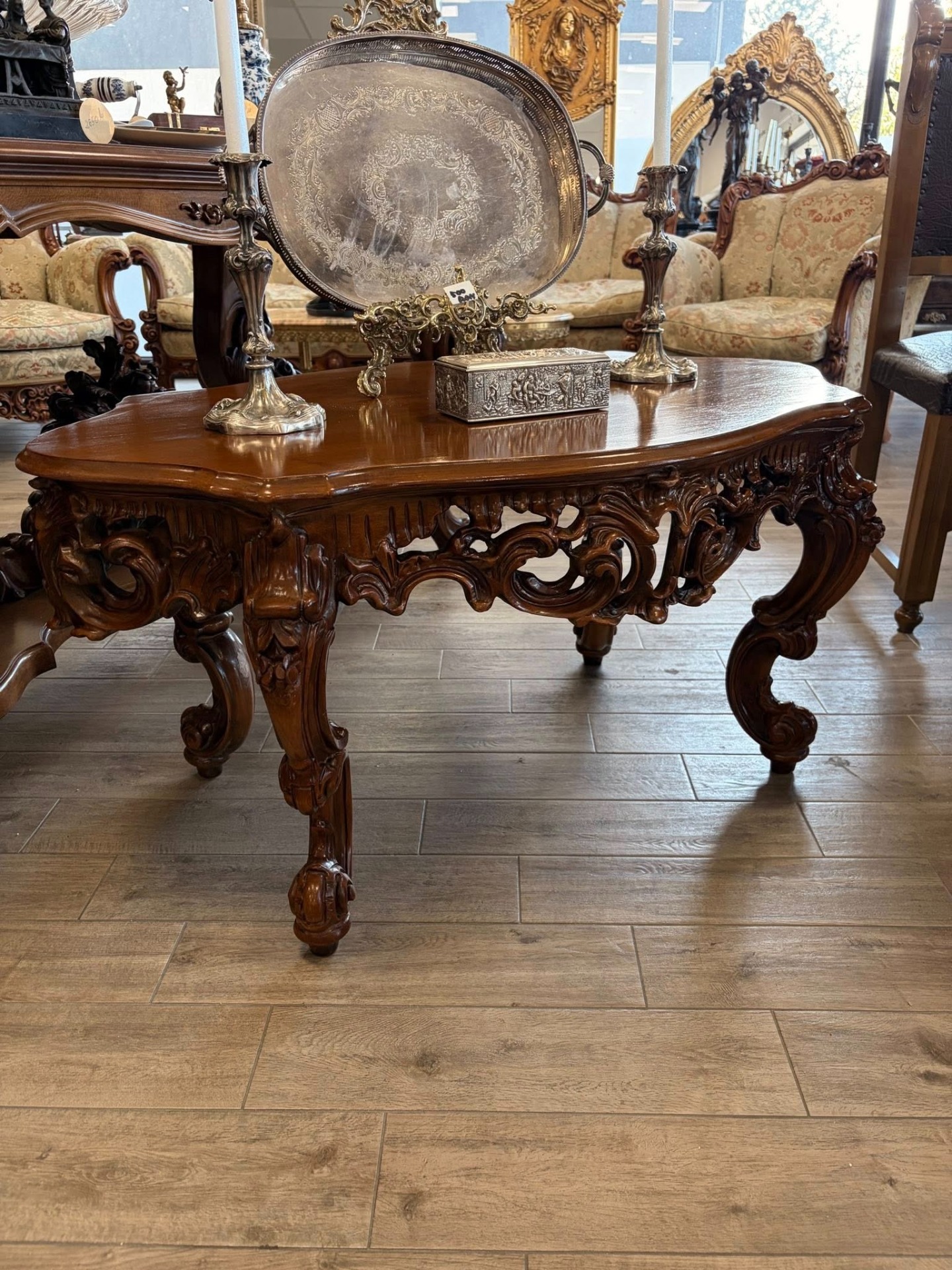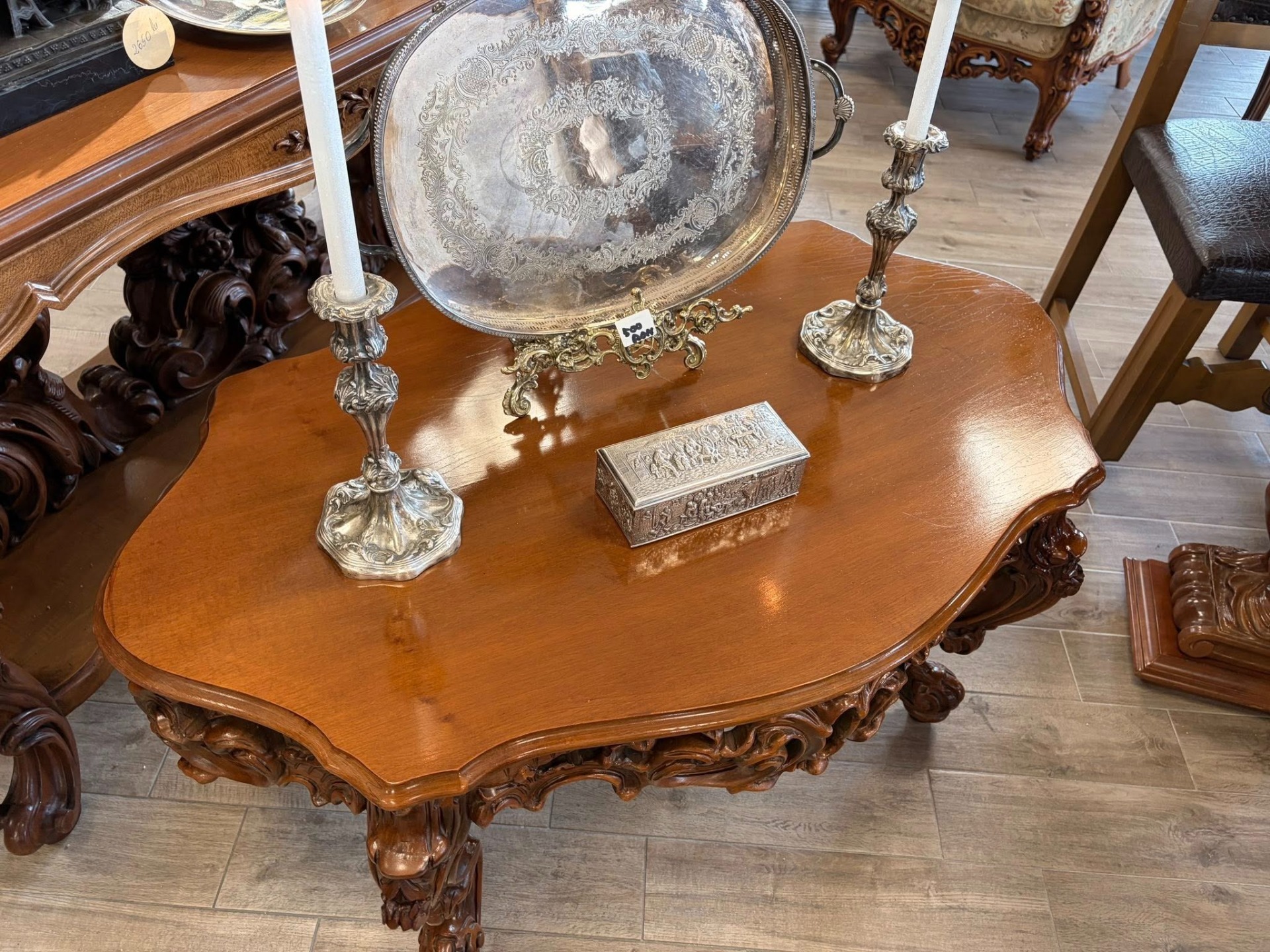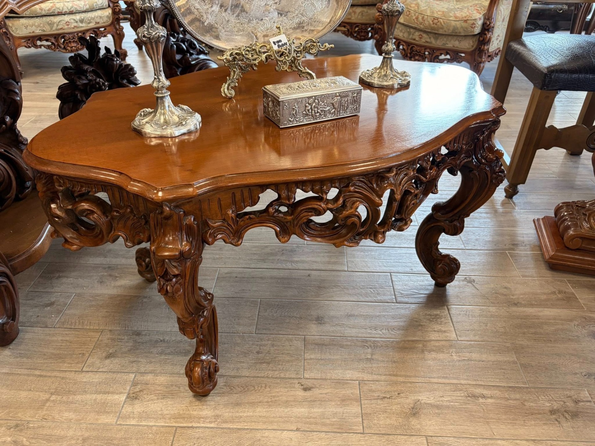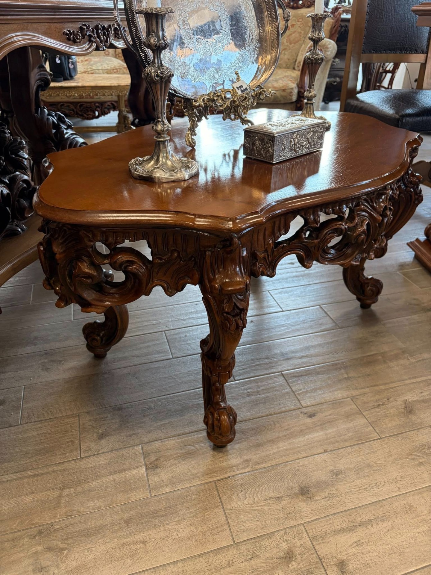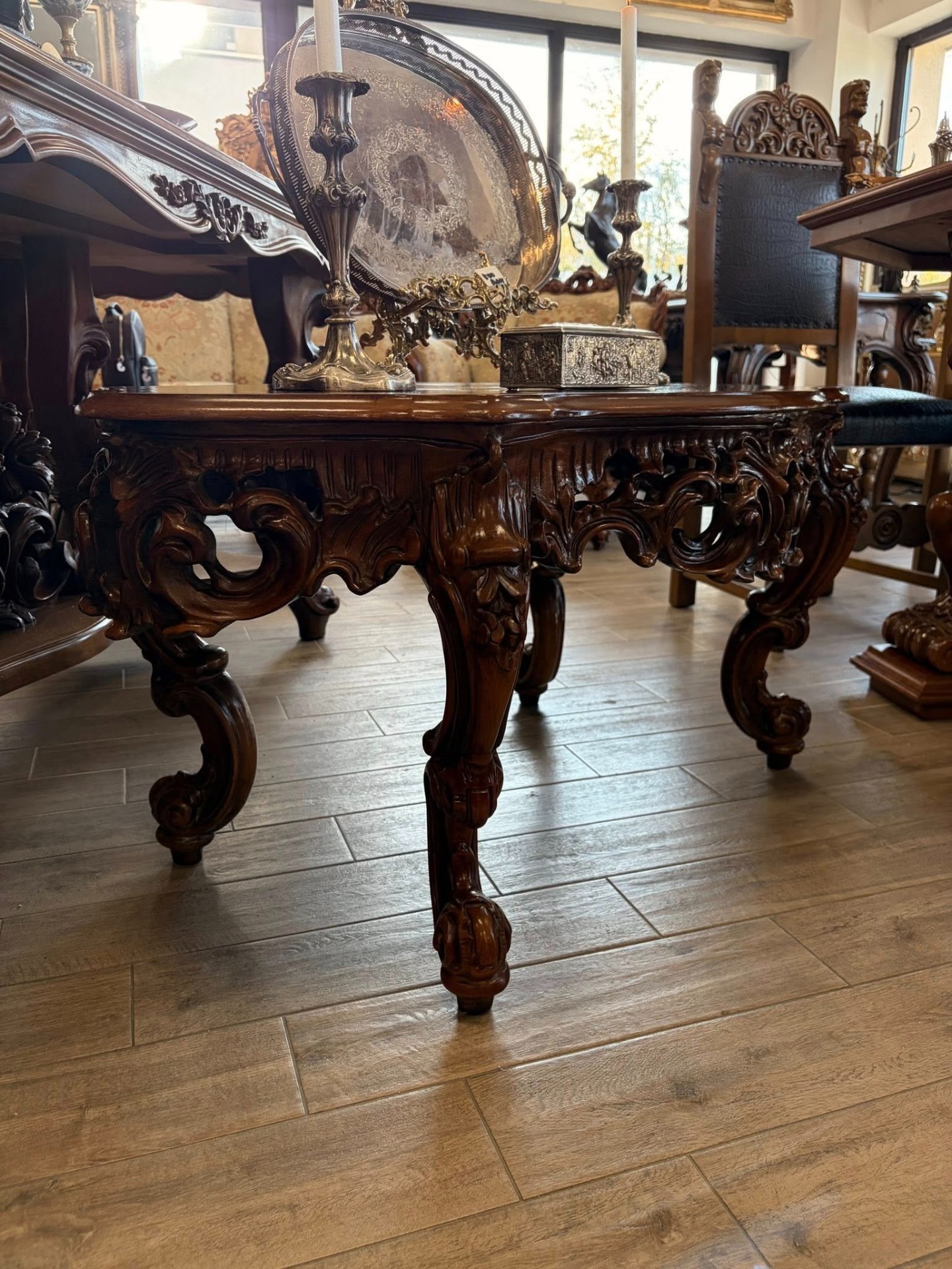 Masuta pentru cafea sculptura deosebita din lemn de nuc.