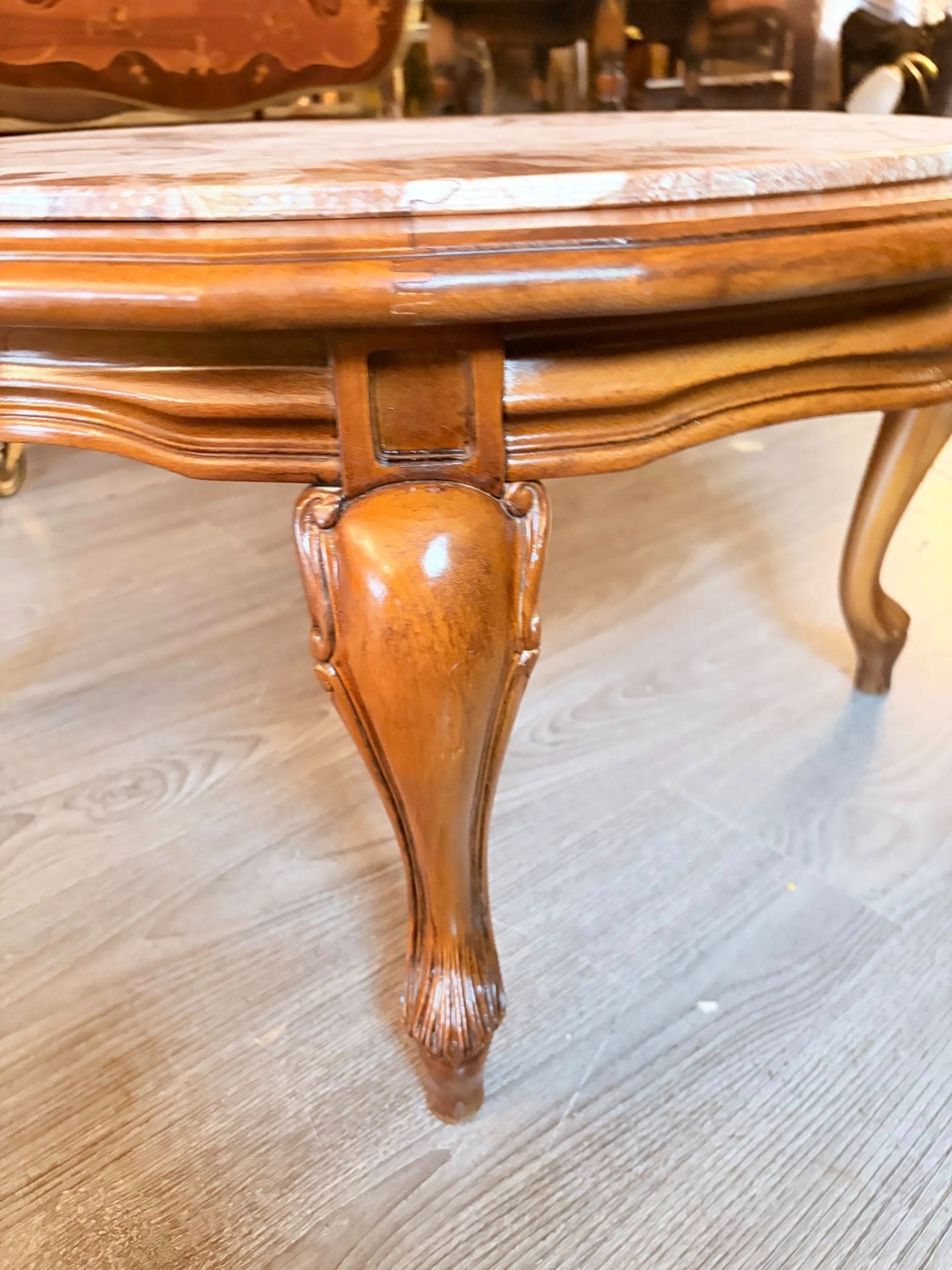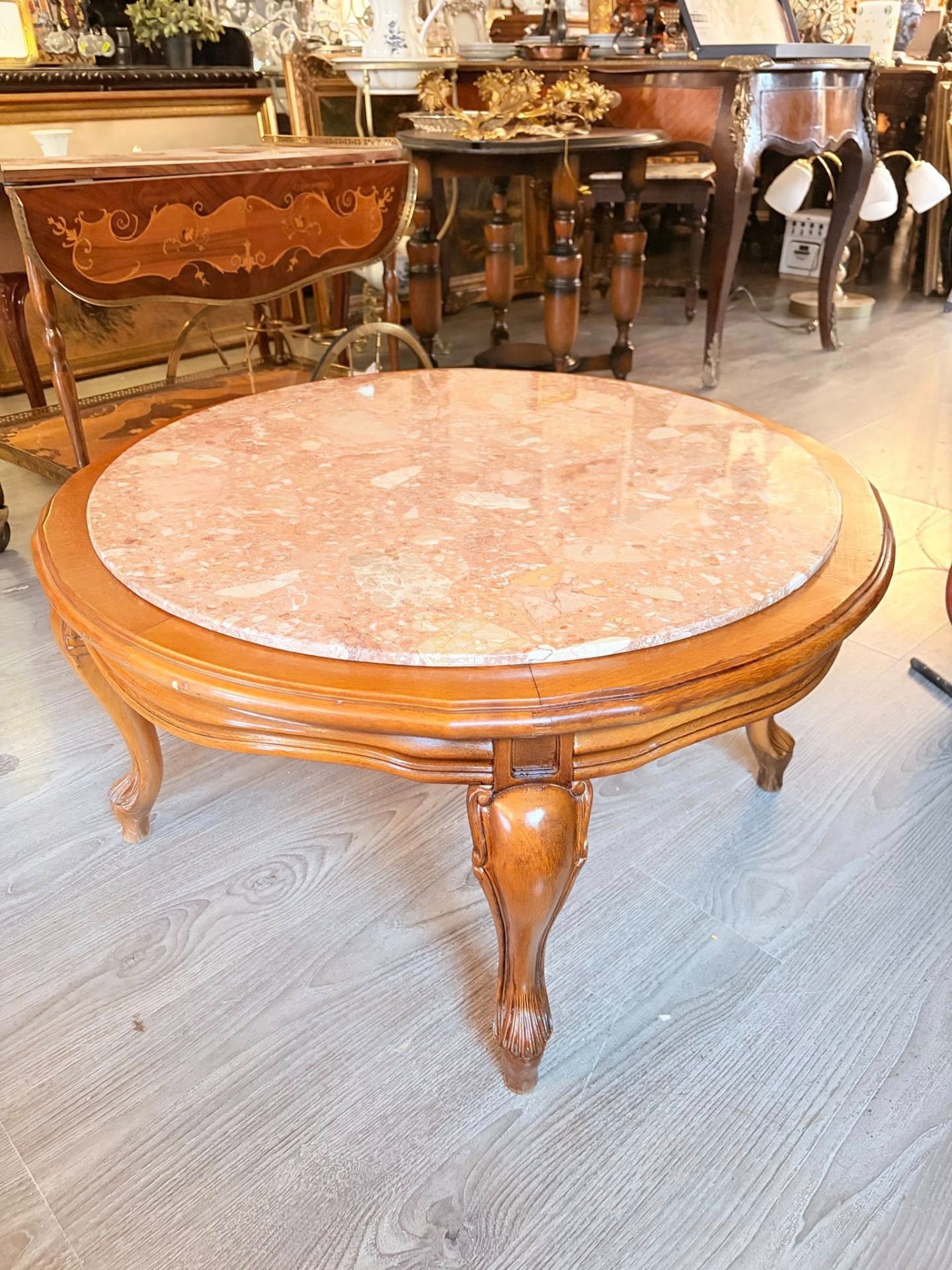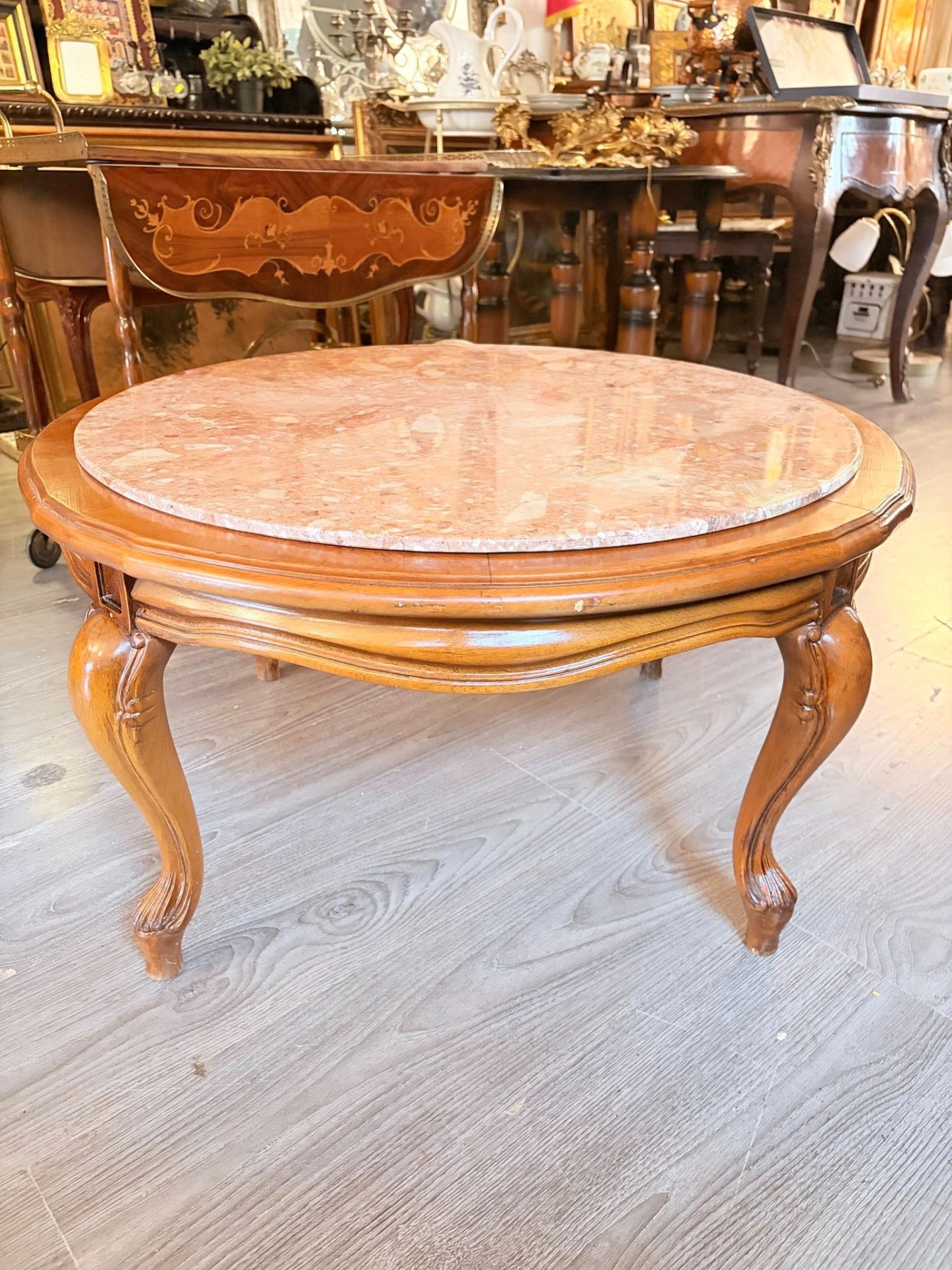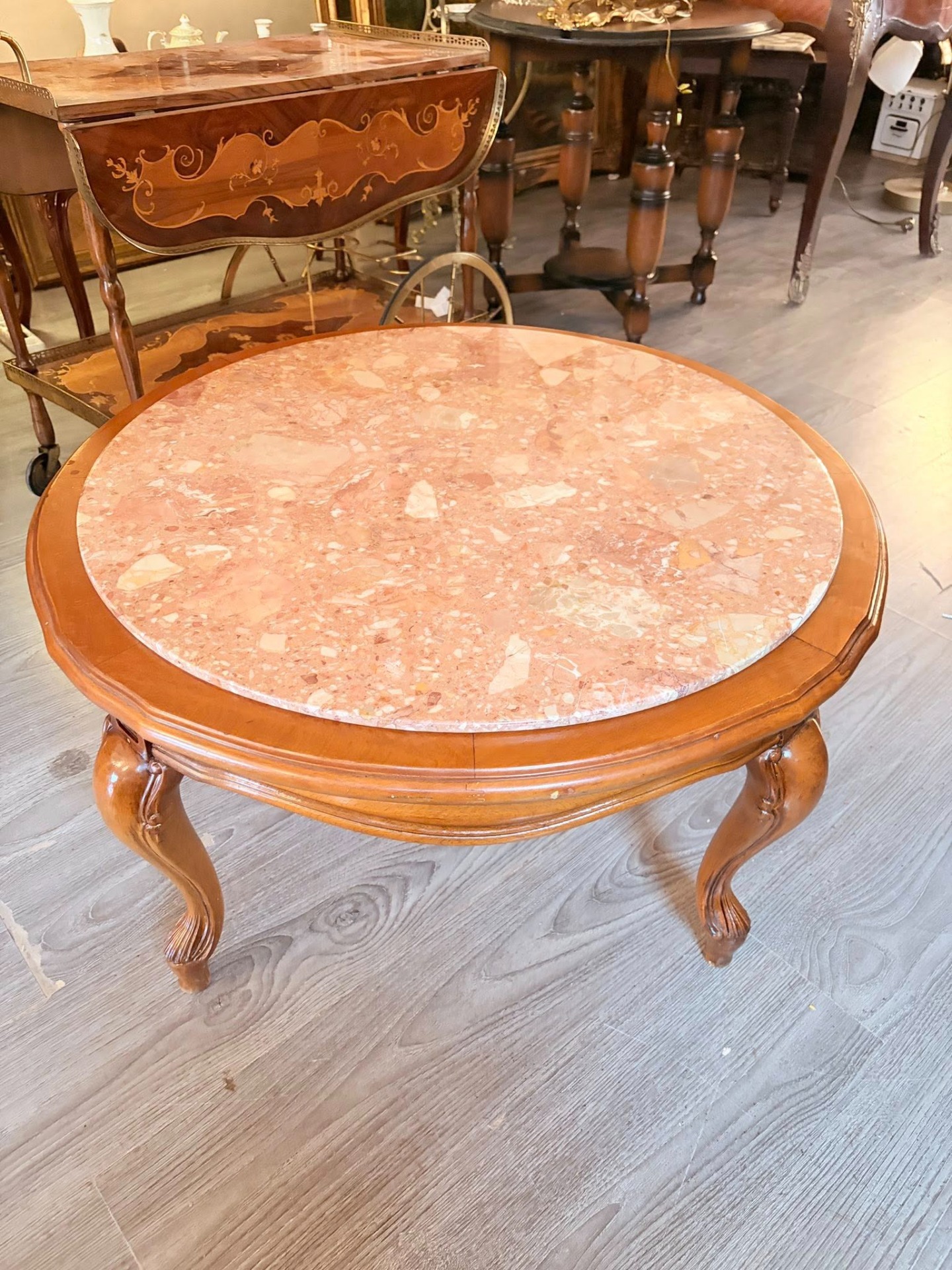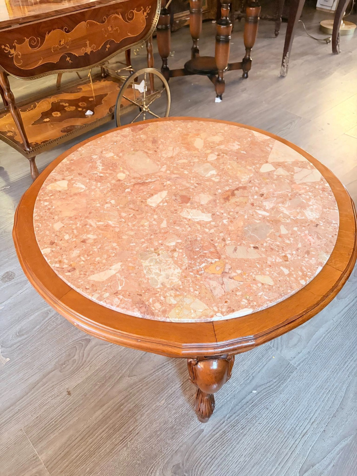 masuta vintage stil ludovic al XV-lea, picioare din lemn blat de marmura.
