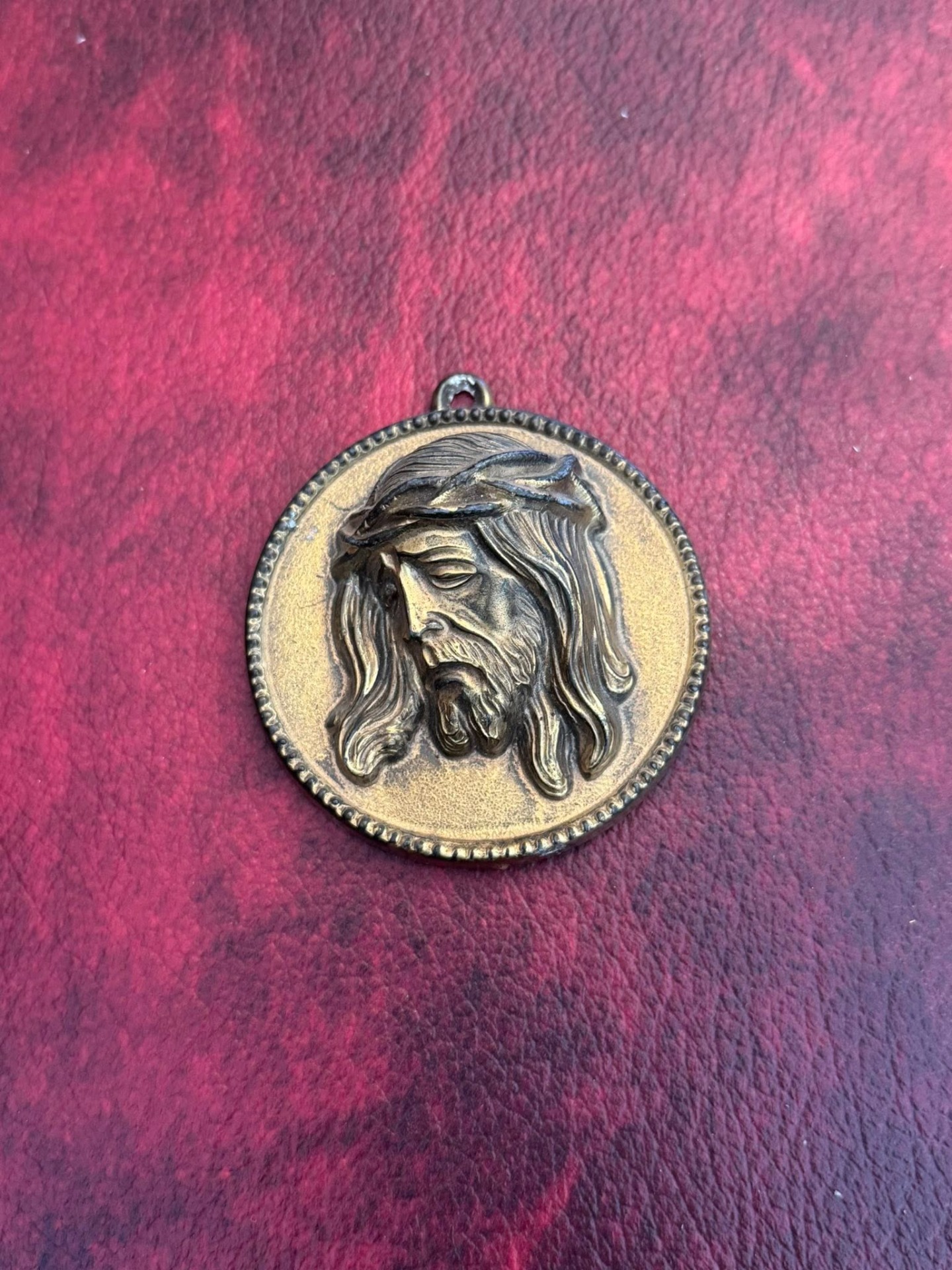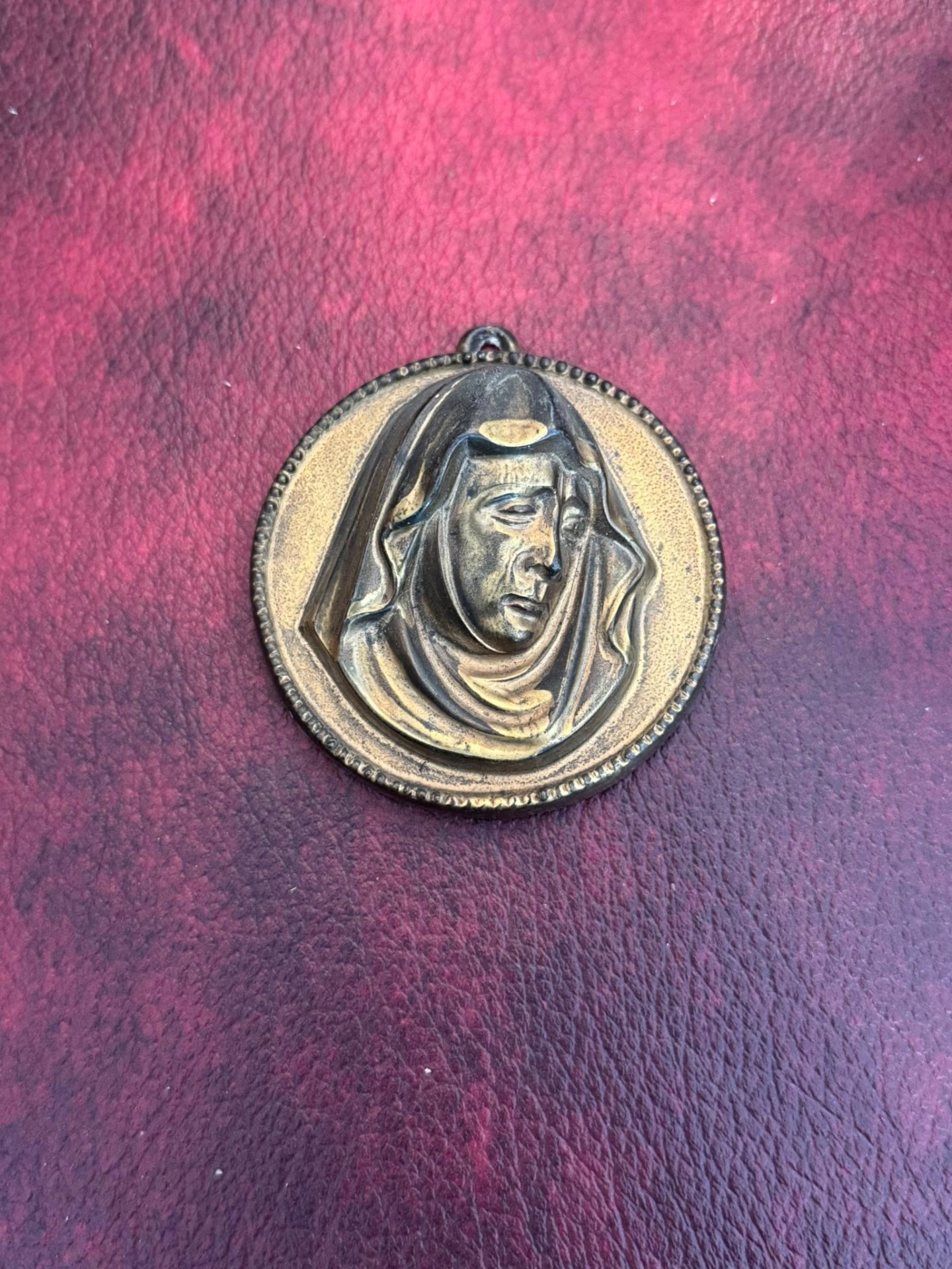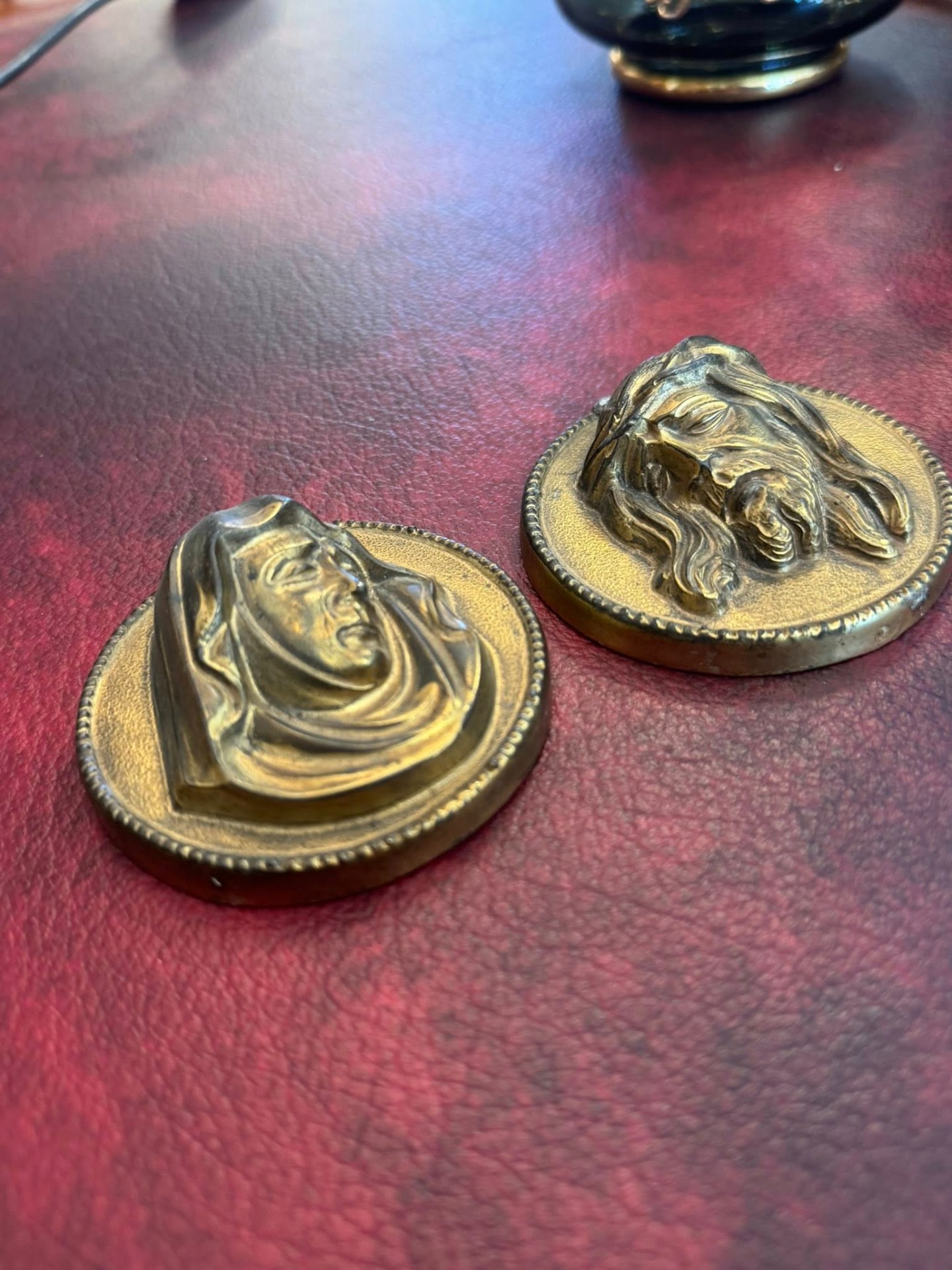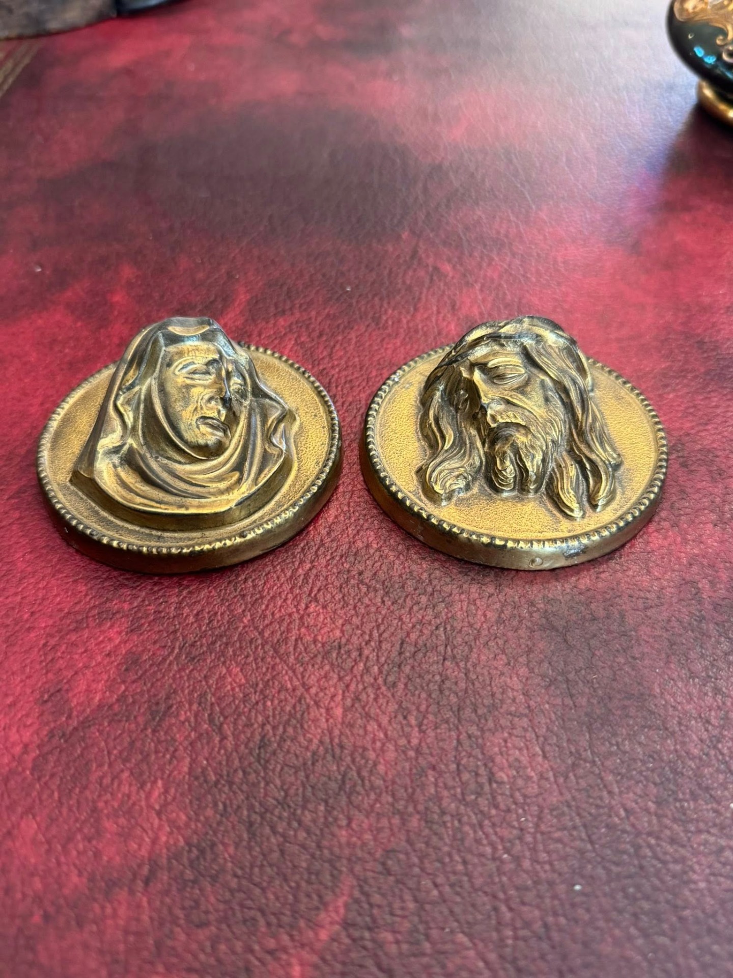 Medalioane religioase realizate din bronz, reprezentând pe Isus și Fecioara Maria.