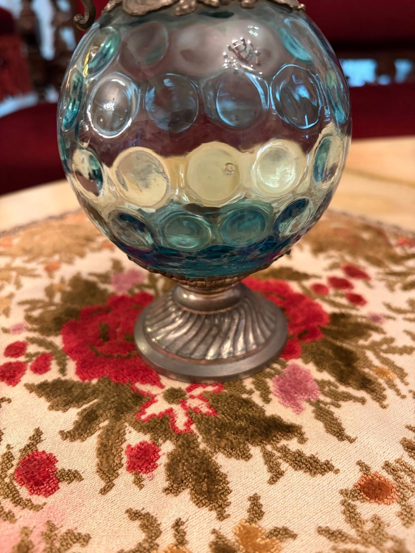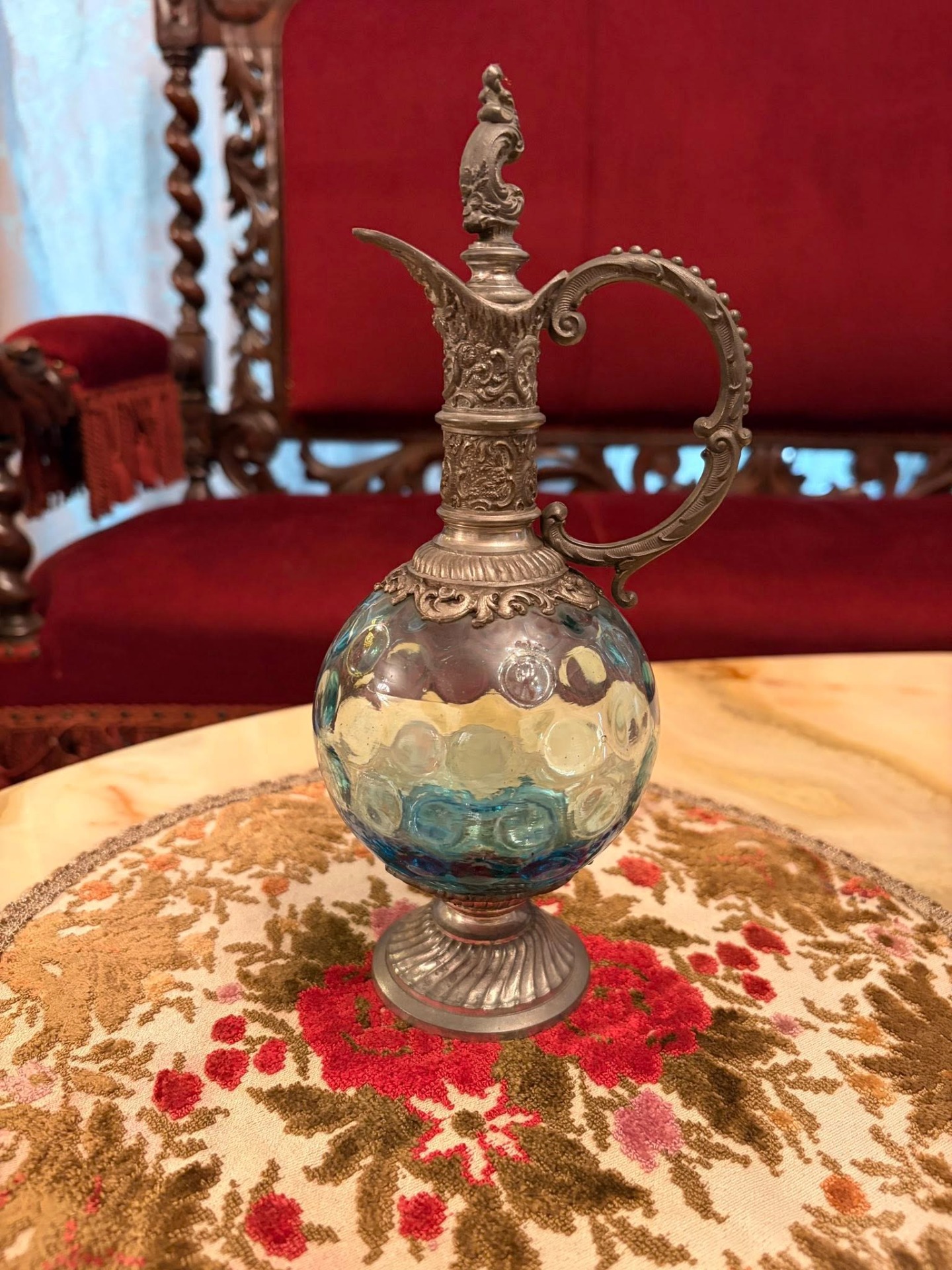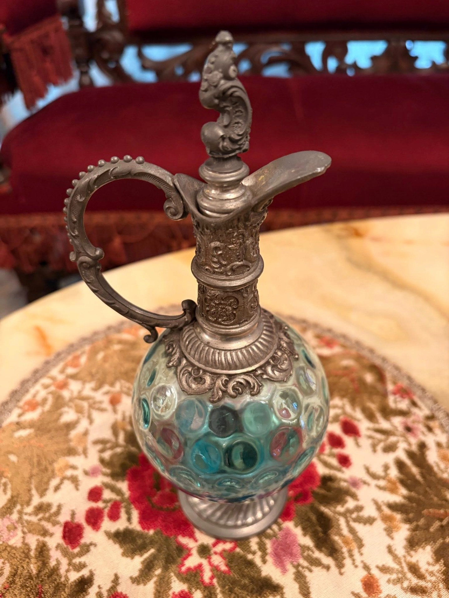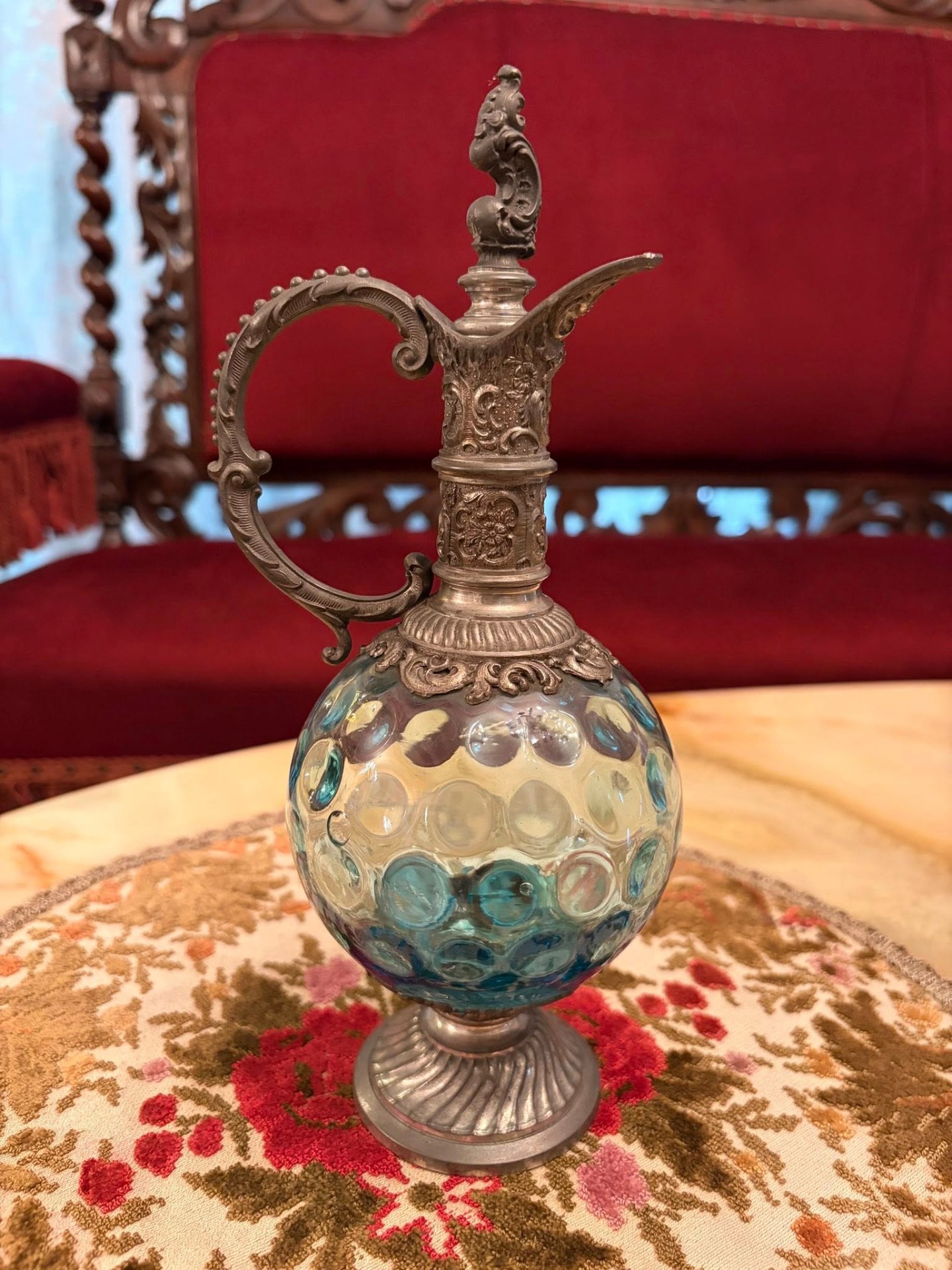 Micuta carafa Epoca Victoriana sticla in montura de zinc.