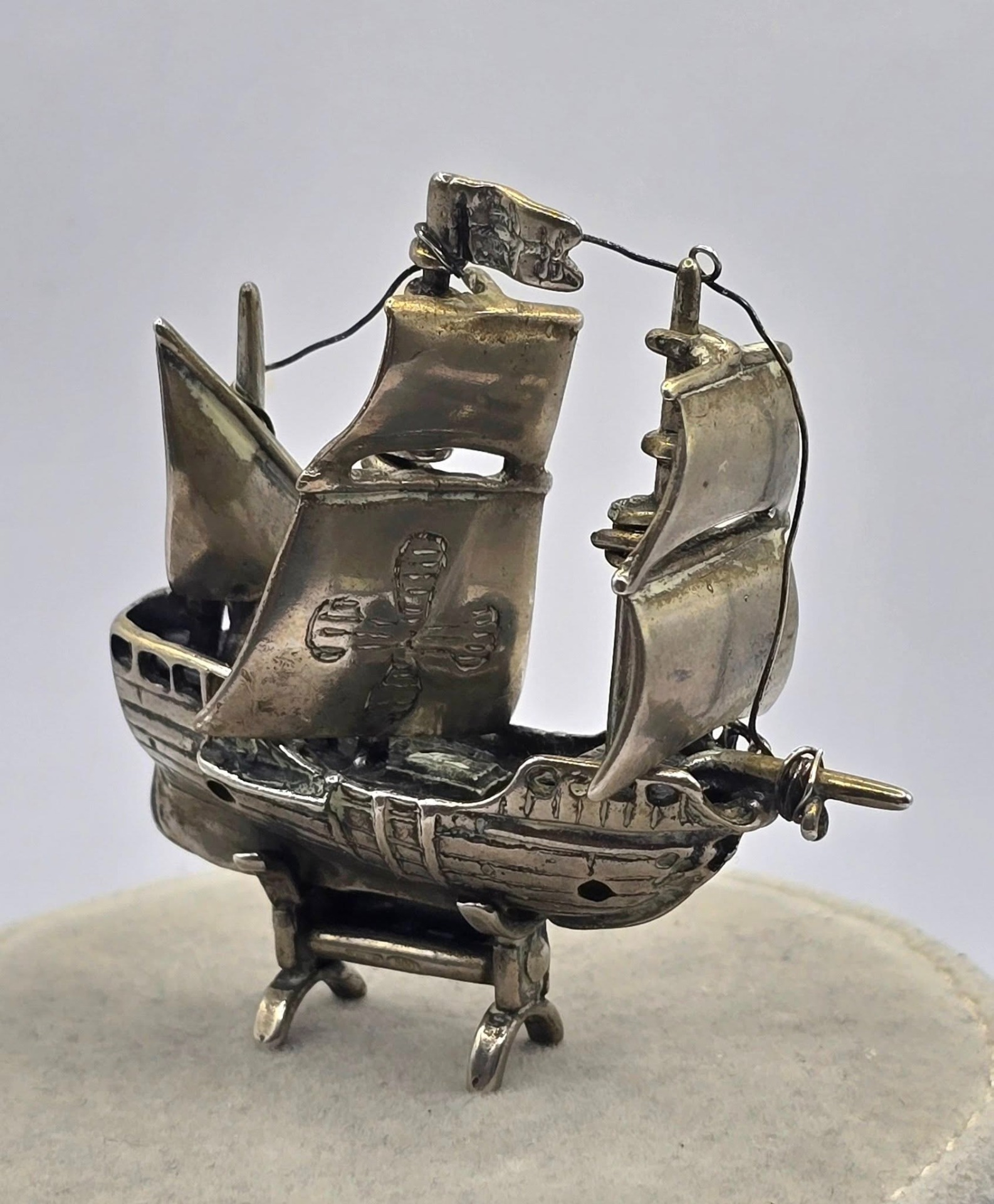 Miniatură de colecție din argint, corabia "Pinta", fiind una dintre cele trei corăbii ale lui Cristofor Columb (alături de Santa Maria și Niña), manufactură cu