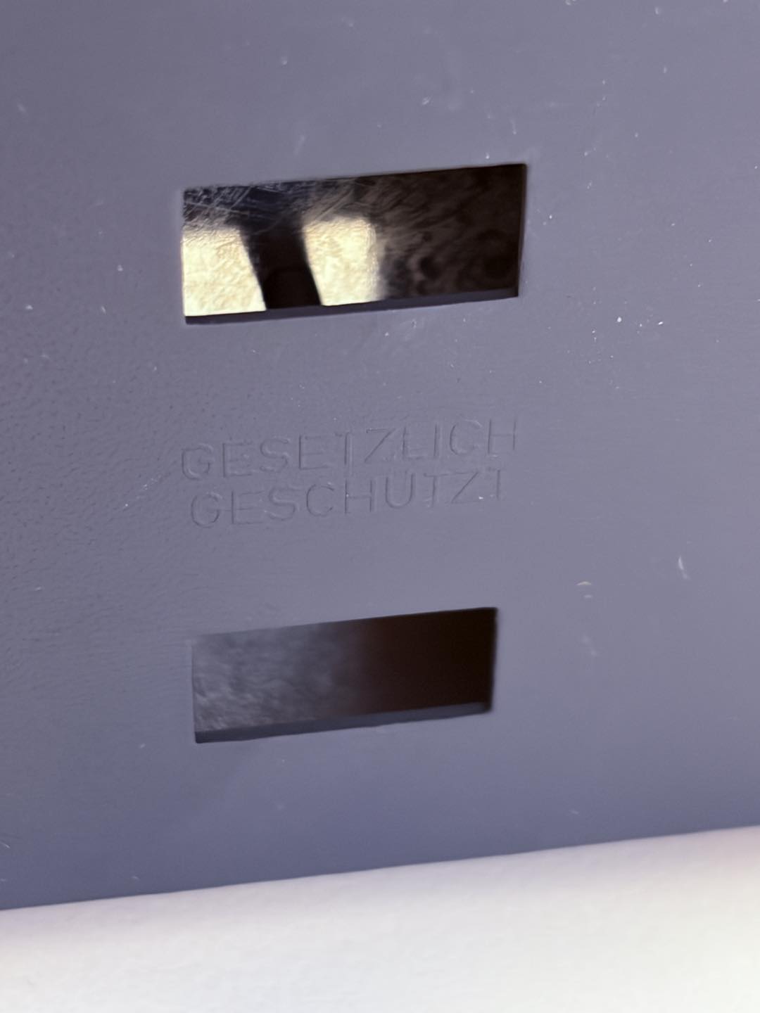 Marcată pe bază cu textul „GESETZLICH GESCHÜTZT” (Design protejat prin lege), atestând originea și calitatea germană.