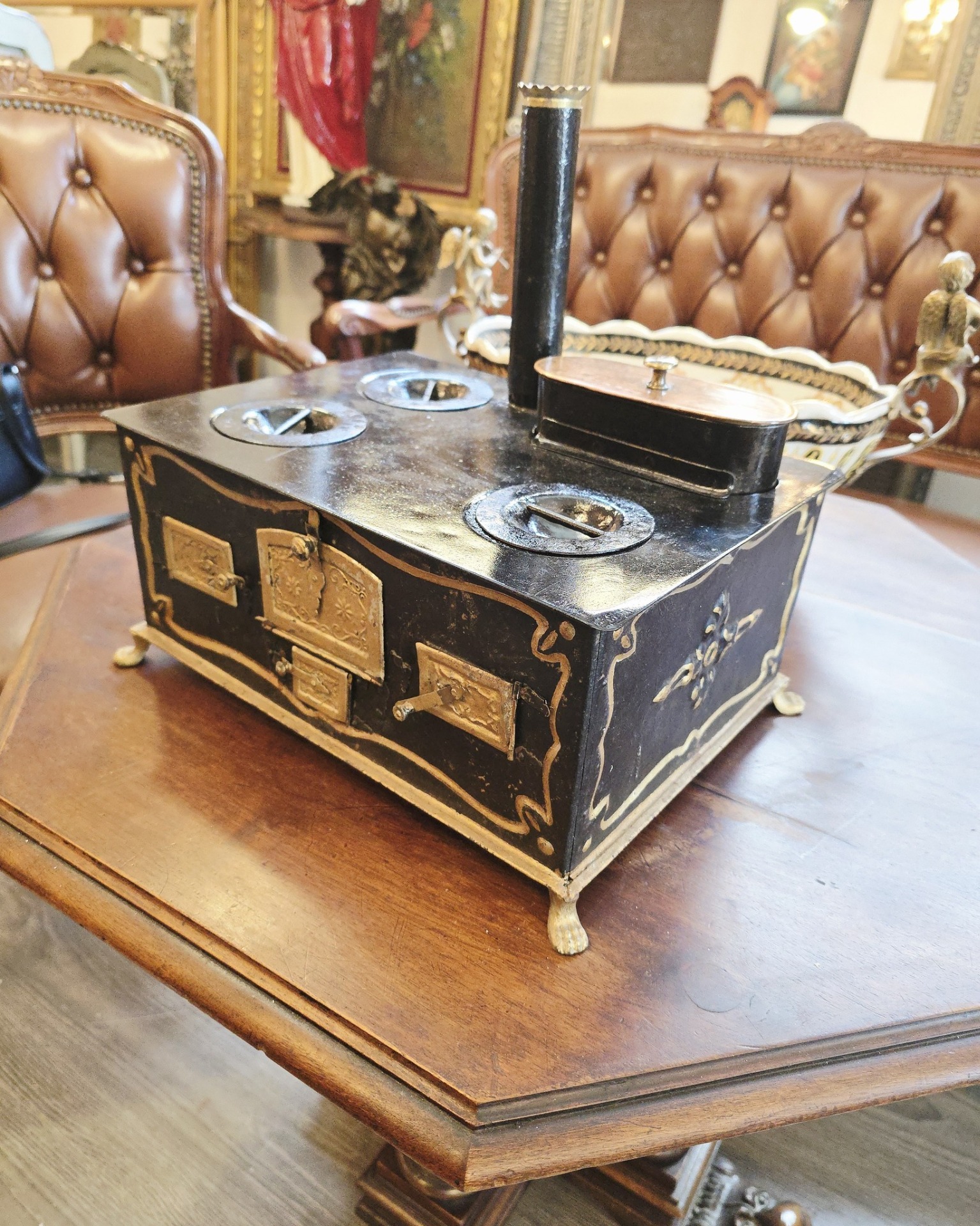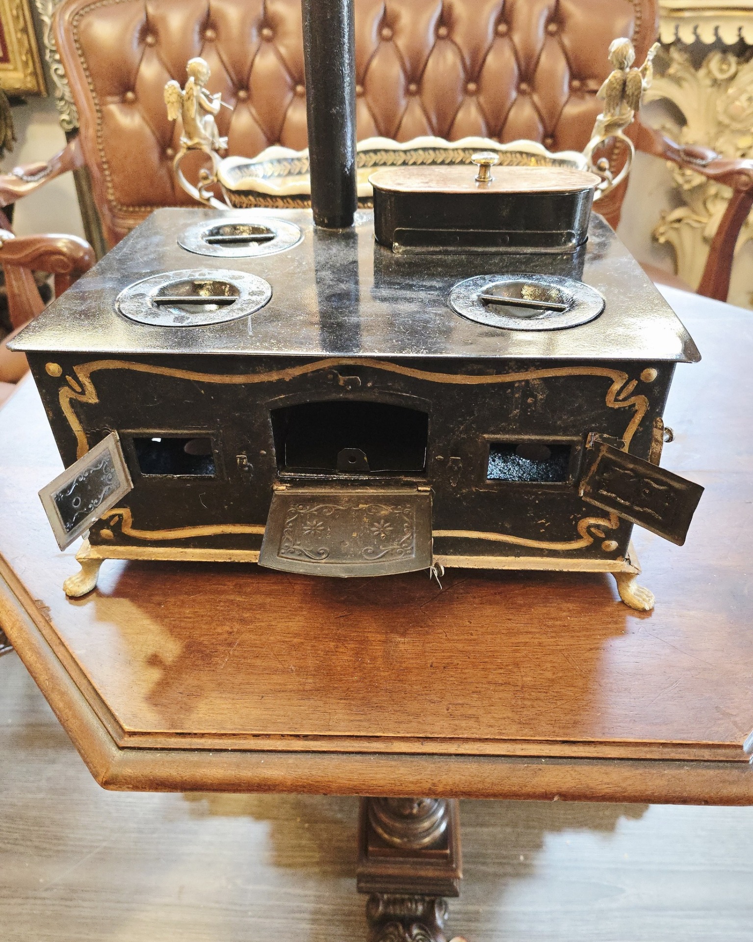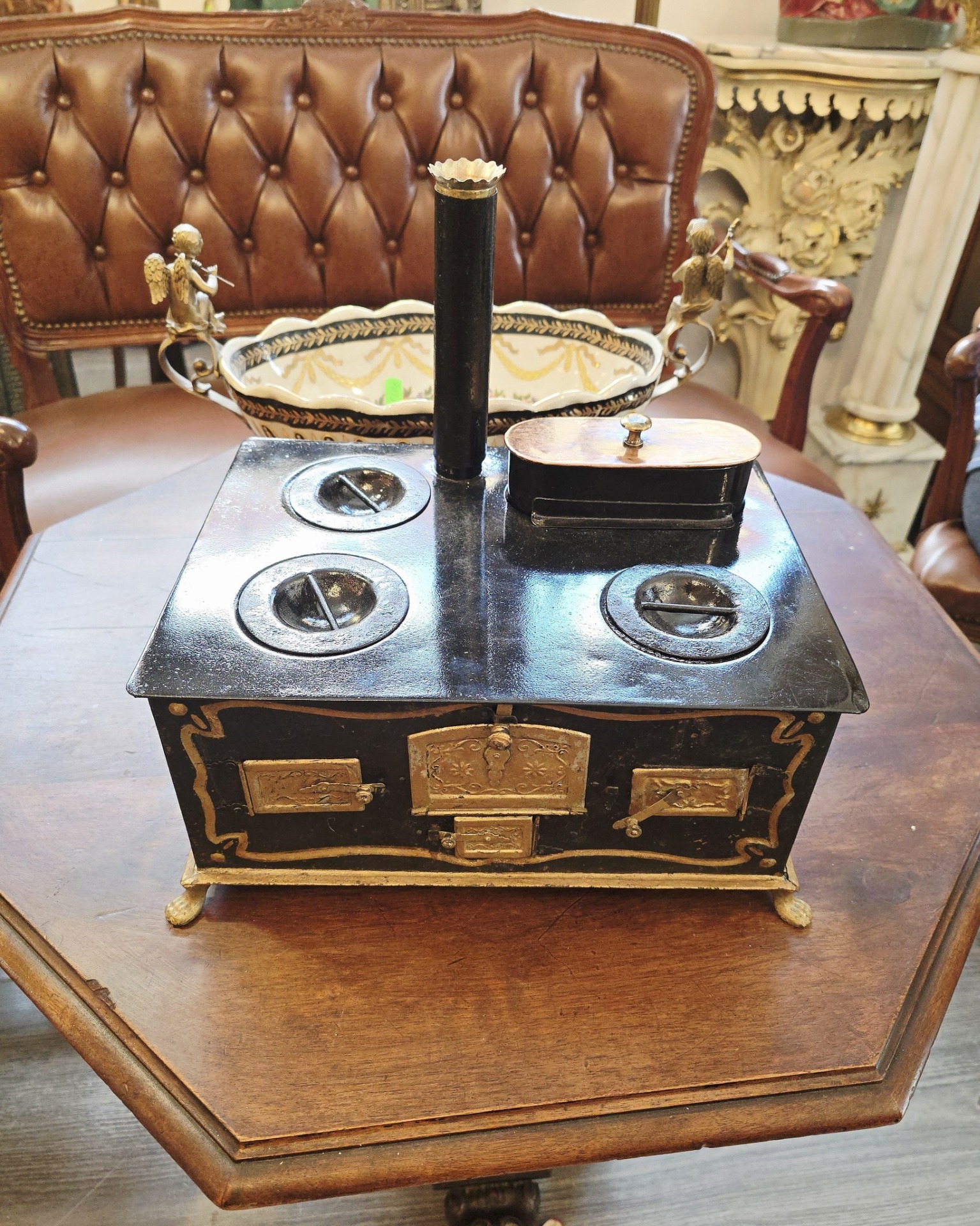 Miniatură de sobă de gătit victoriană, cel mai probabil realizată la sfârșitul secolului al XIX-lea sau începutul secolului al XX-lea (aprox. 1880–1910).