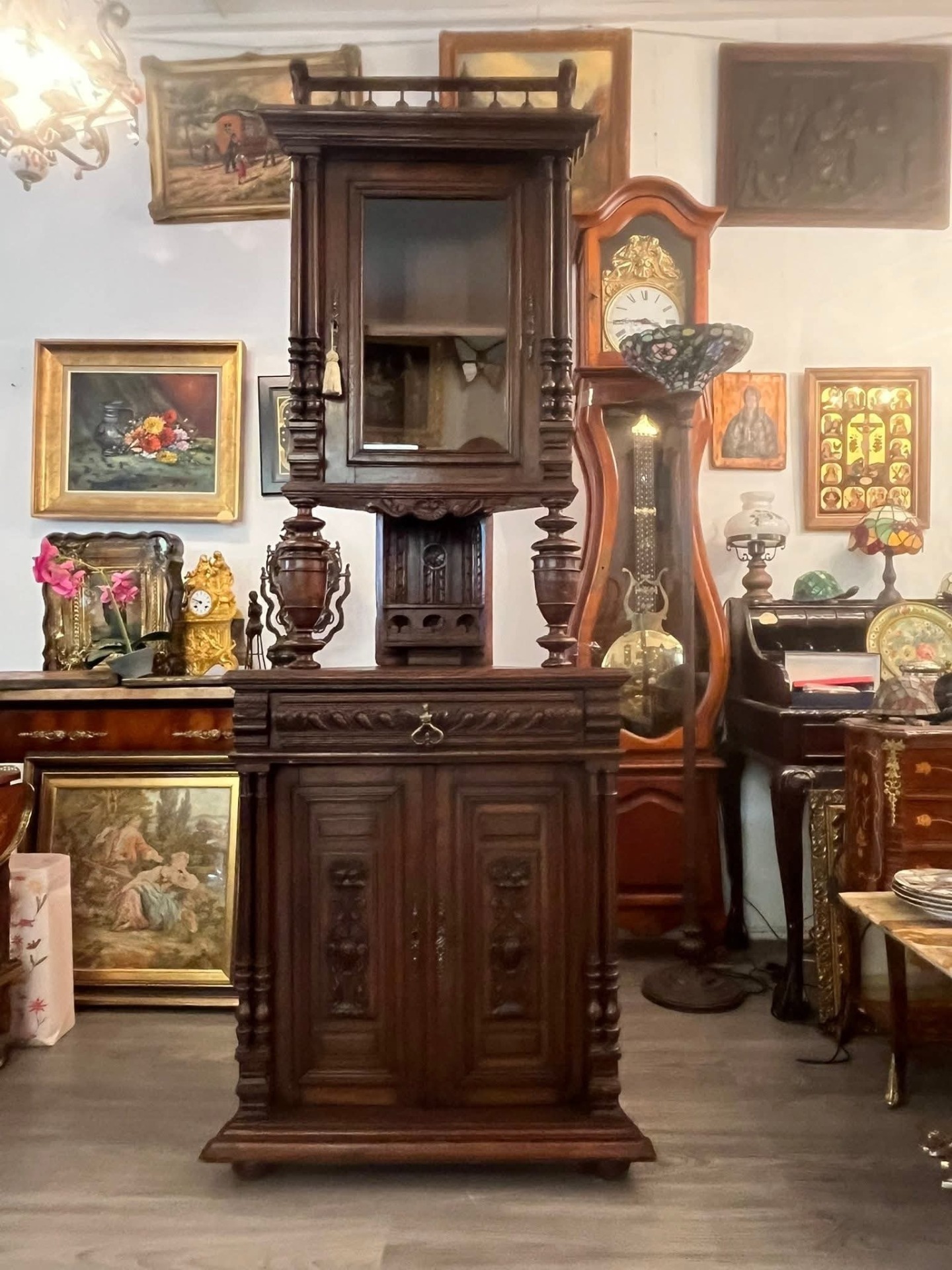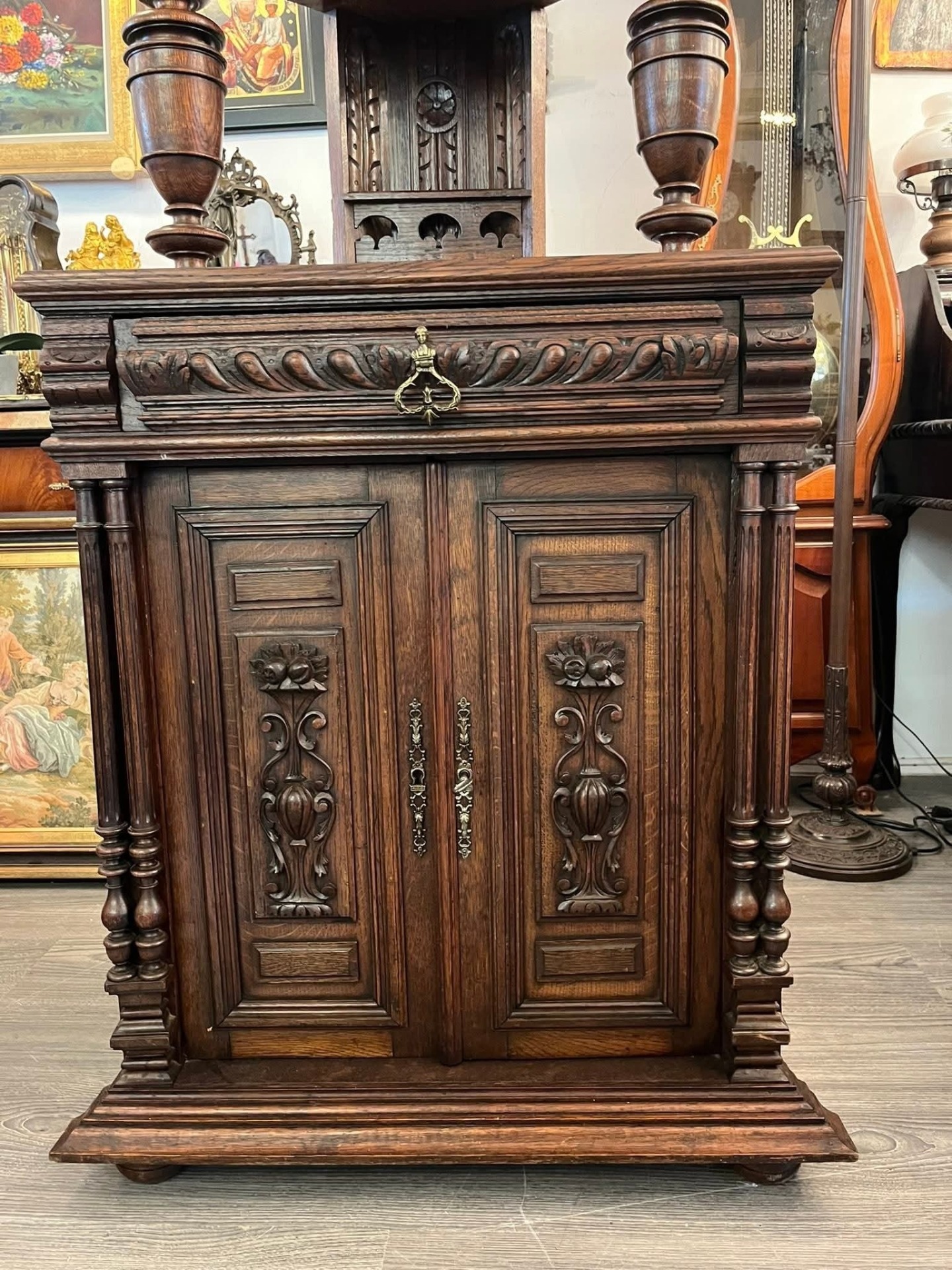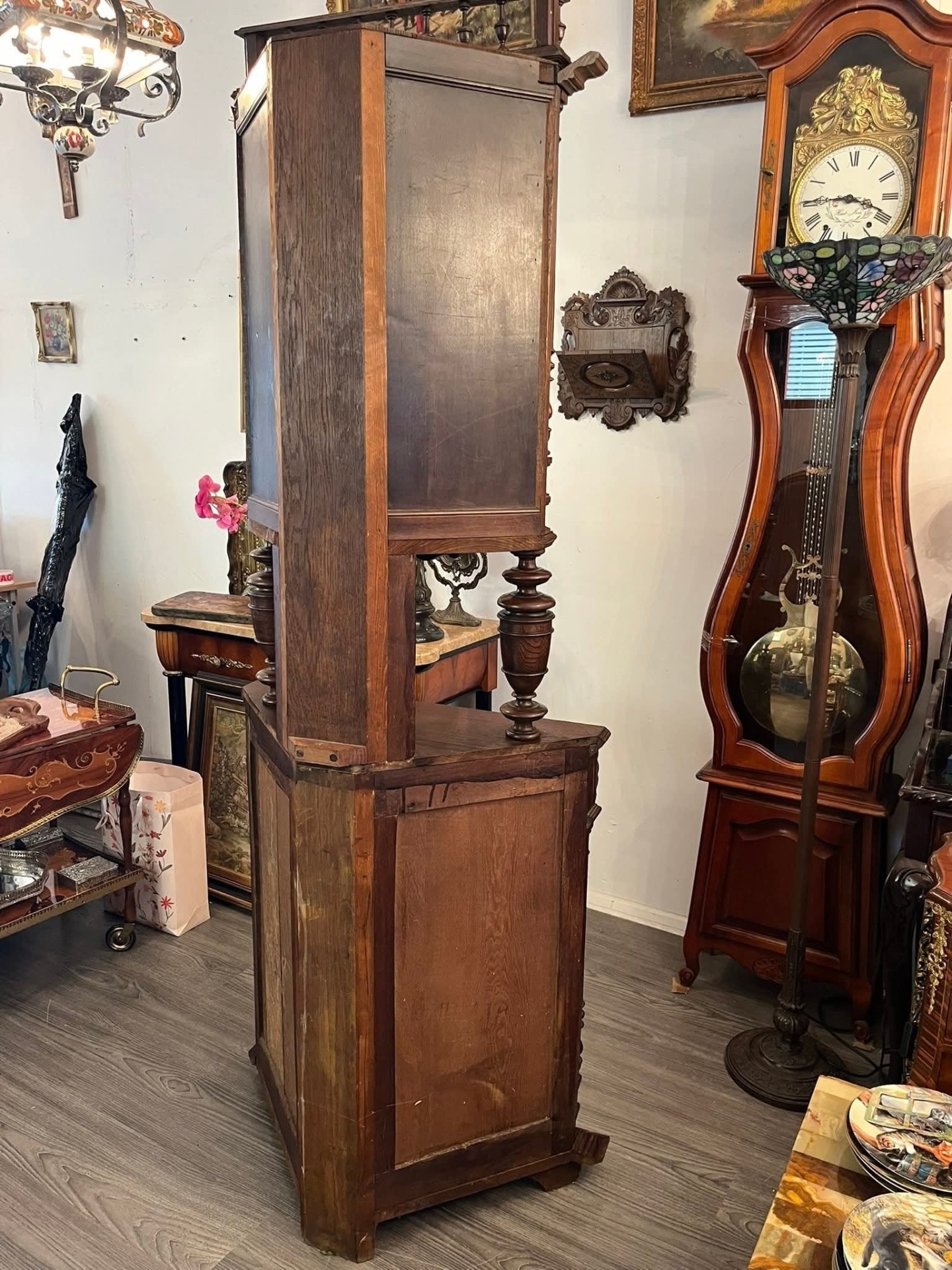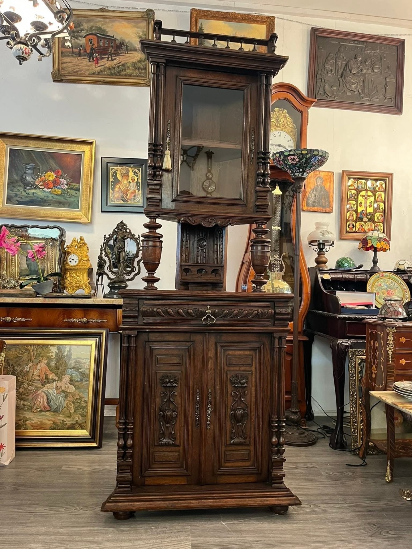 Mobilier antic – bufet/etajeră sculptată manual, lemn masiv, stil renascentist