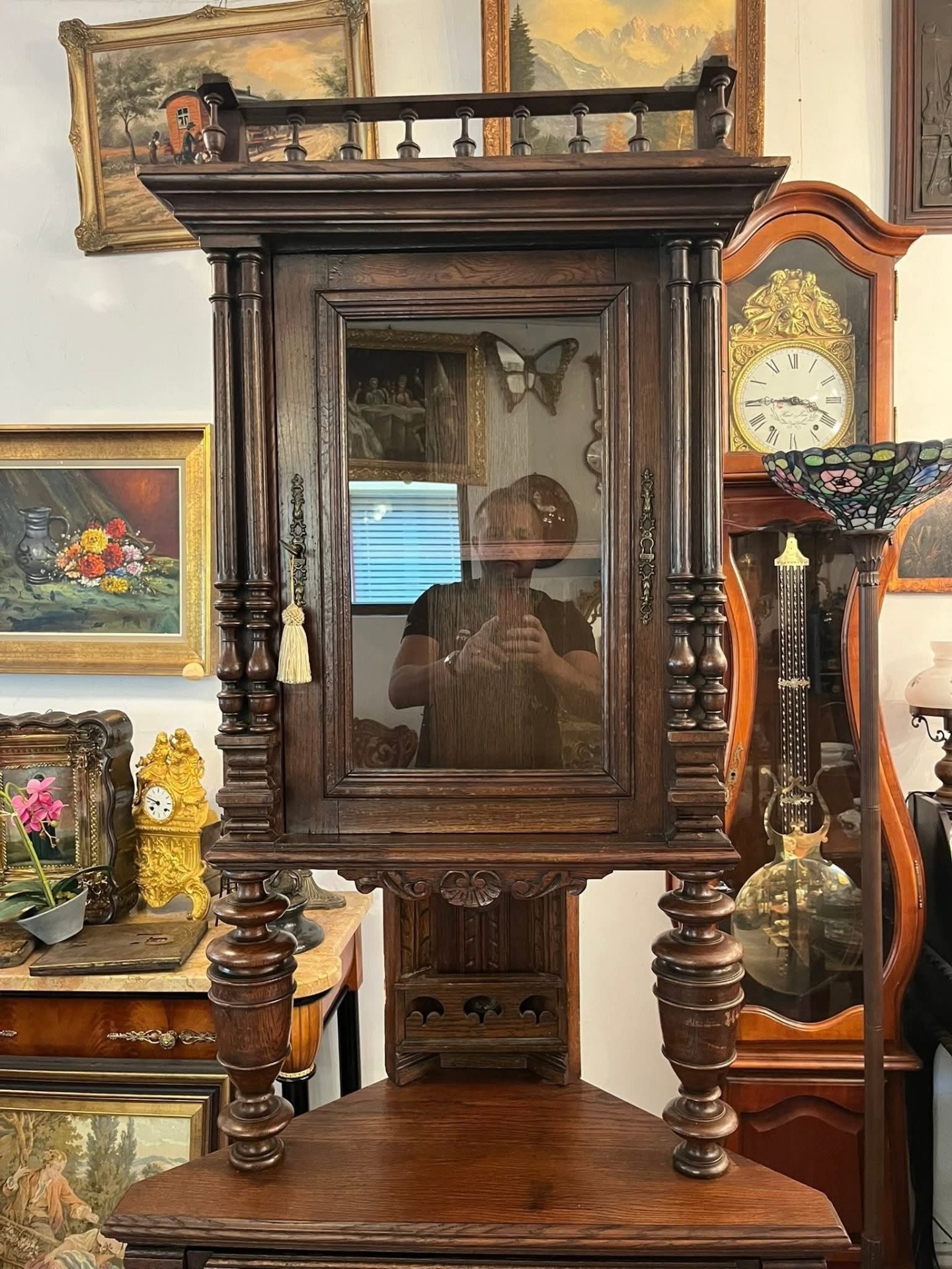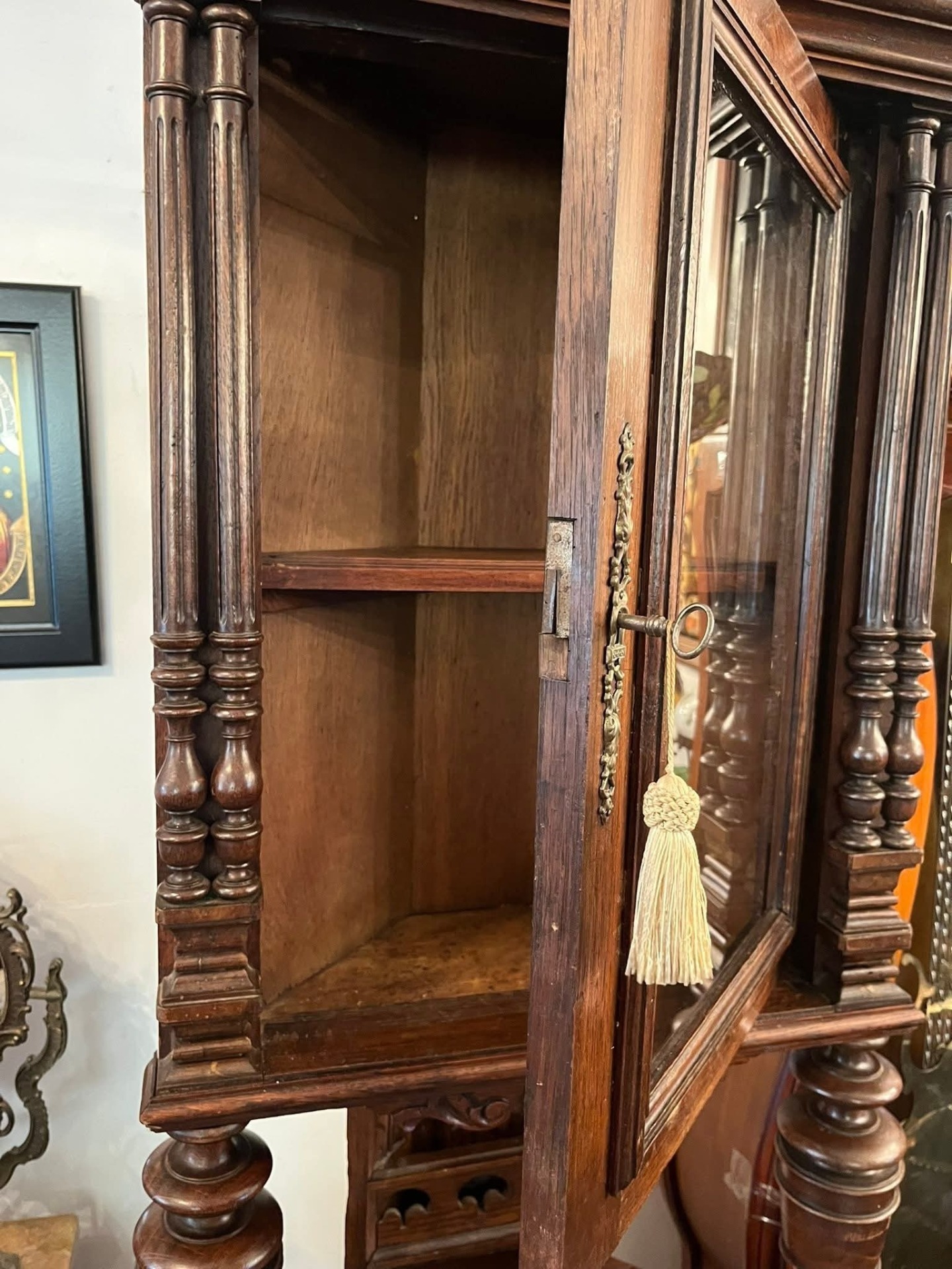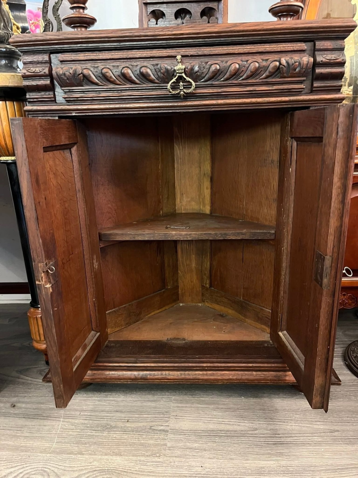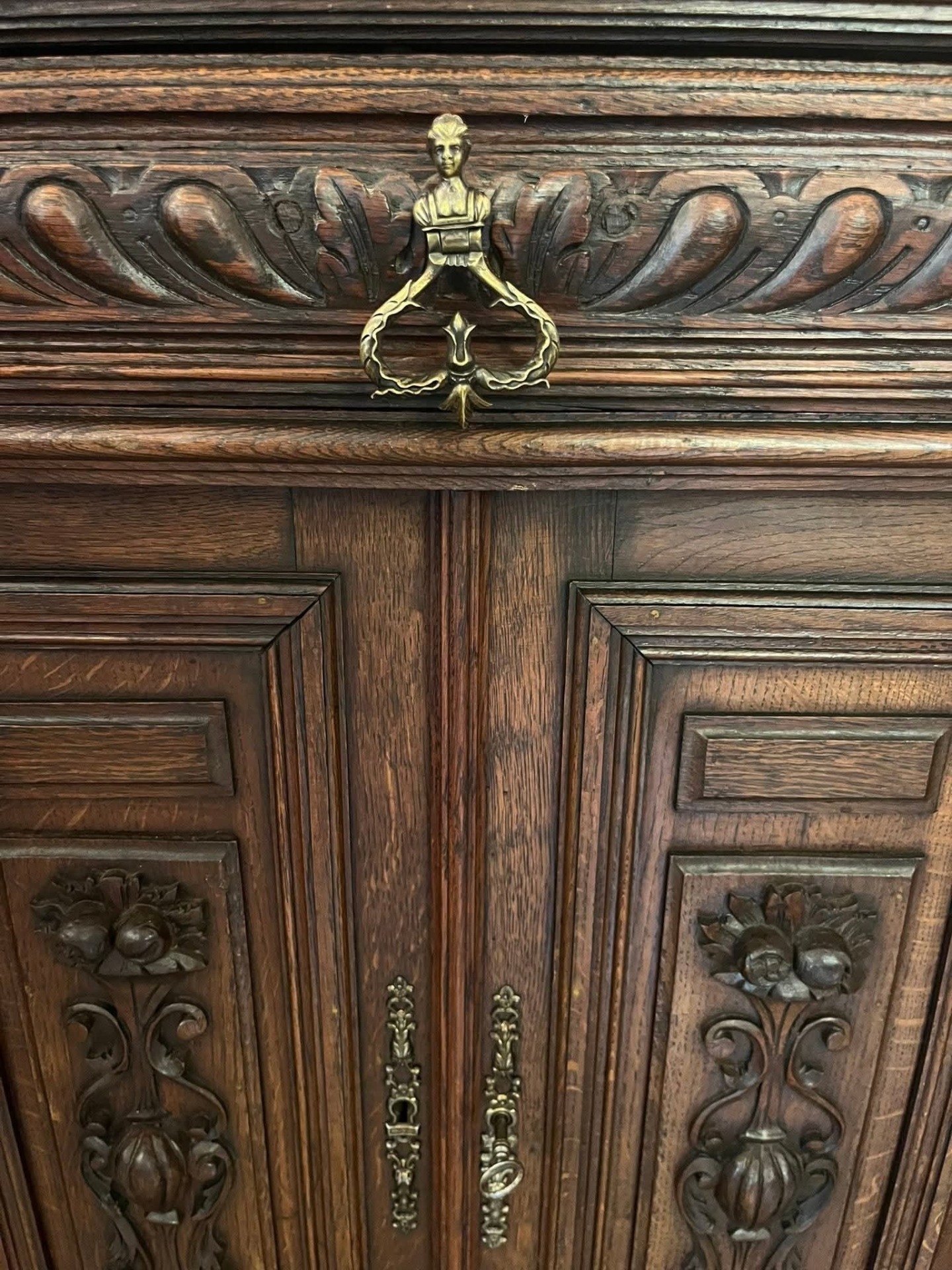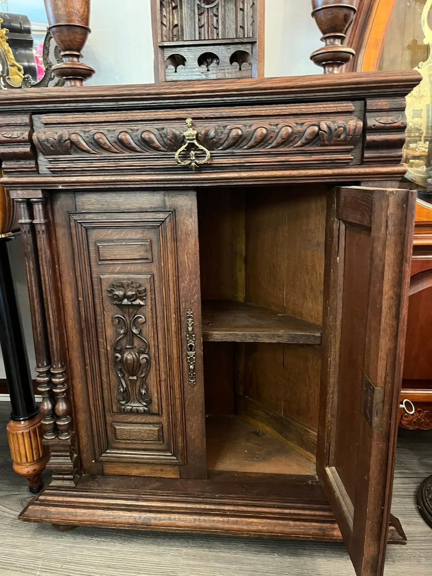 Mobilier antic – bufet/etajeră sculptată manual, lemn masiv, stil renascentist