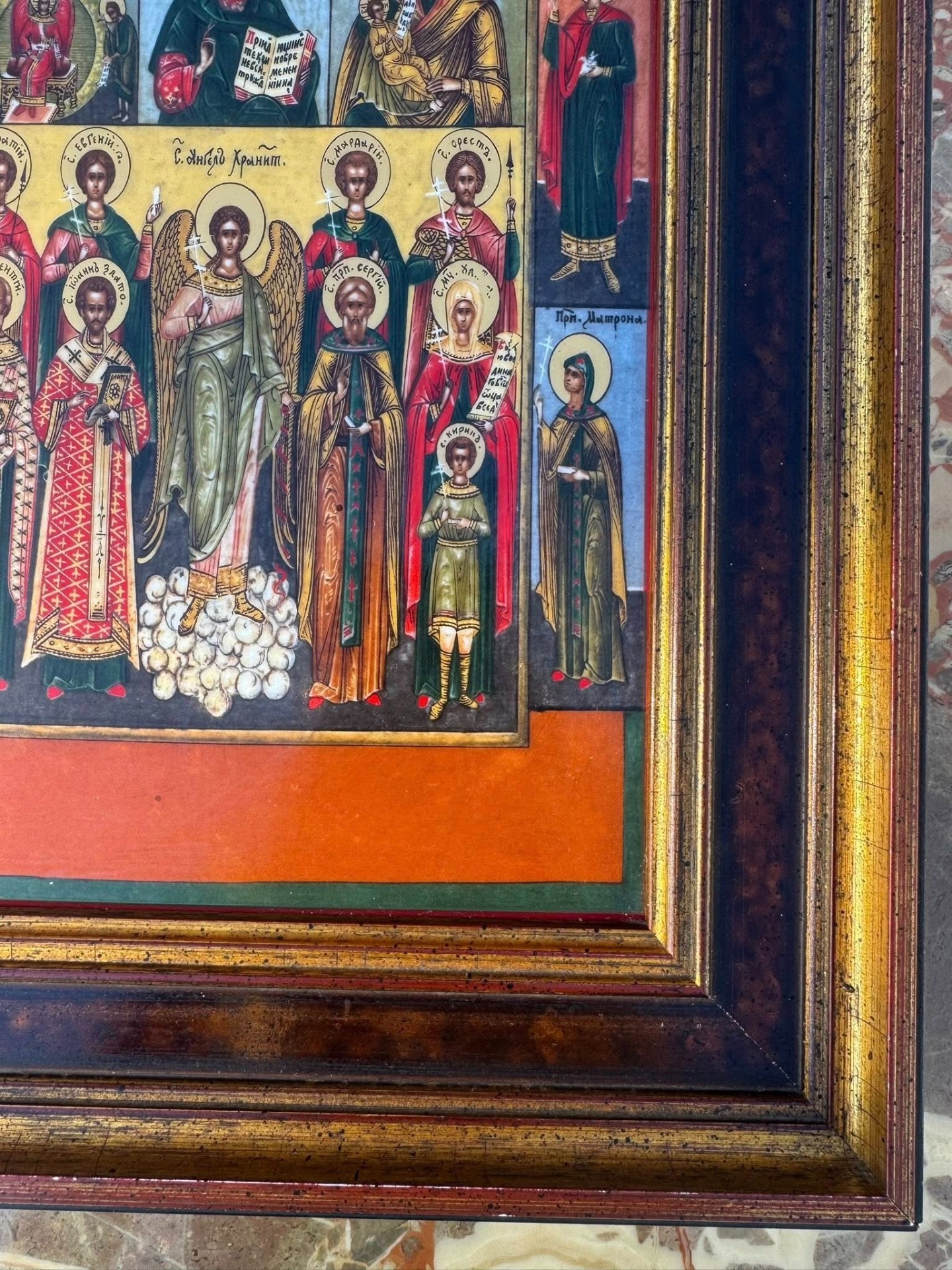 O piesă deosebită, reprezentând pe Iisus Hristos înconjurat de sfinți. Icoana este realizată de faimoasa Școală de icoane Palech de lângă Moscova,