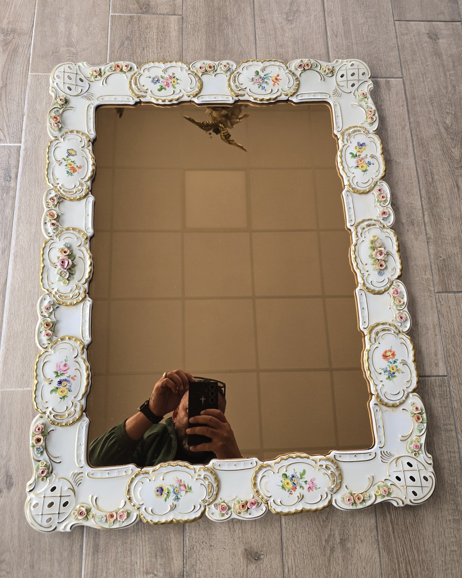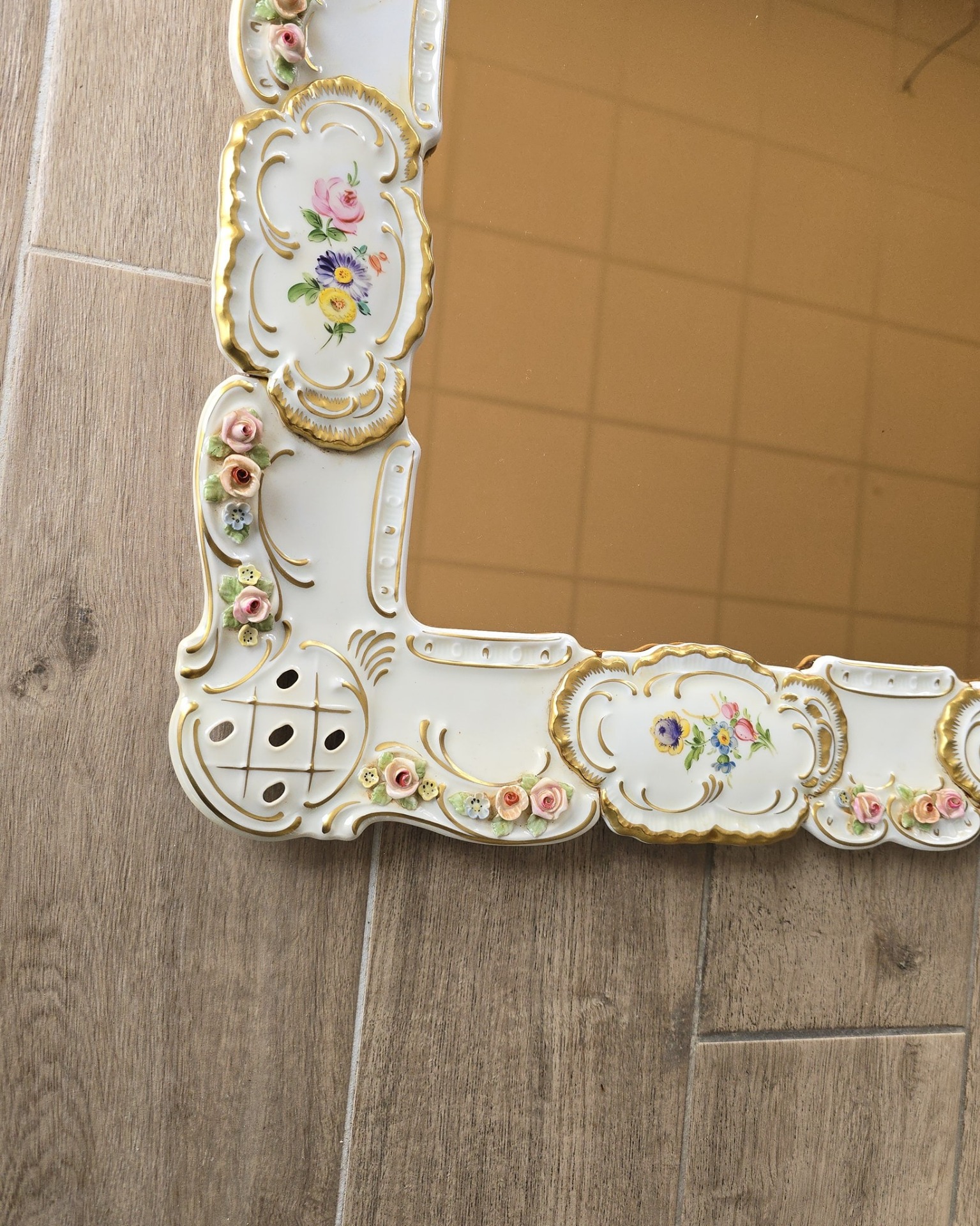 *Oglindă decorativă vintage Lindner Kunst Bavaria – pictură pe porțelan cobalt veritabil, semnată de artist*