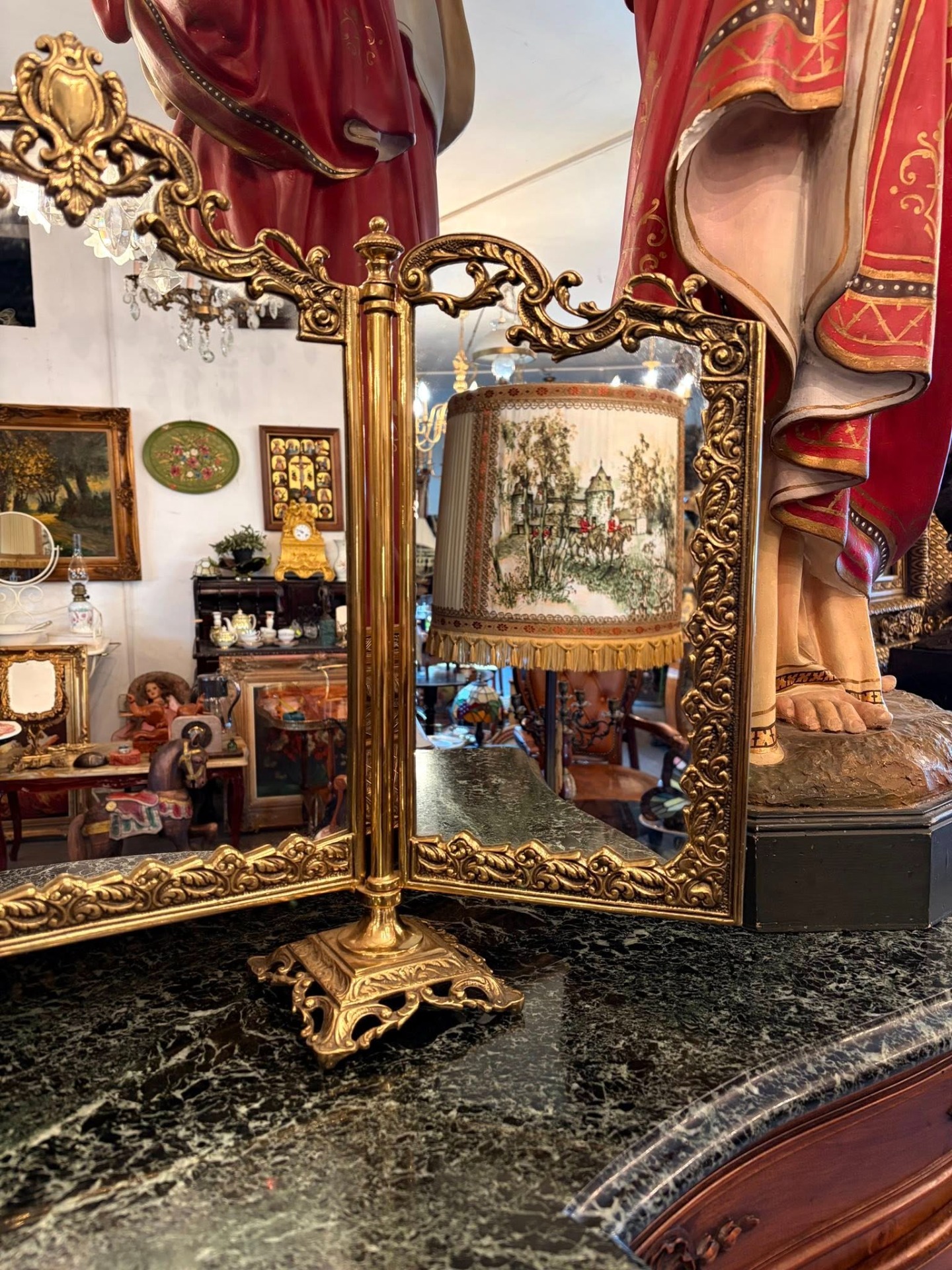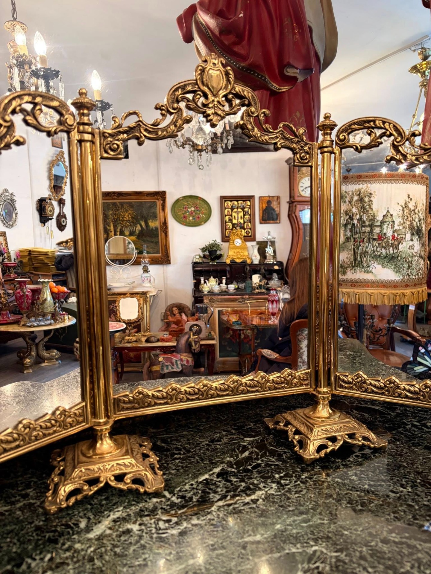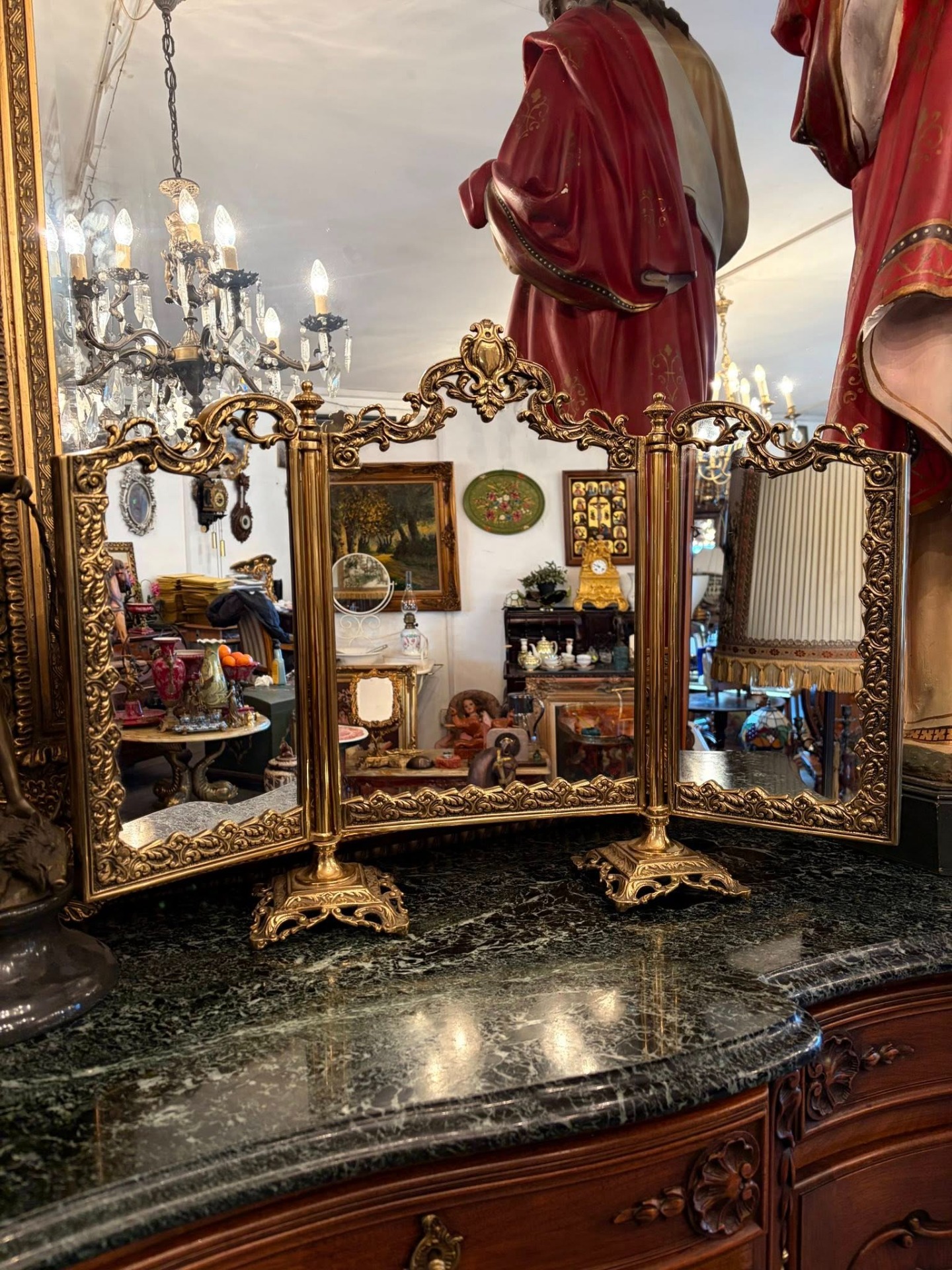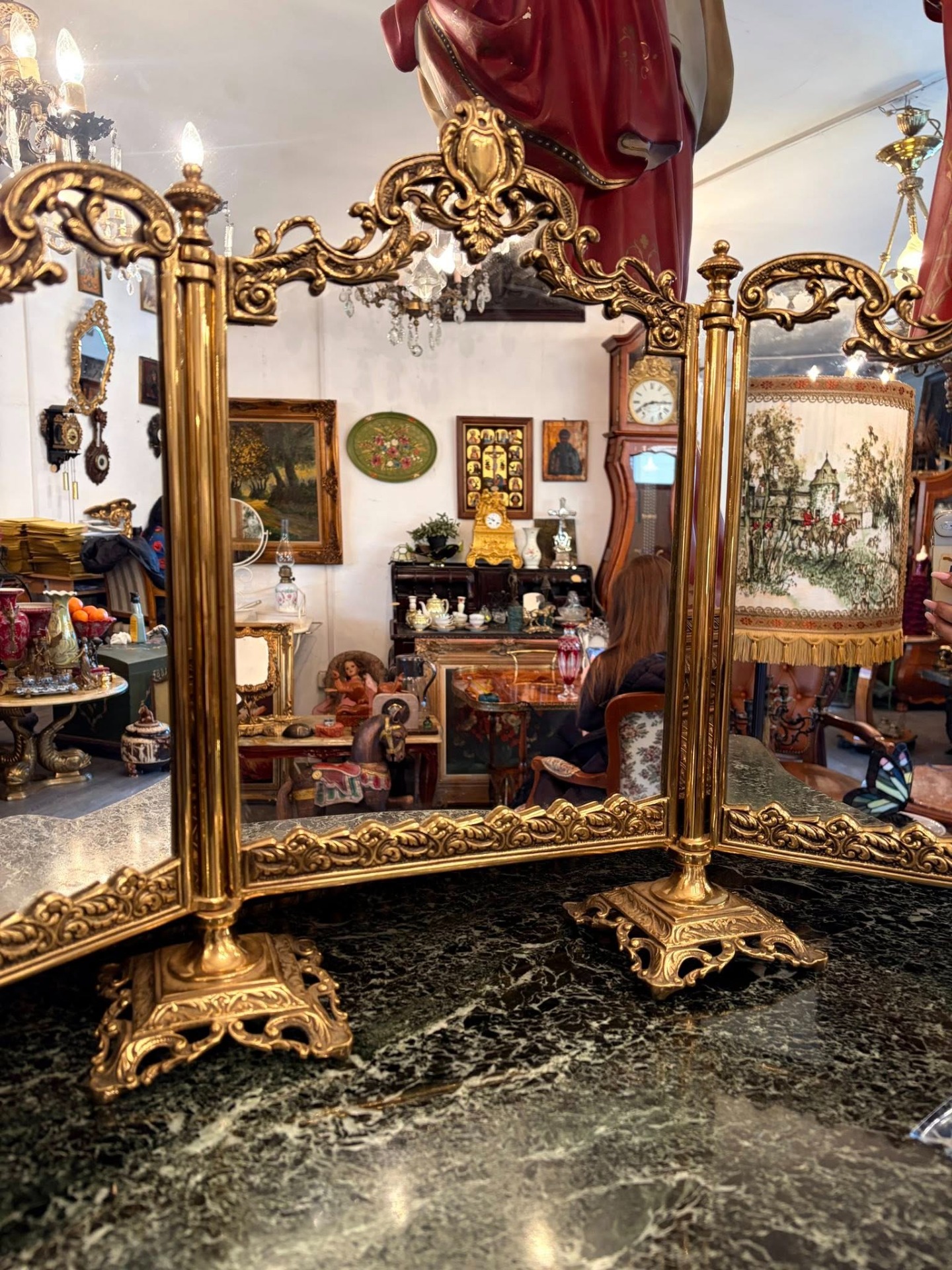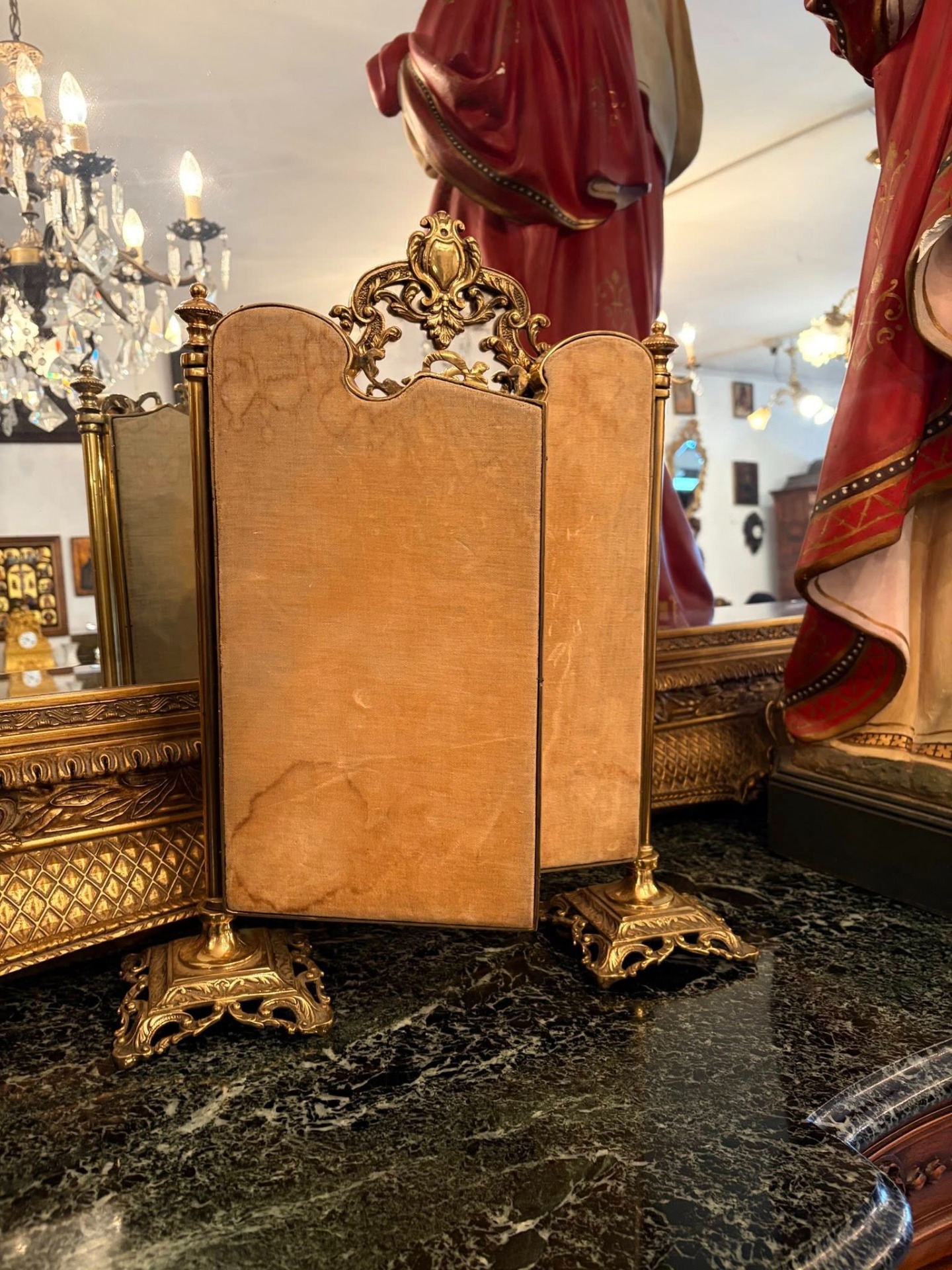 Oglindă triptic vintage din bronz– stil baroc / rococo