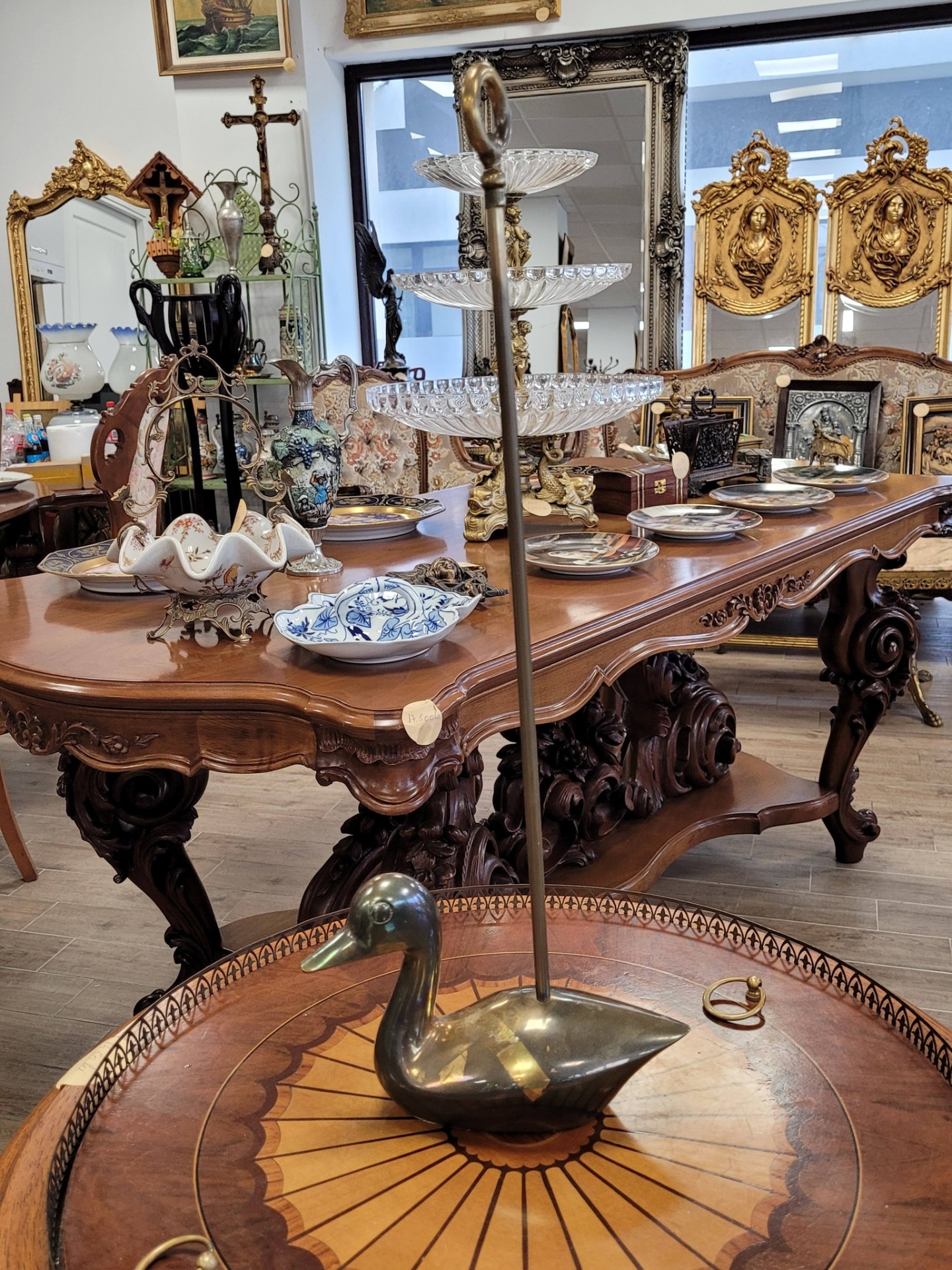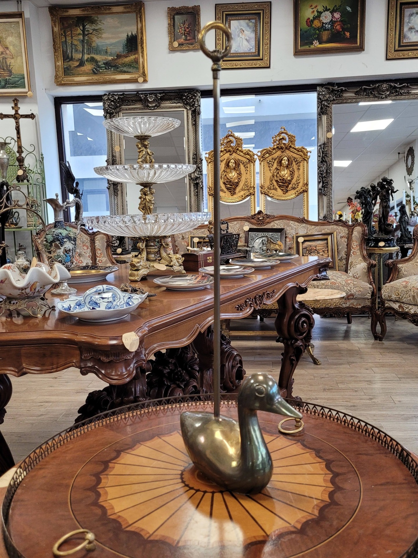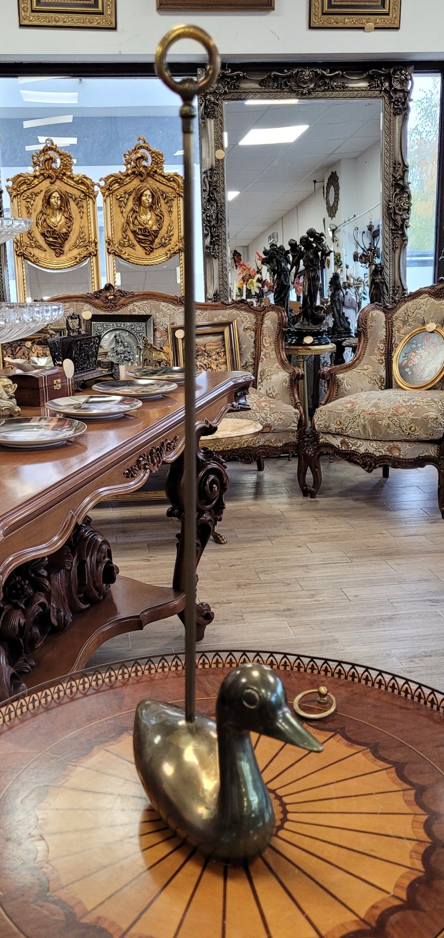 Opritor pentru ușă vechi, din bronz, cu baza în forma stilizată a unei rațe,