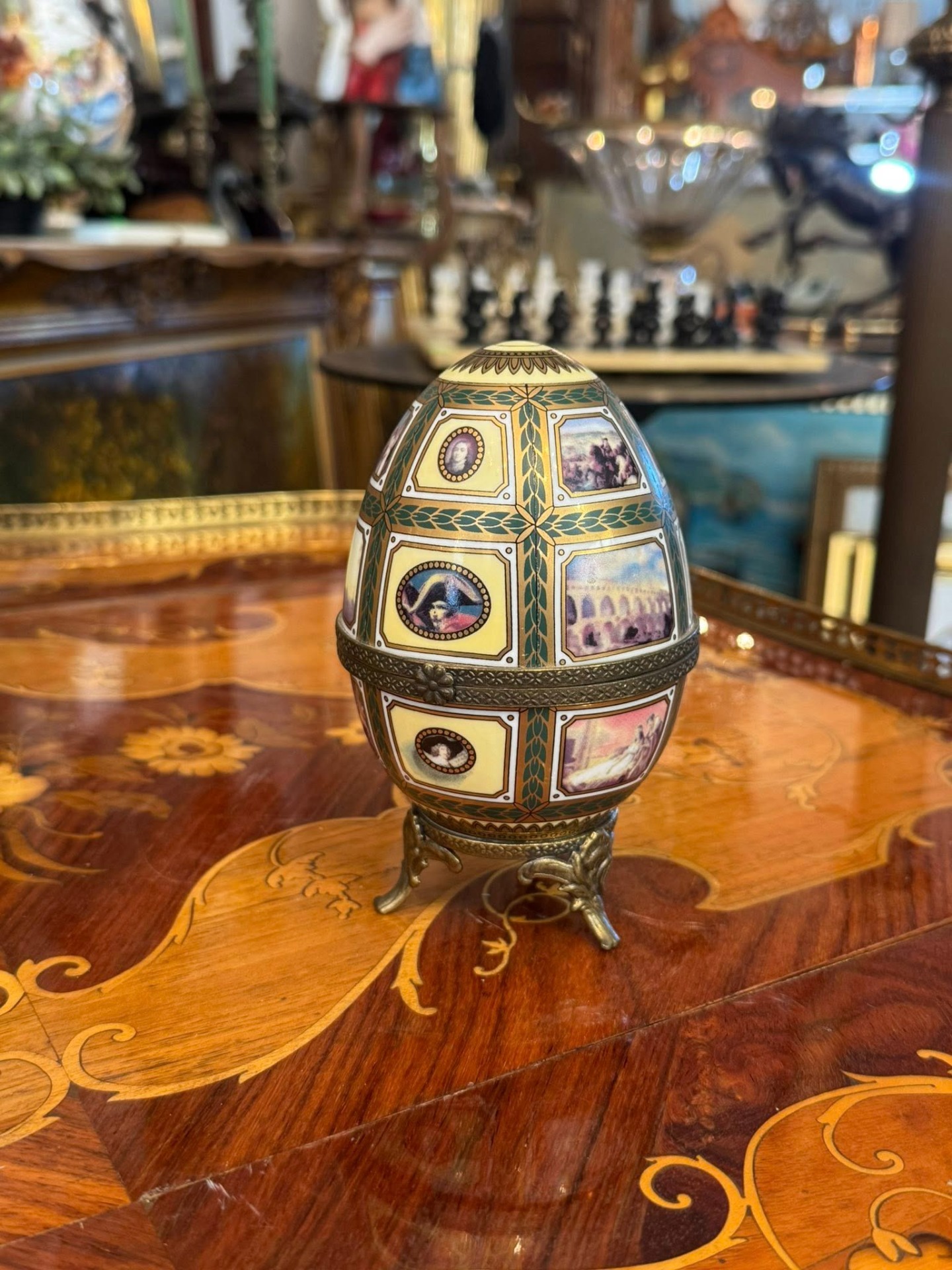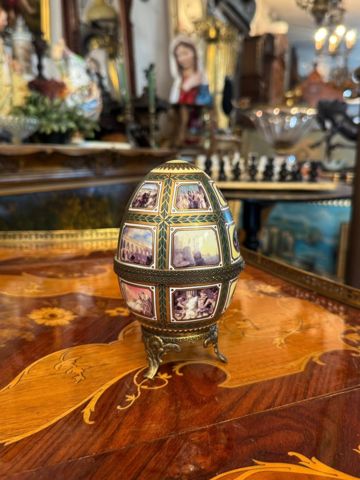 Ou decorativ de tip Fabergé din porțelan, în stil Neo-clasic,
