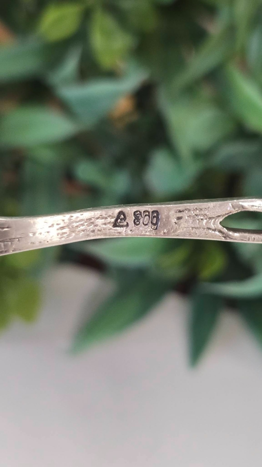 Prezintă marcaj de argint 800 și marcaj de meșter.