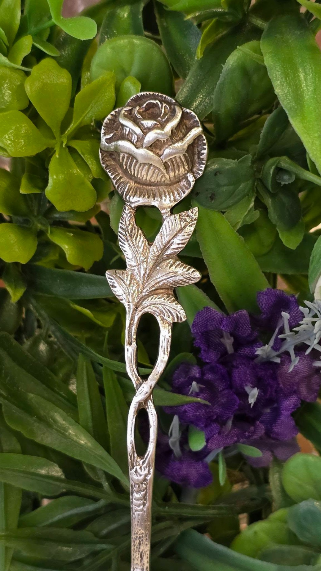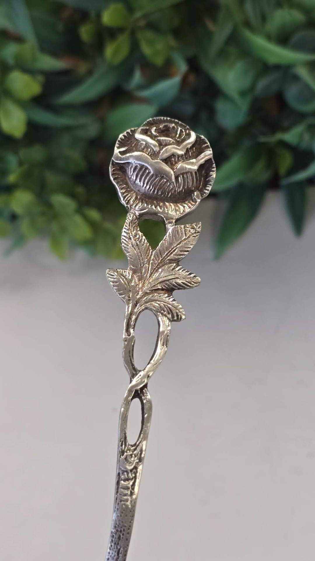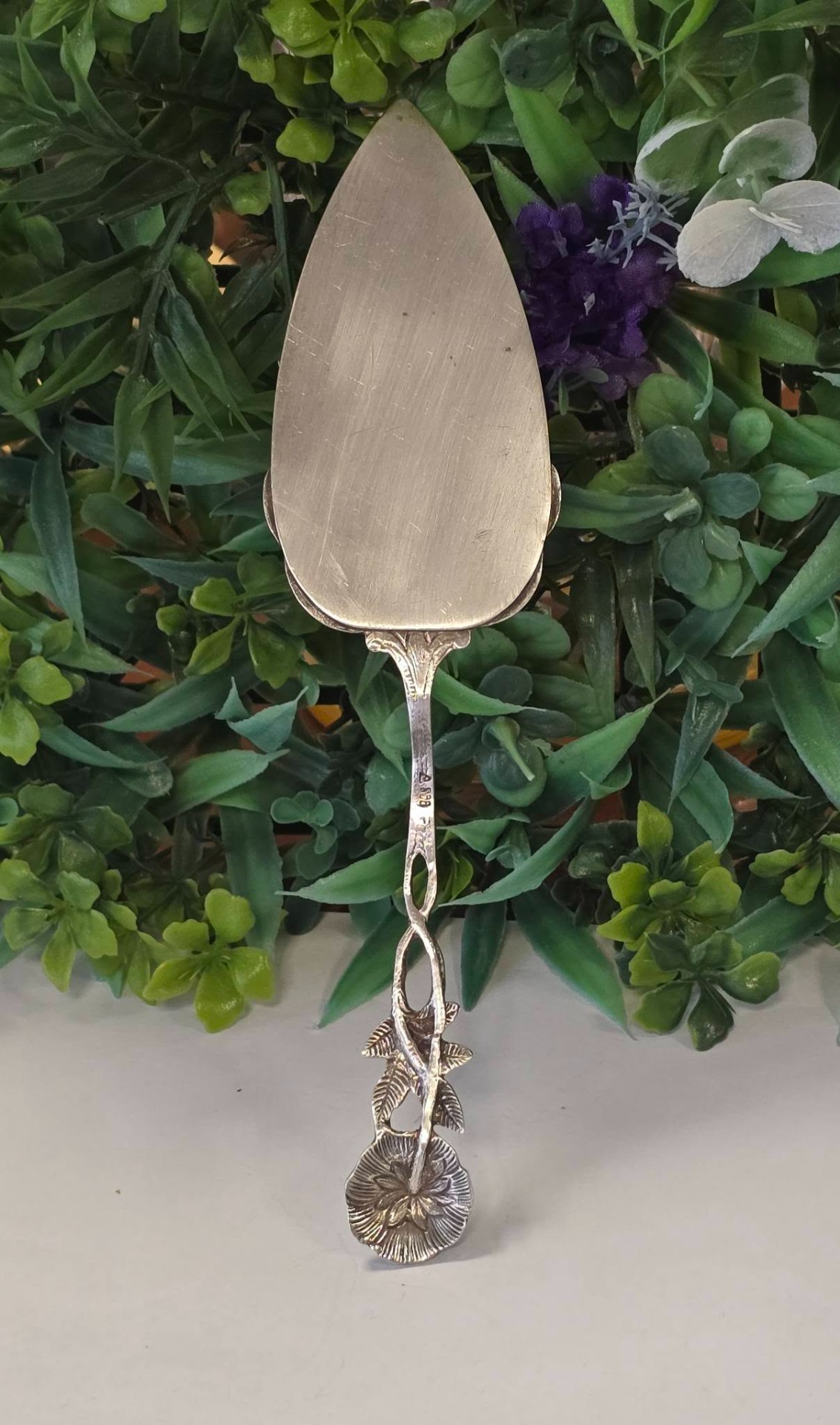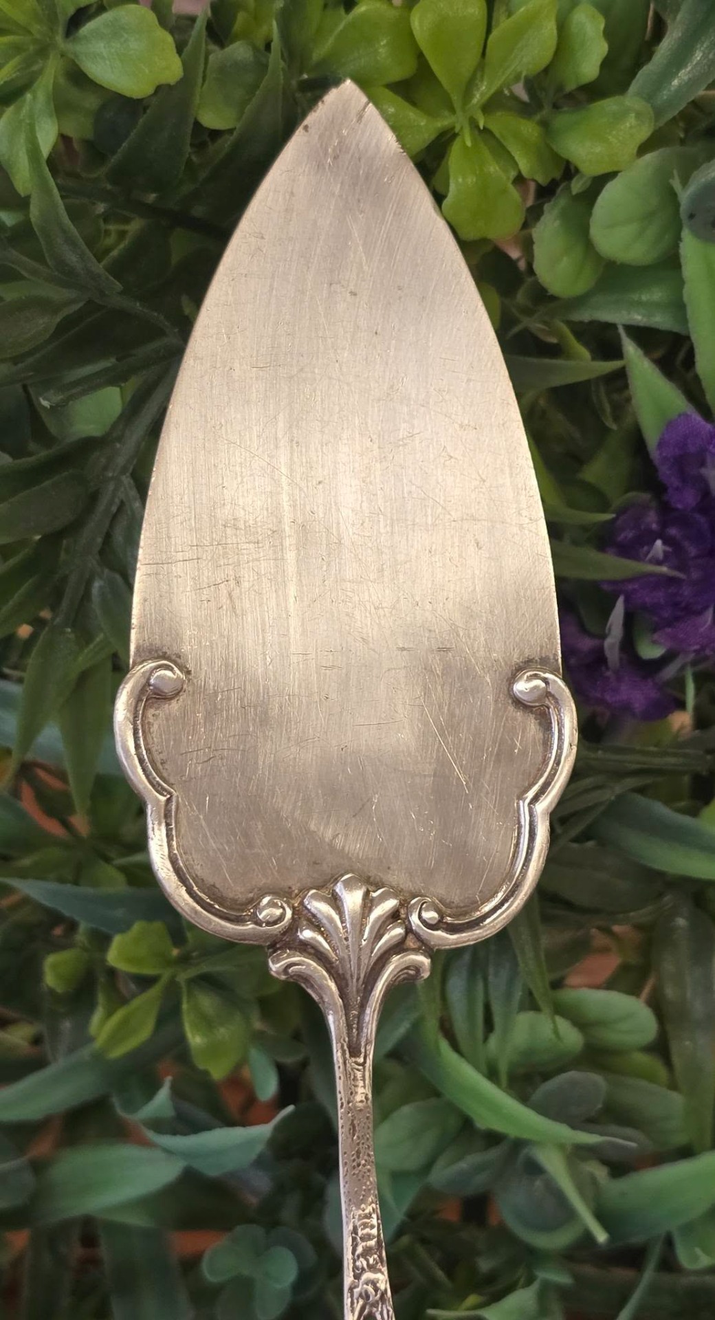 Paletă veche pentru desert, din argint, frumos lucrată manual în motiv "Hildesheim Rose" (anii 1940, Germania).