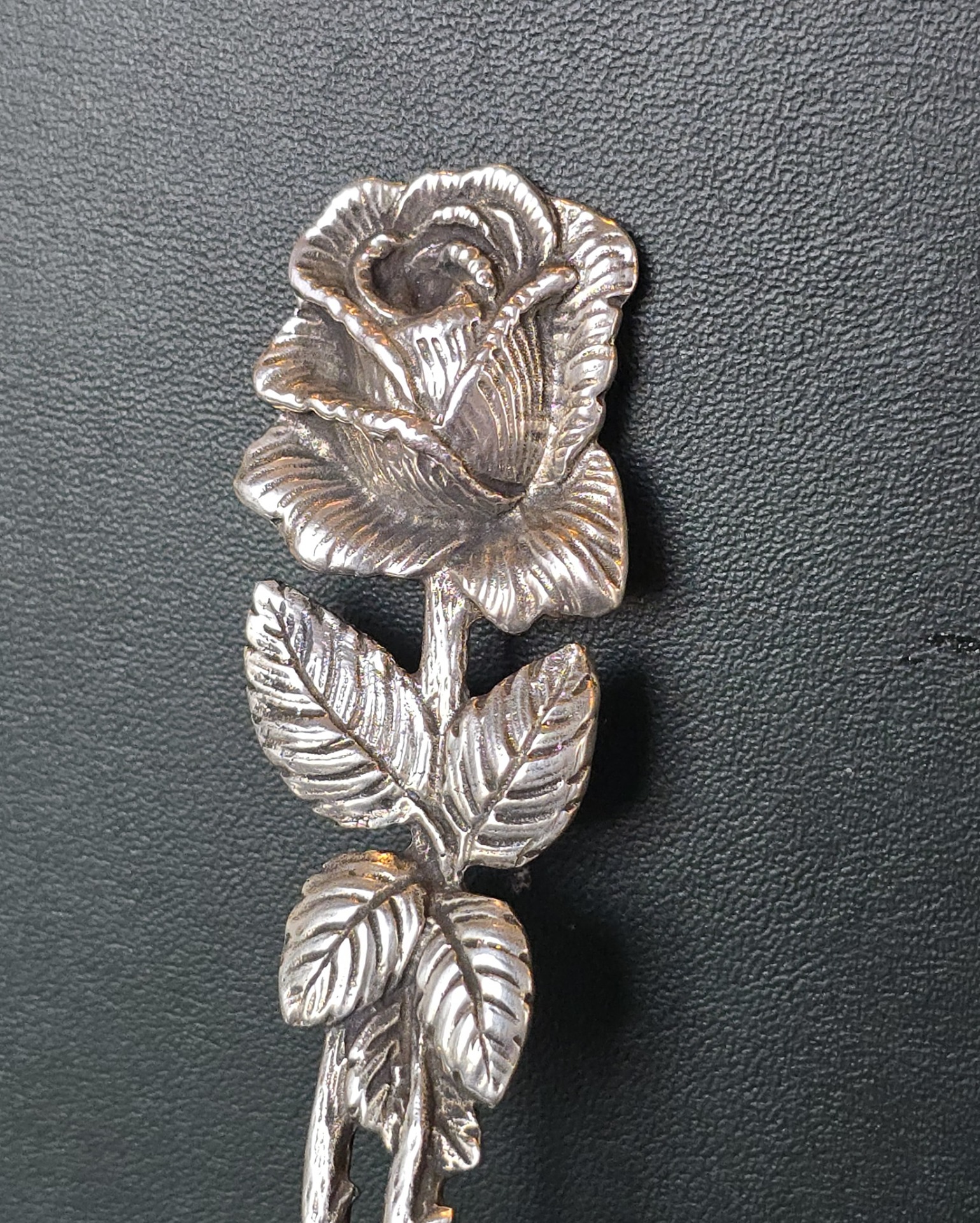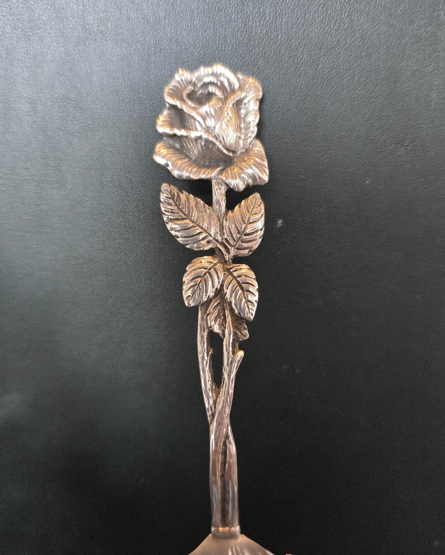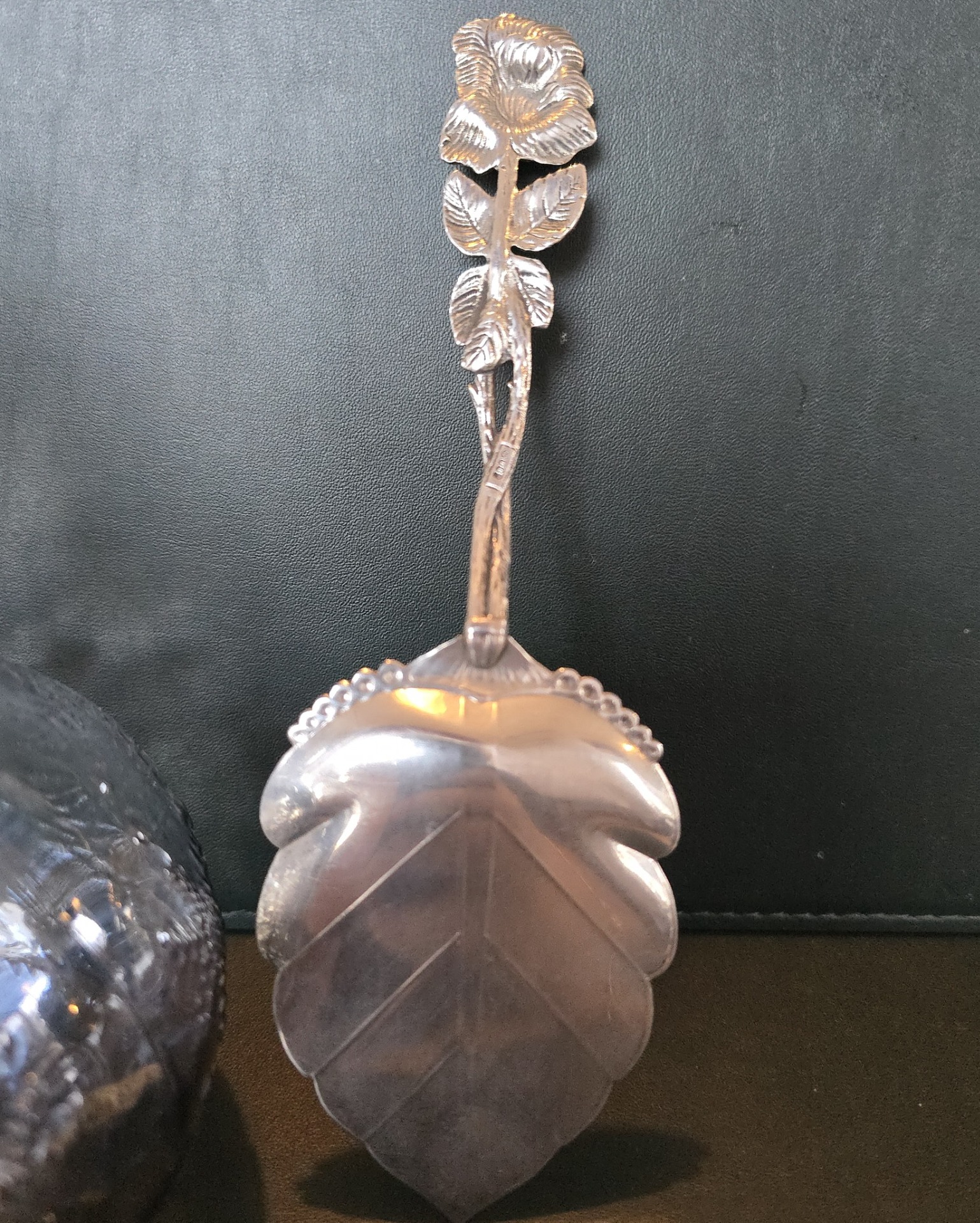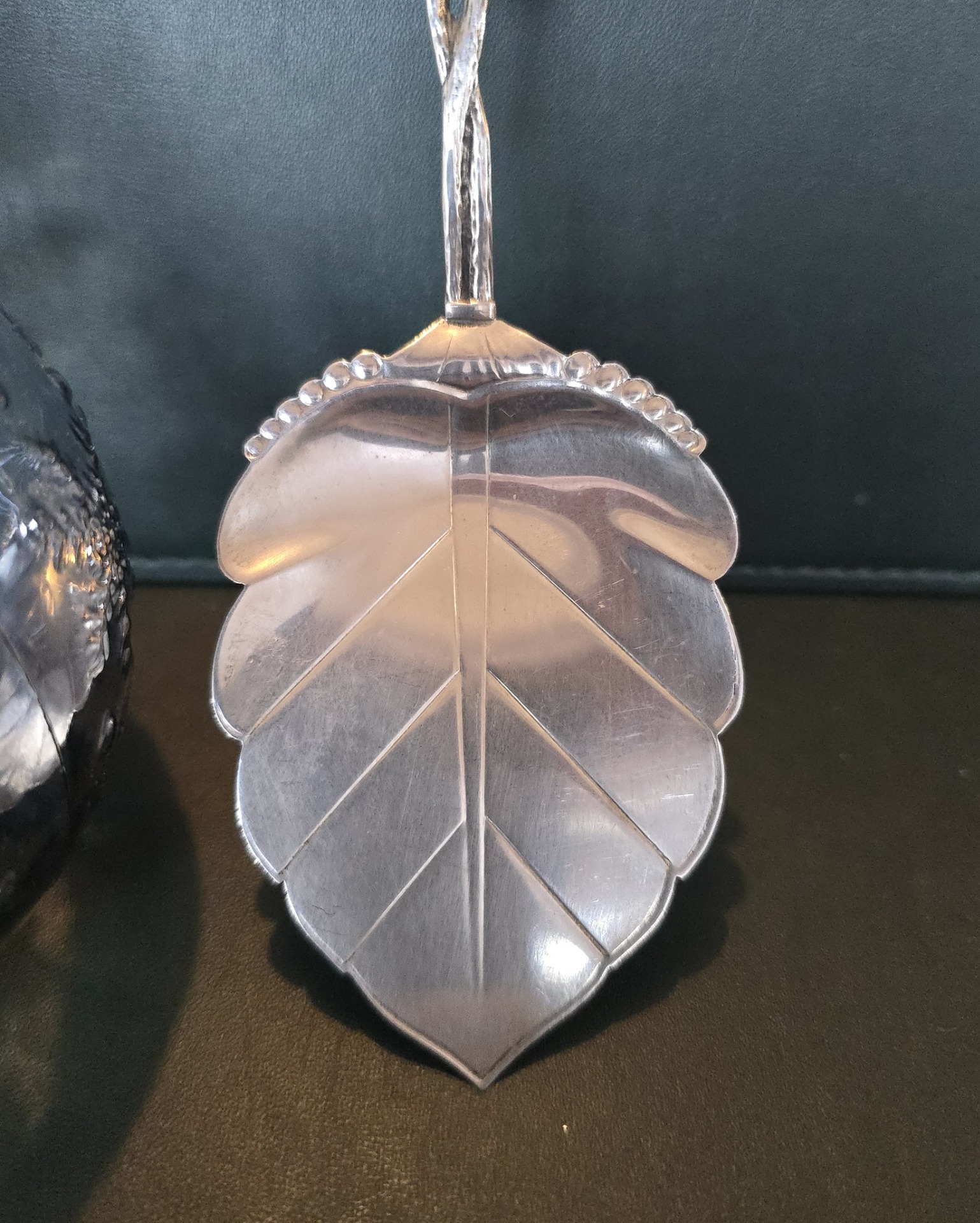 Paletă veche pentru desert, din argint, frumos lucrată manual în motiv "Hildesheim Rose" (anii 1940, Germania).