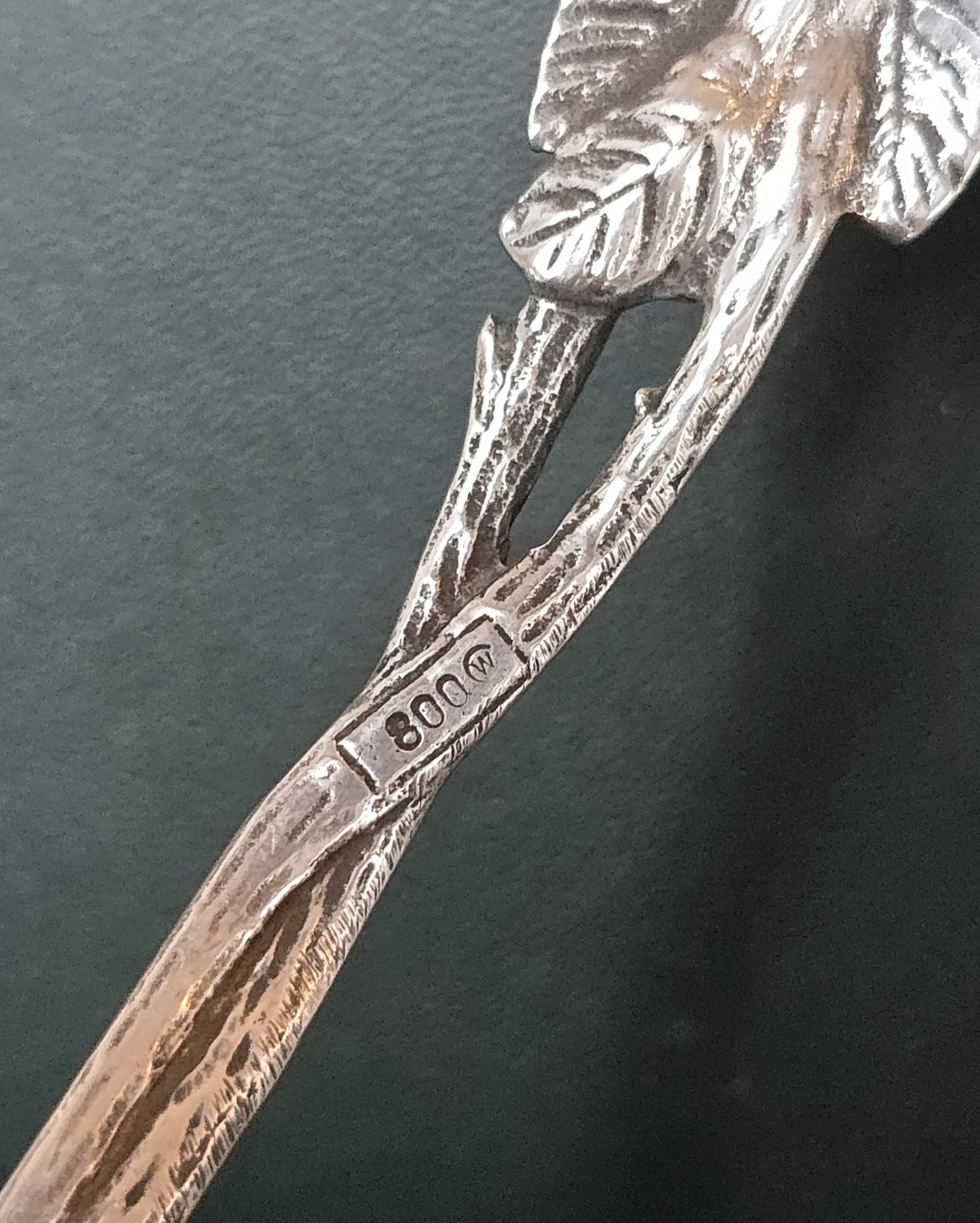 Prezintă marcaj de argint 800 și marcaj de meșter.