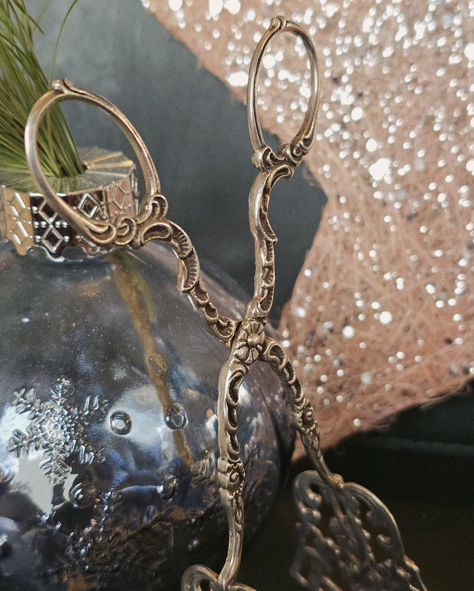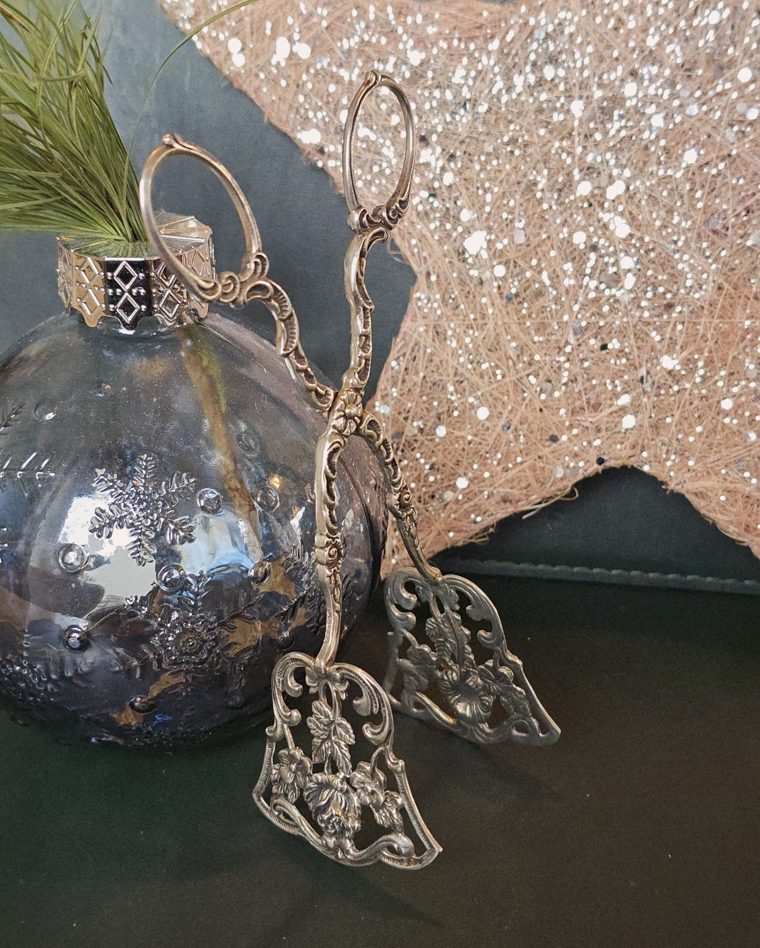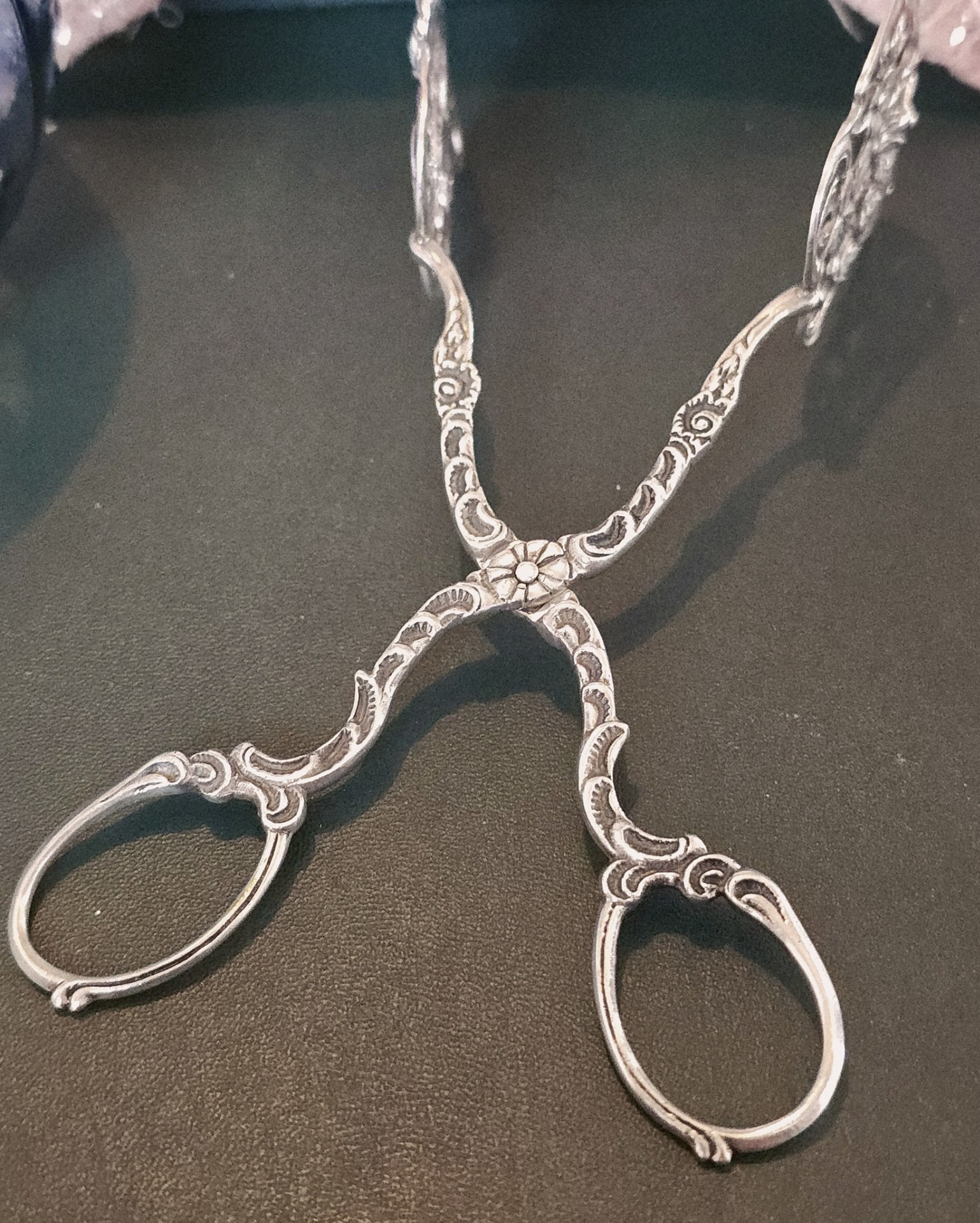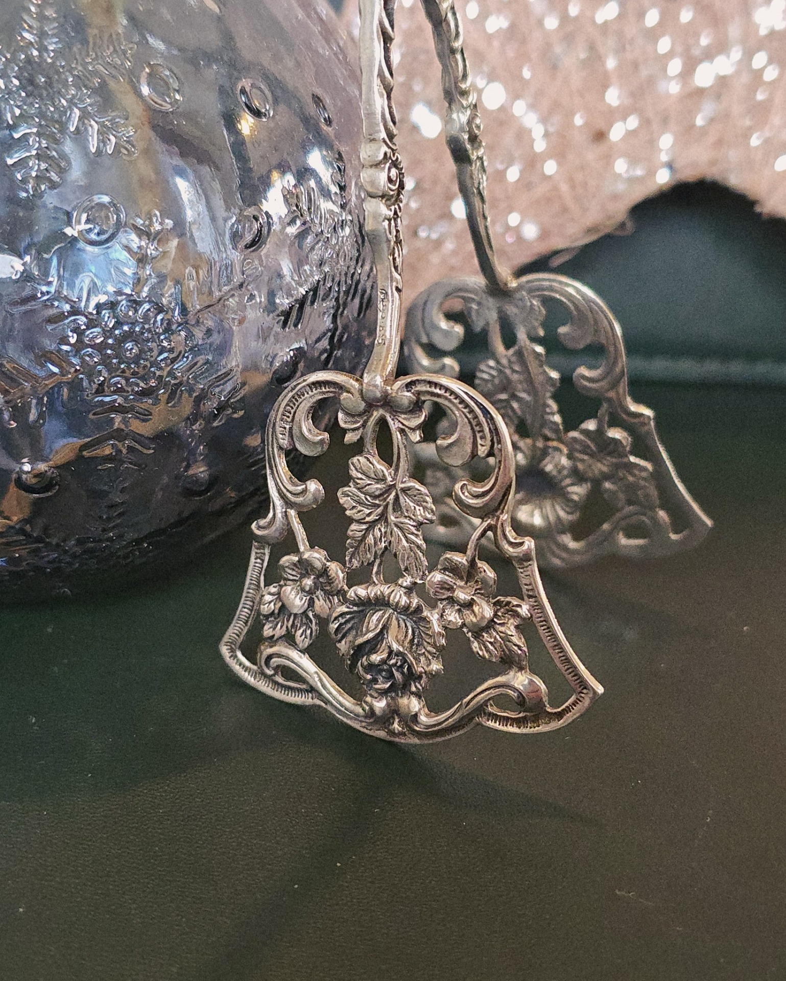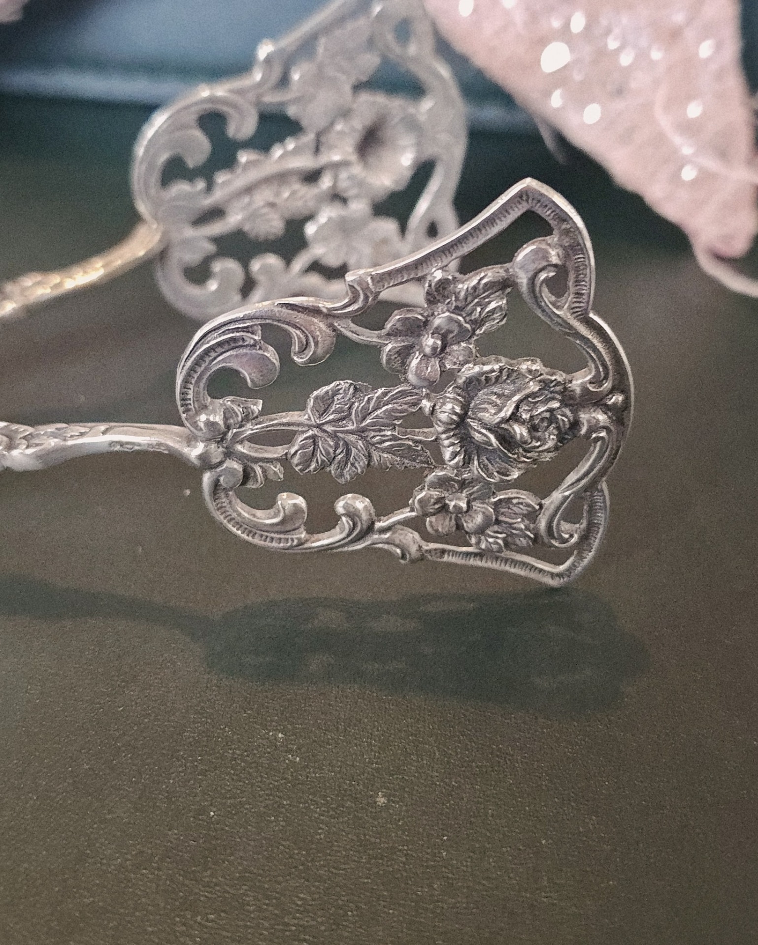 Paletă veche pentru desert, din argint, frumos lucrată manual în motiv "Hildesheim Rose" (anii 1940, Germania).