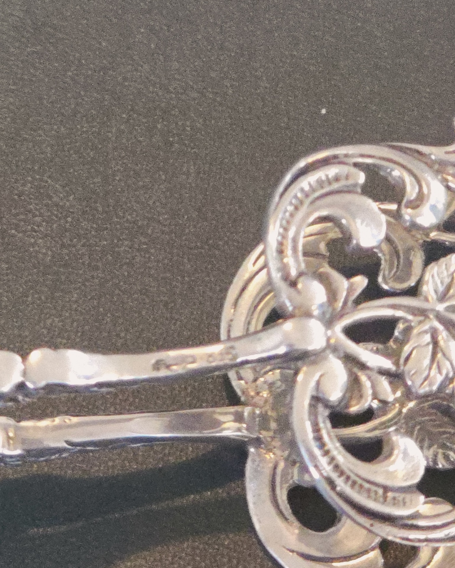 Prezintă marcaj de argint 800 și marcaj de meșter.