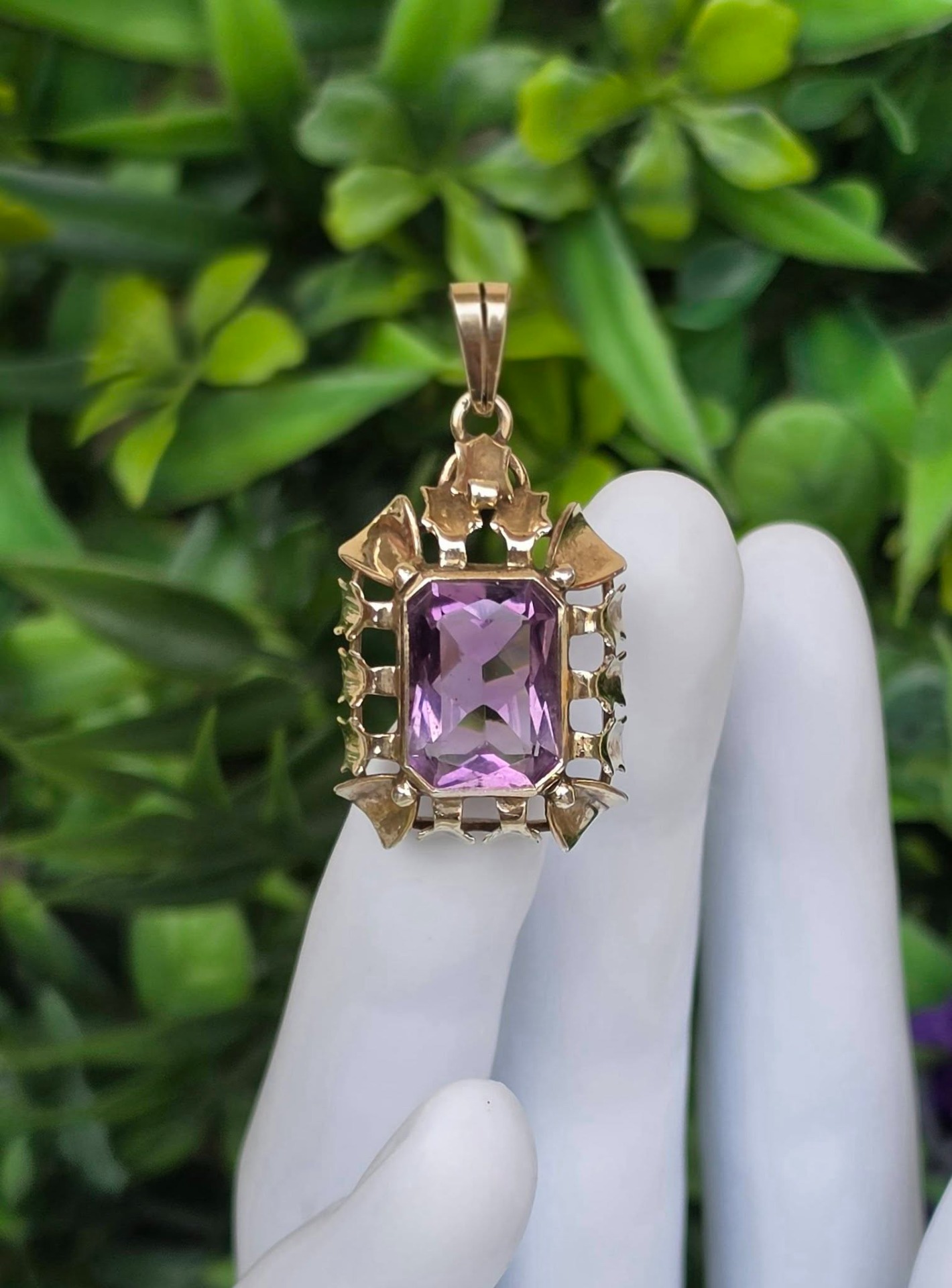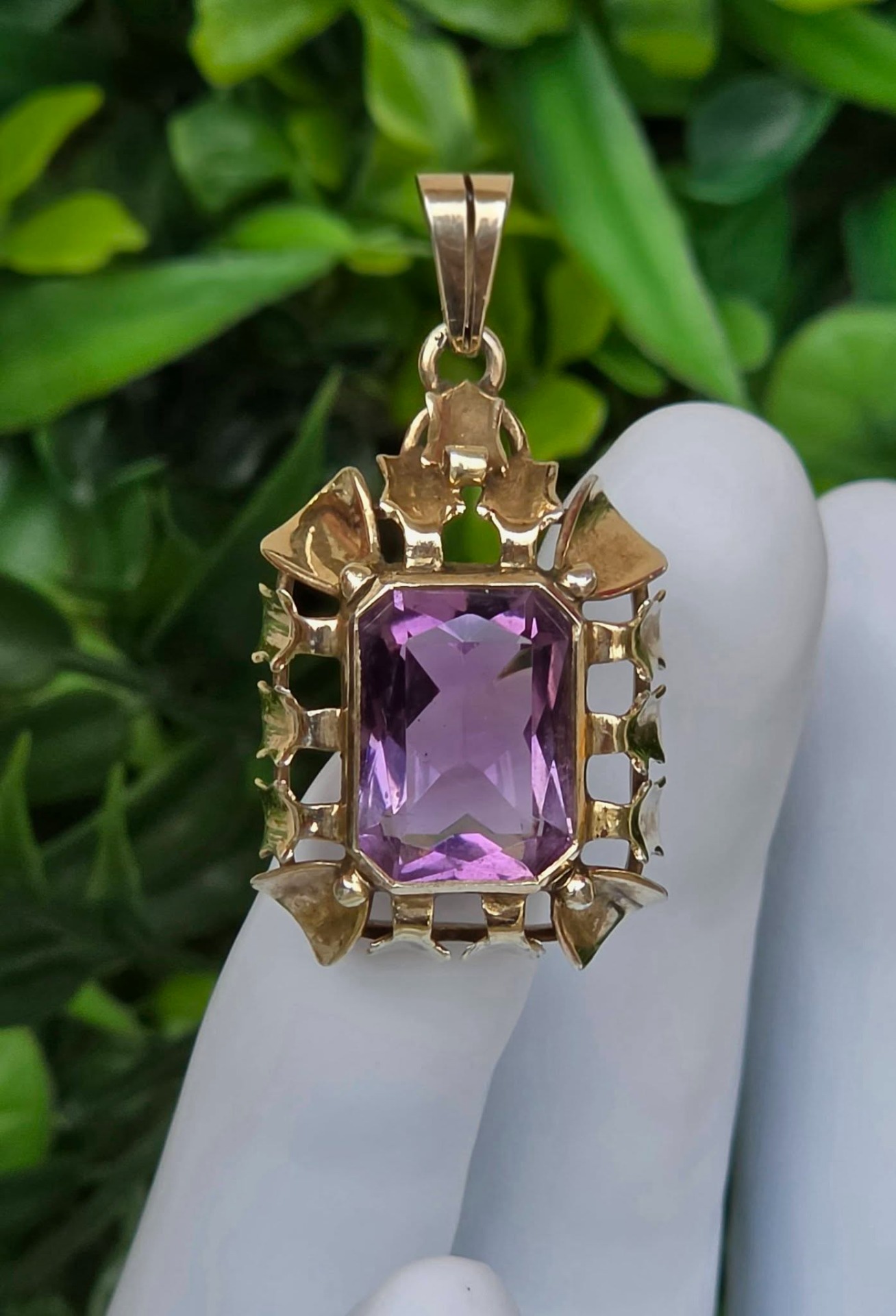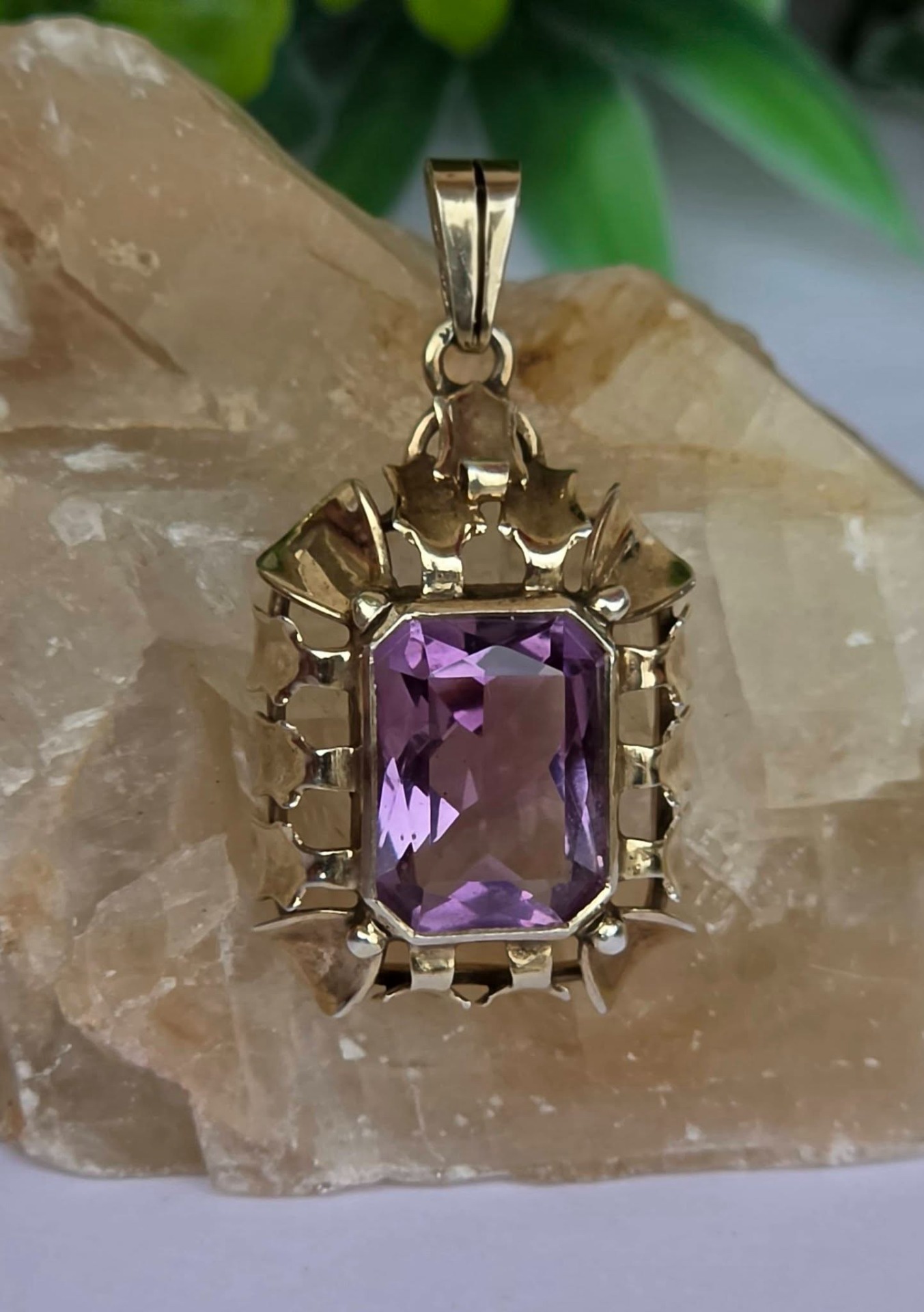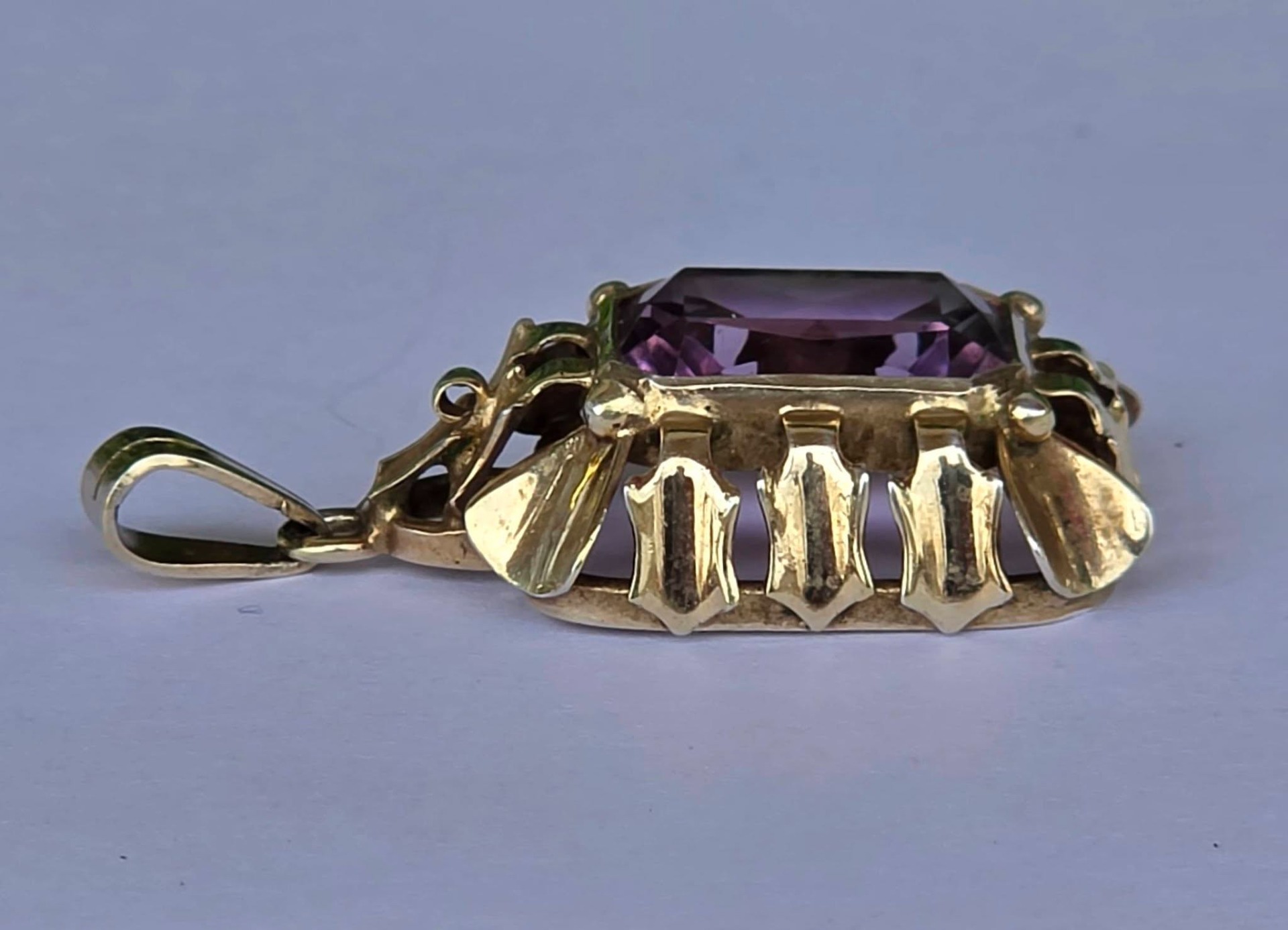 Pandantiv Art Deco din argint aurit, cu ametist natural (anii 1930-1940, Germania).