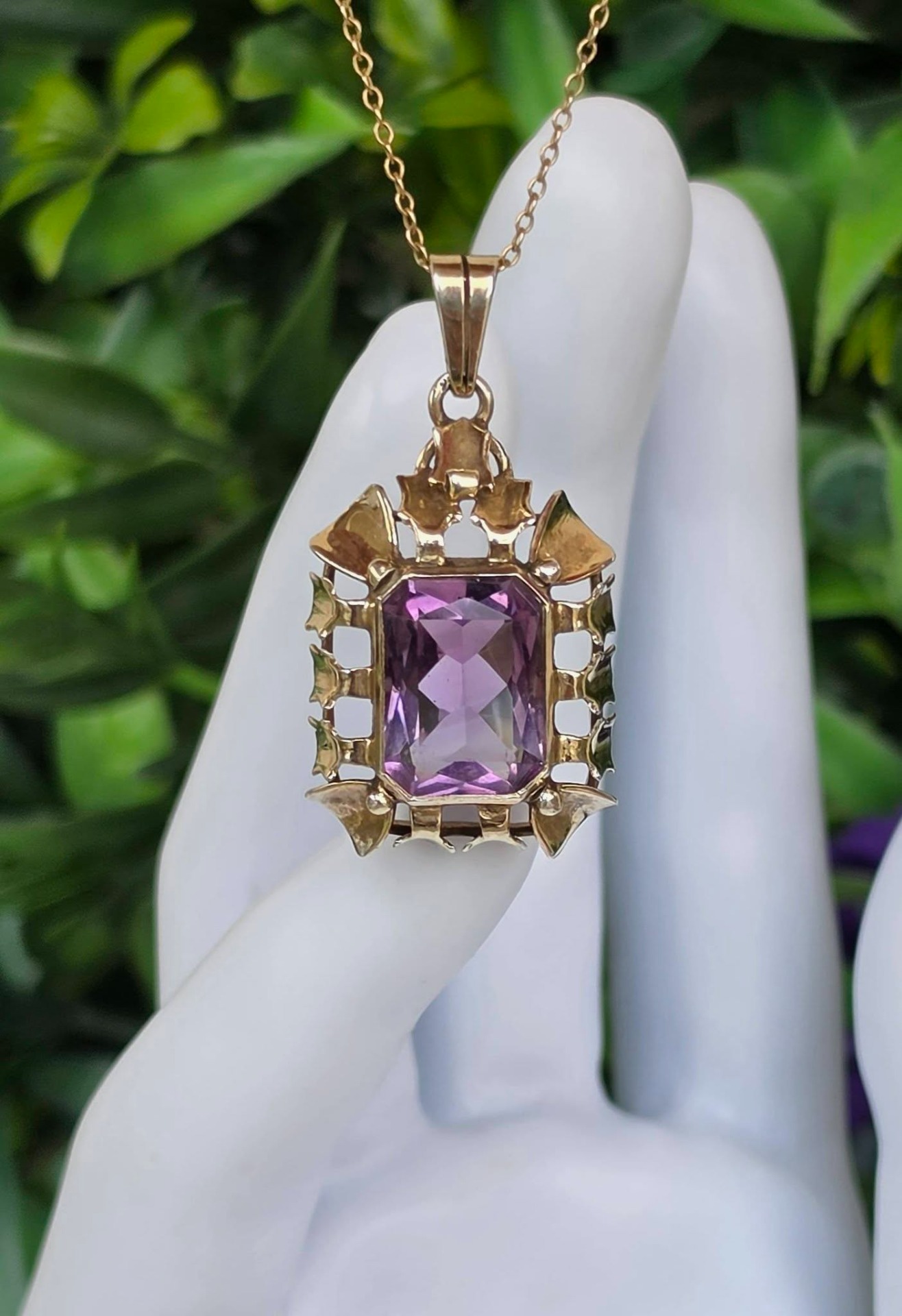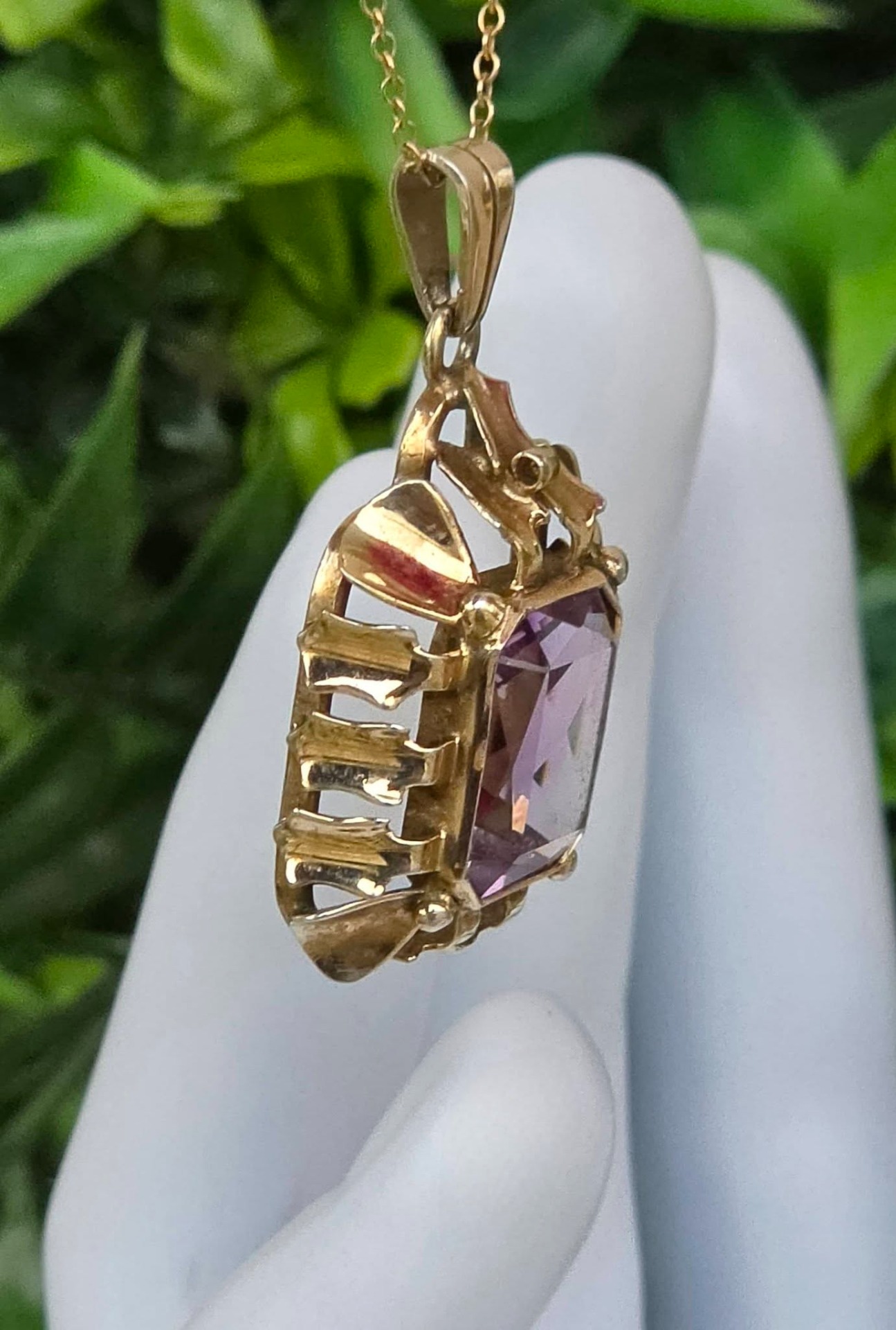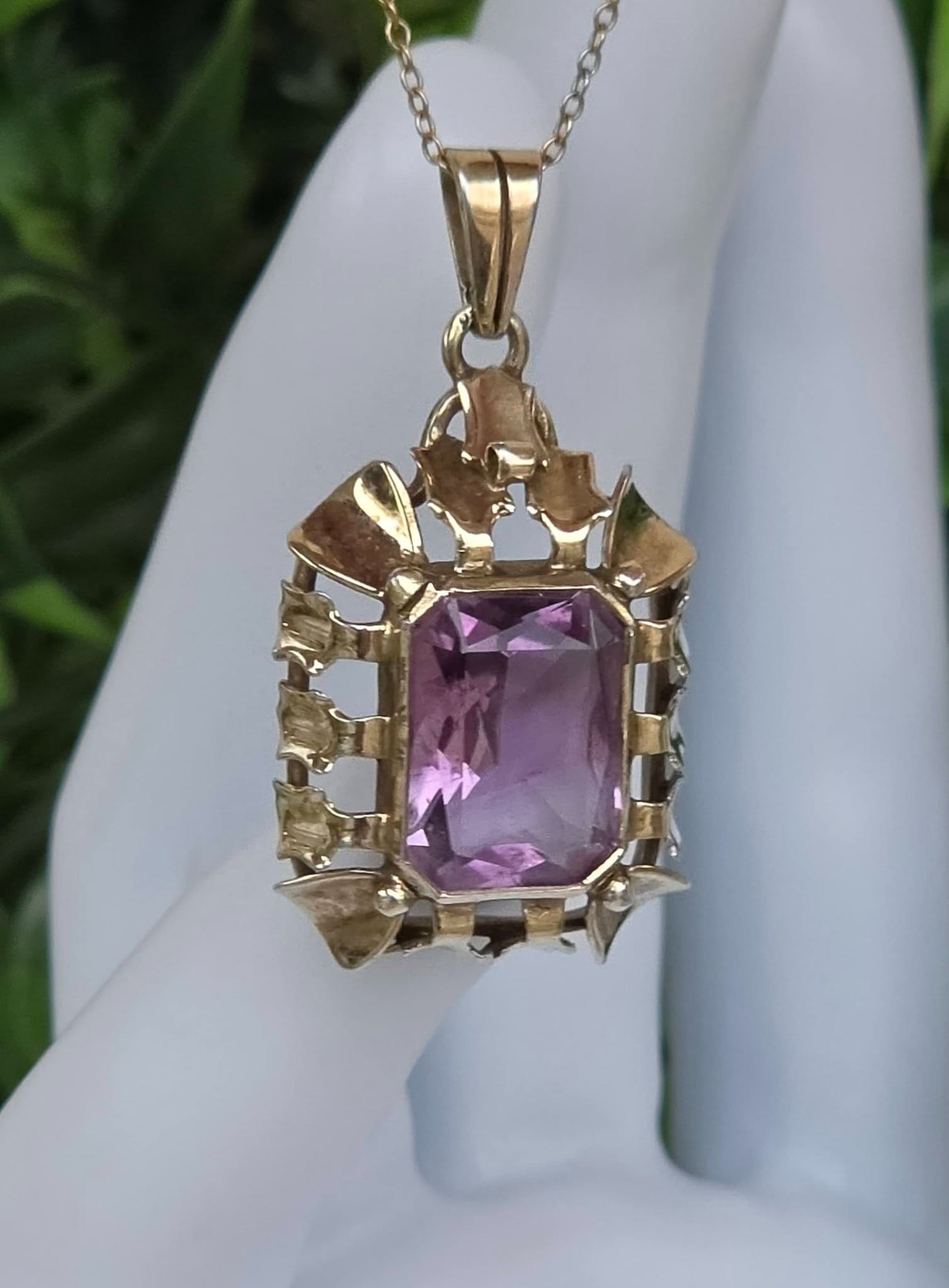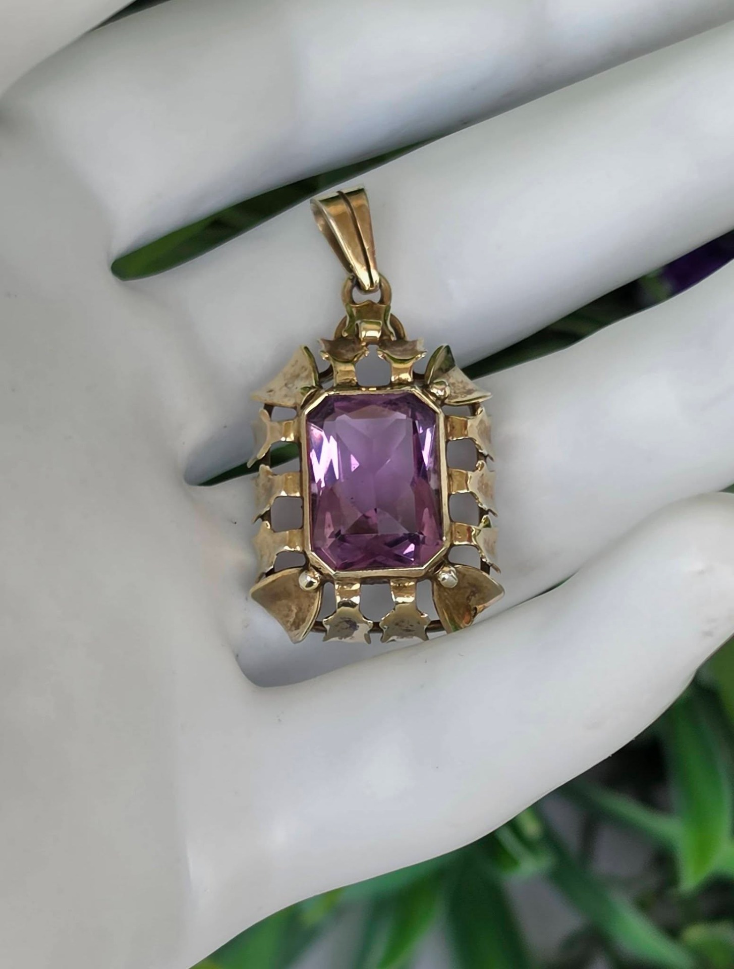 Pandantiv Art Deco din argint aurit, cu ametist natural (anii 1930-1940, Germania).