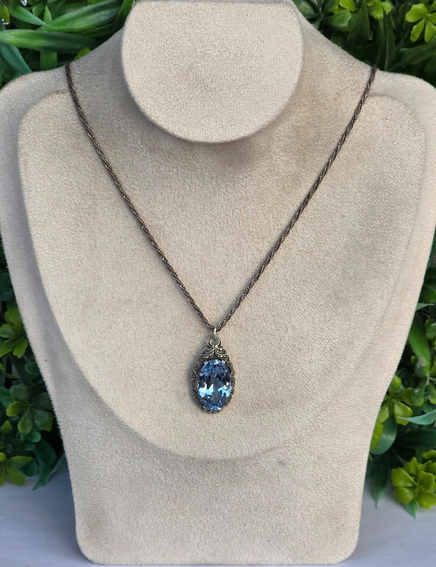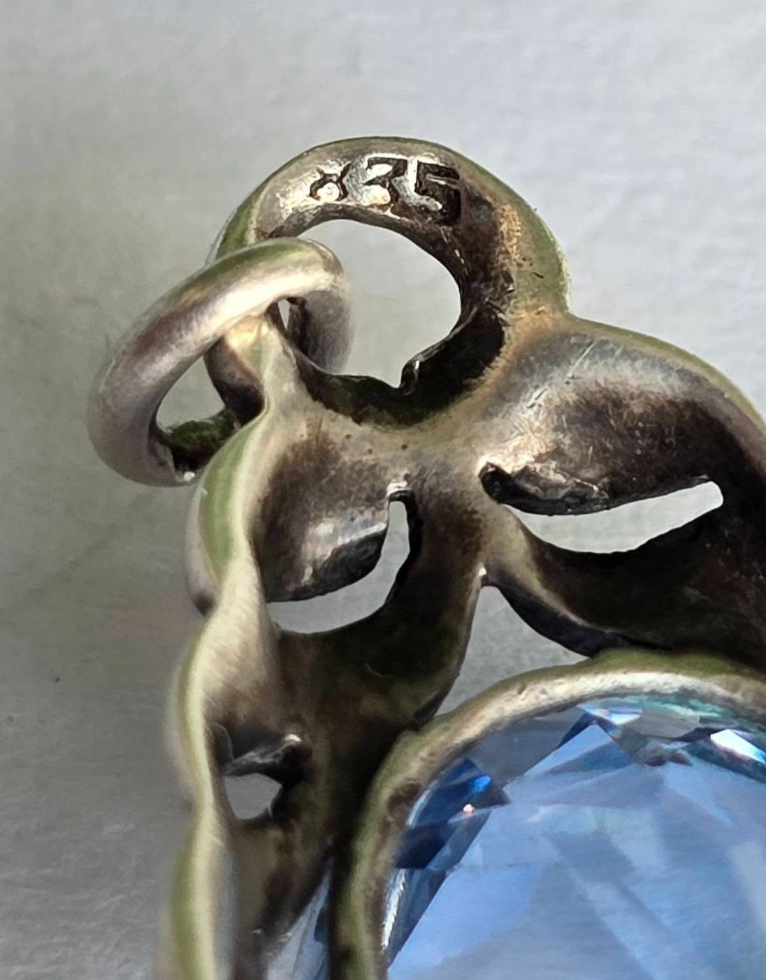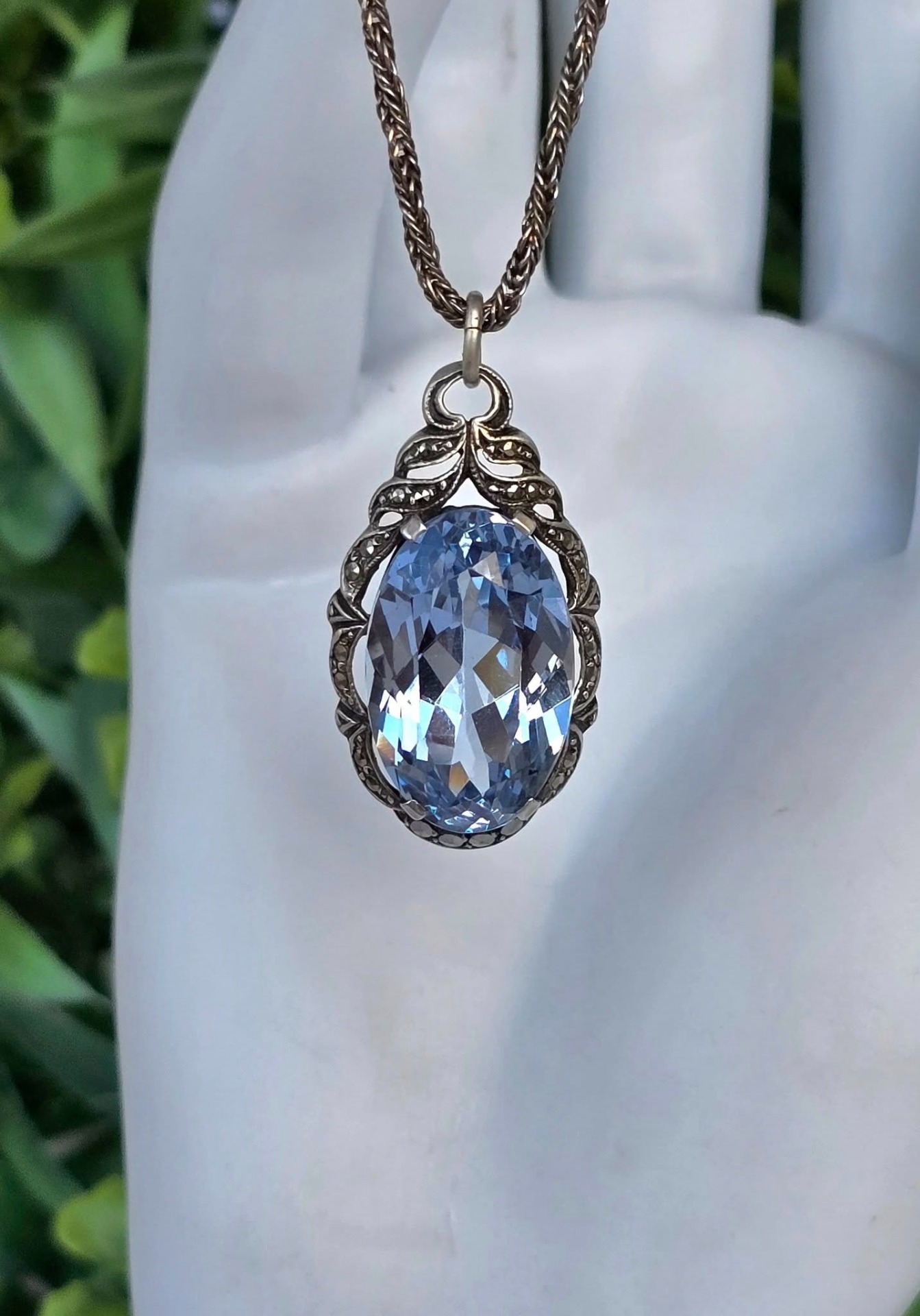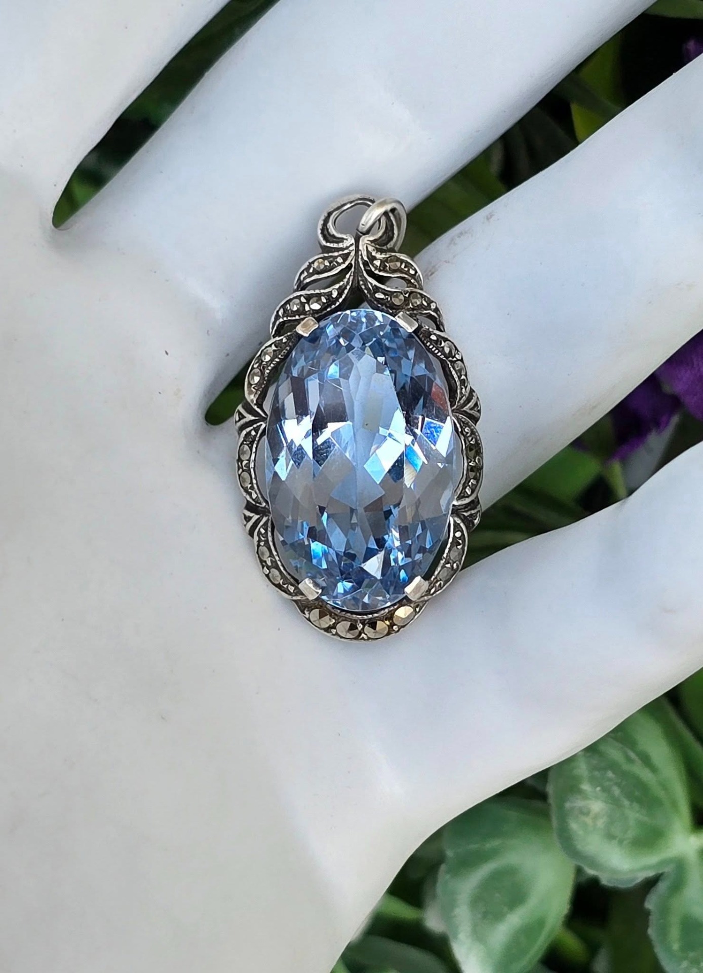 Pandantiv Art Deco din argint, cu un superb topaz natural și marcasite (anii 1930-1940, Germania).