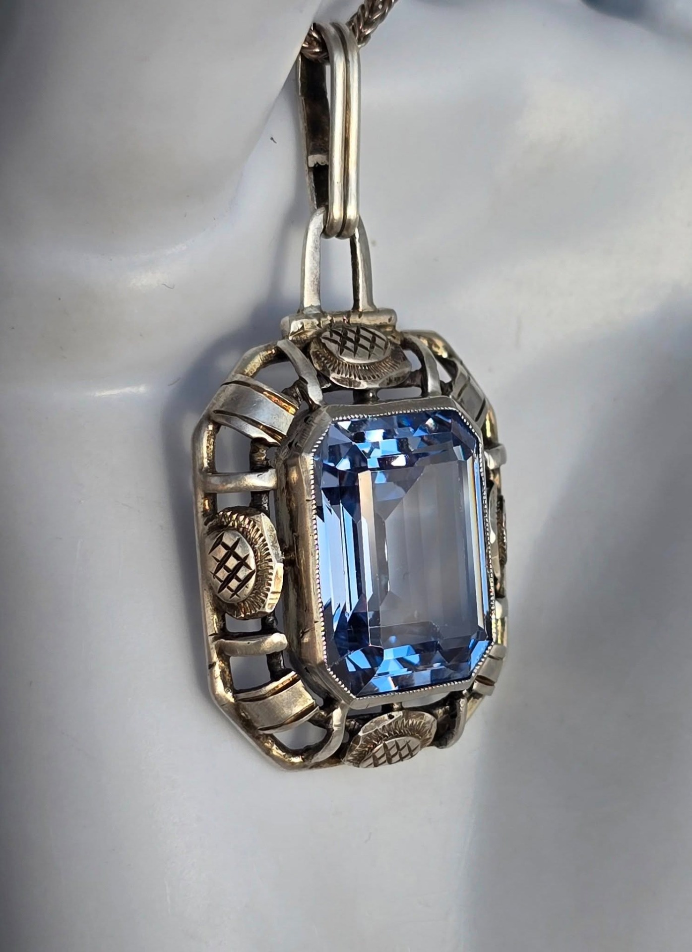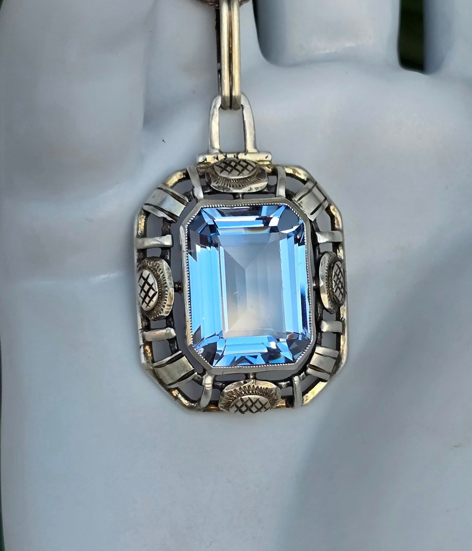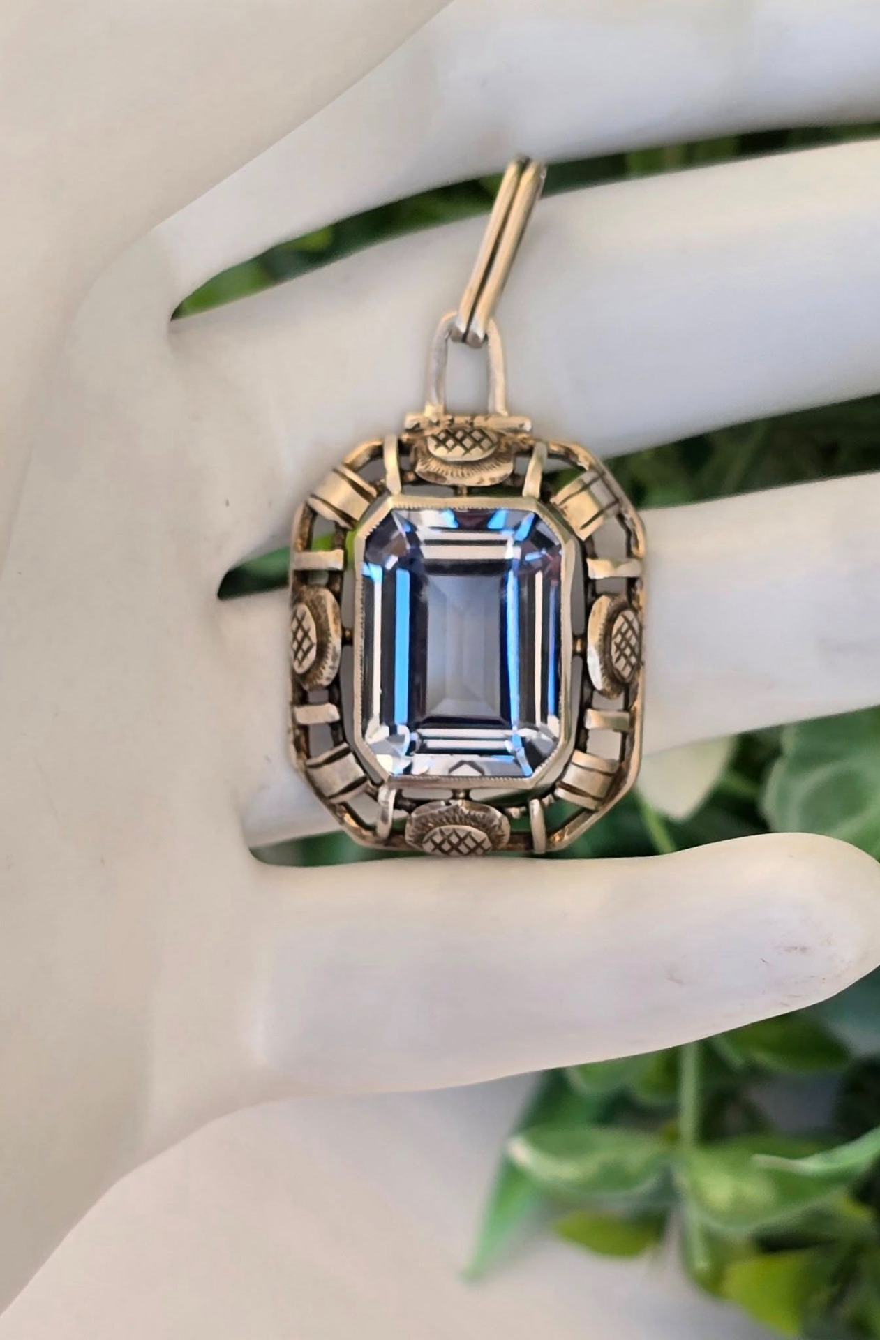 Pandantiv Art Deco din argint, cu un superb topaz natural (anii 1930-1940, Germania).