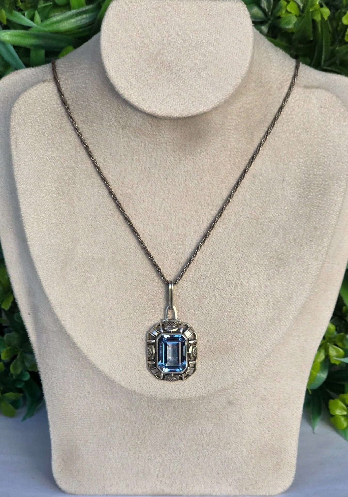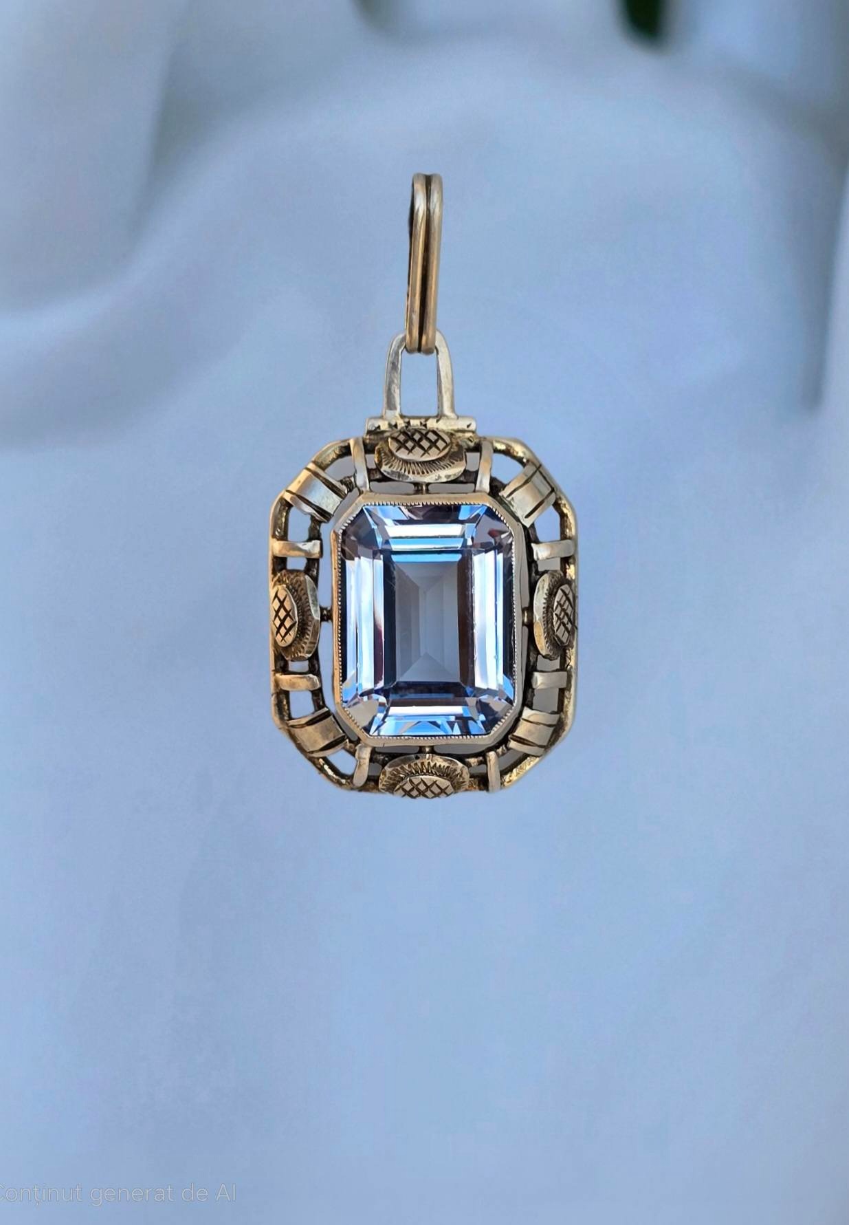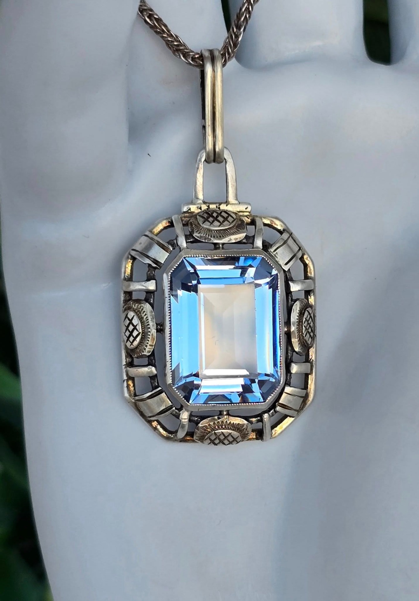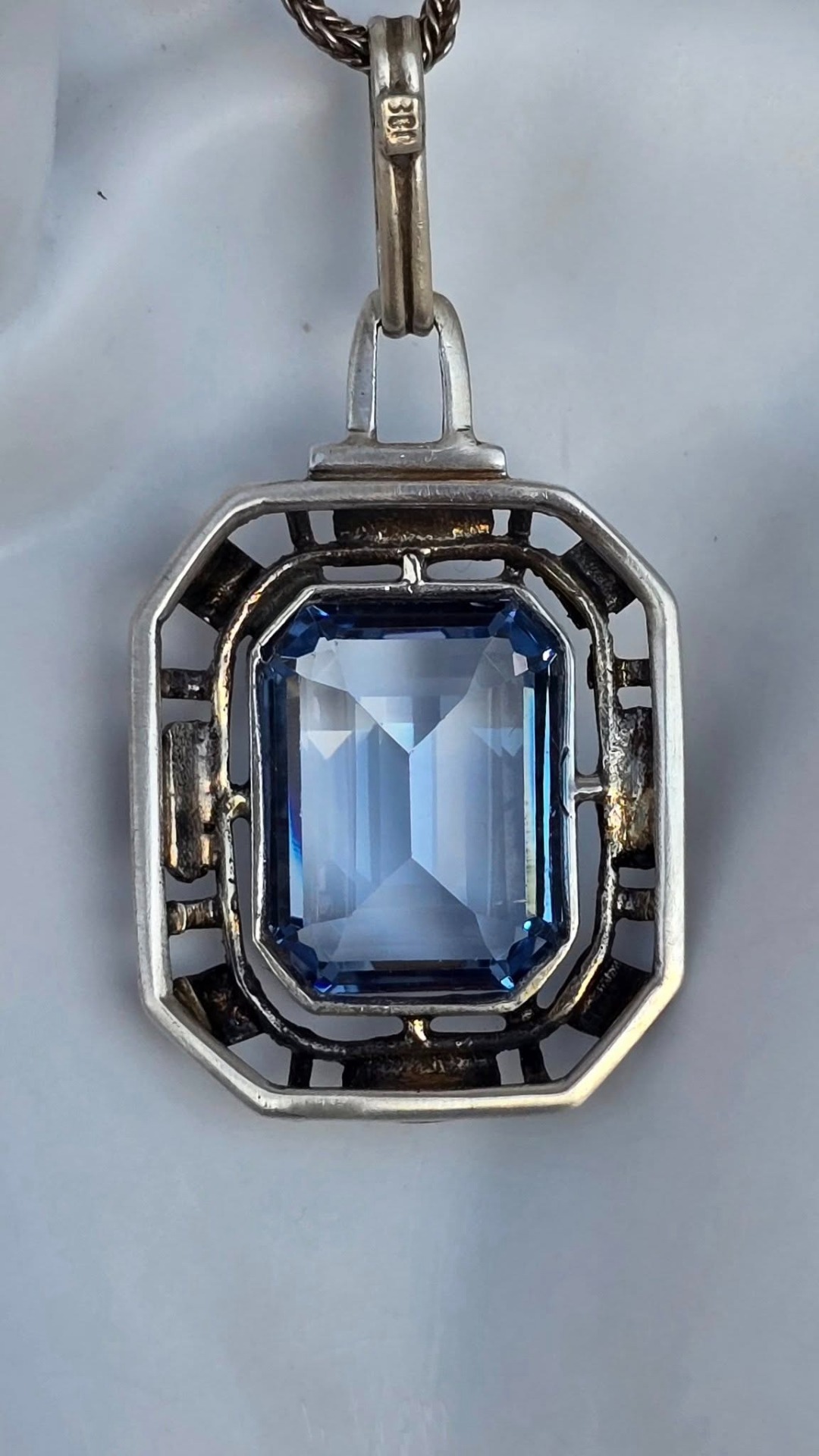 Pandantiv Art Deco din argint, cu un superb topaz natural (anii 1930-1940, Germania).