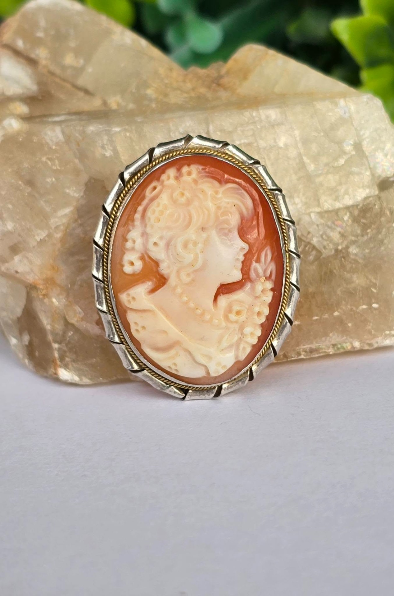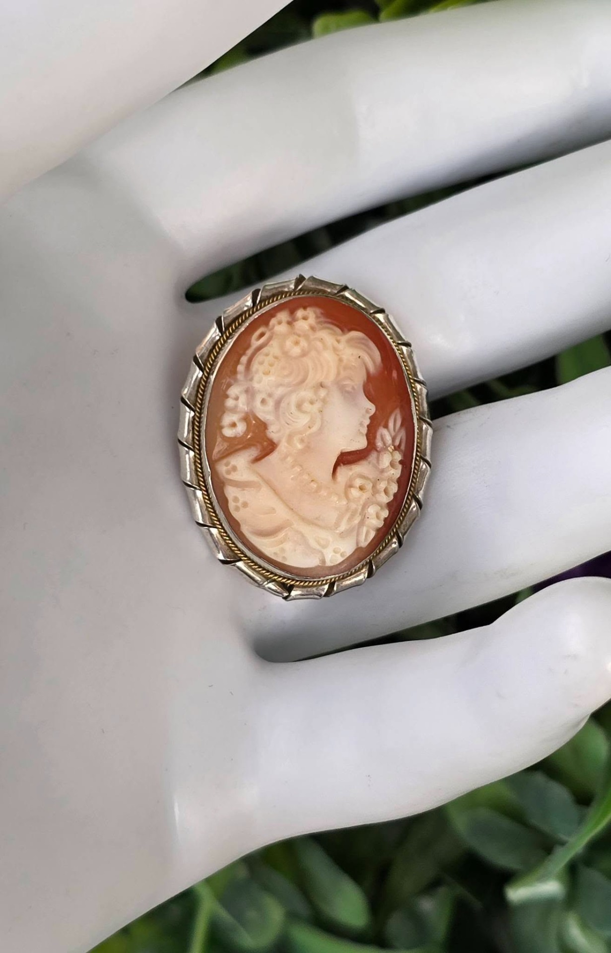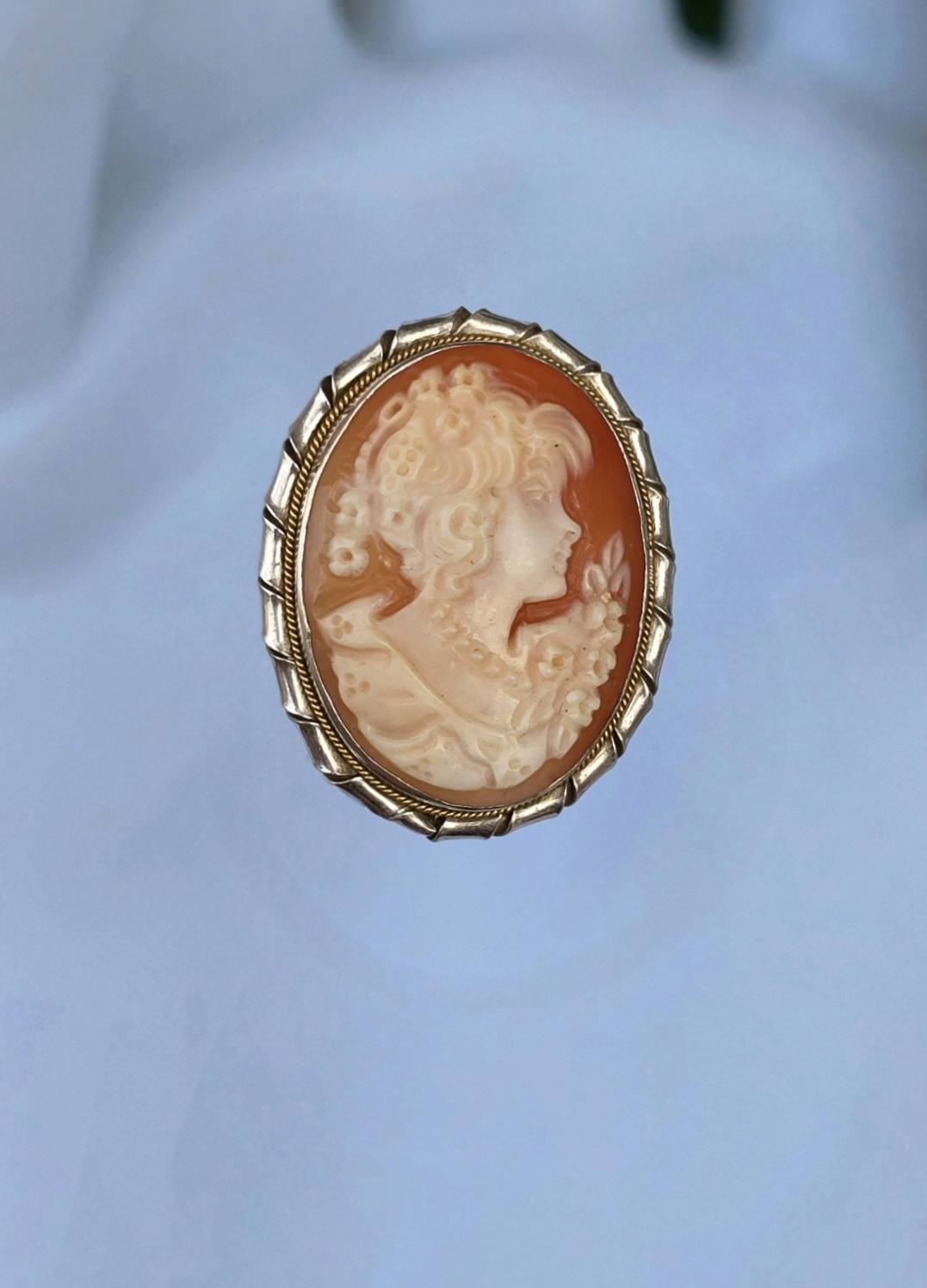 Pandantiv-broșă vechi, camee în scoică naturală în montură din argint (jum.sec.XX, Napoli, Italia).