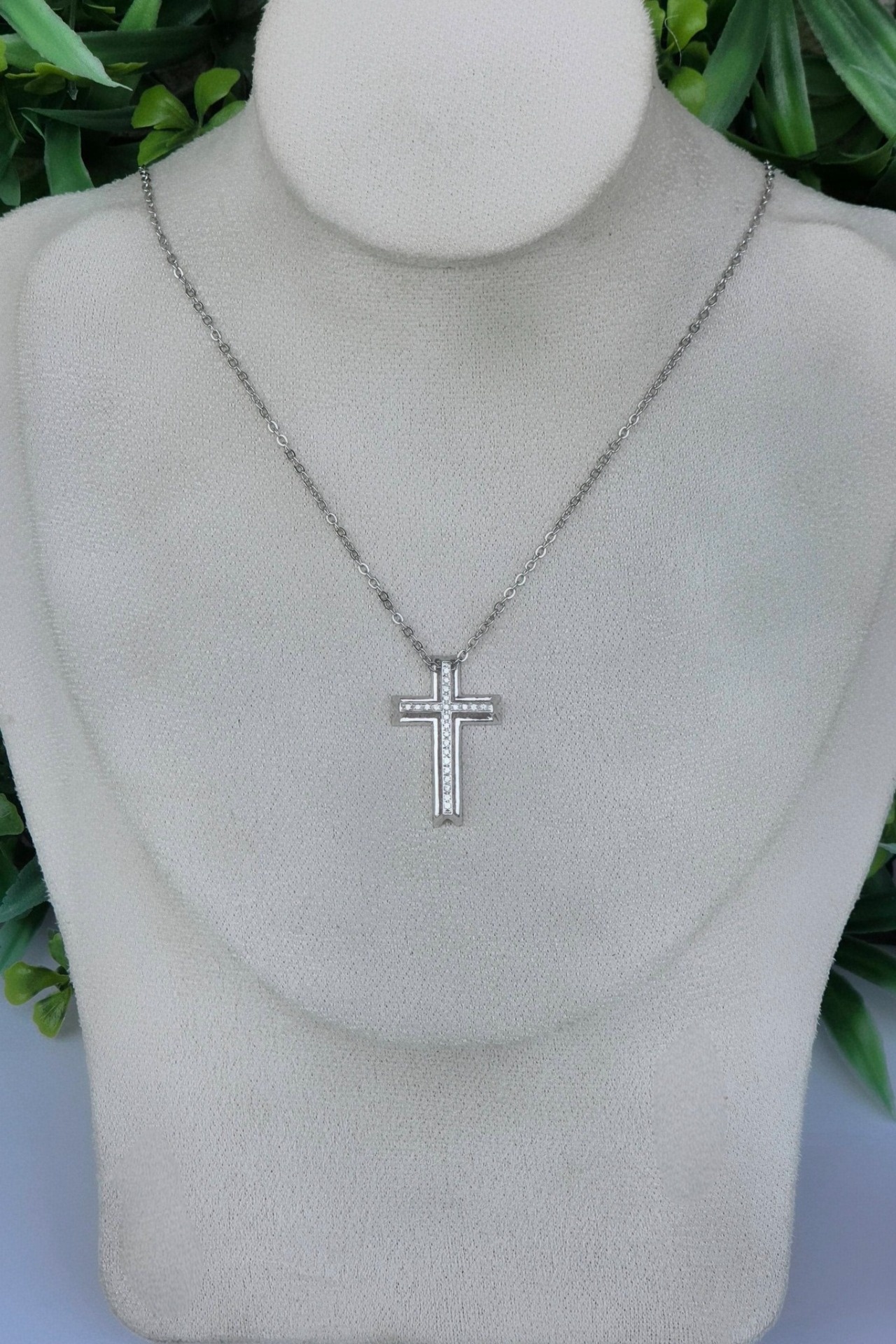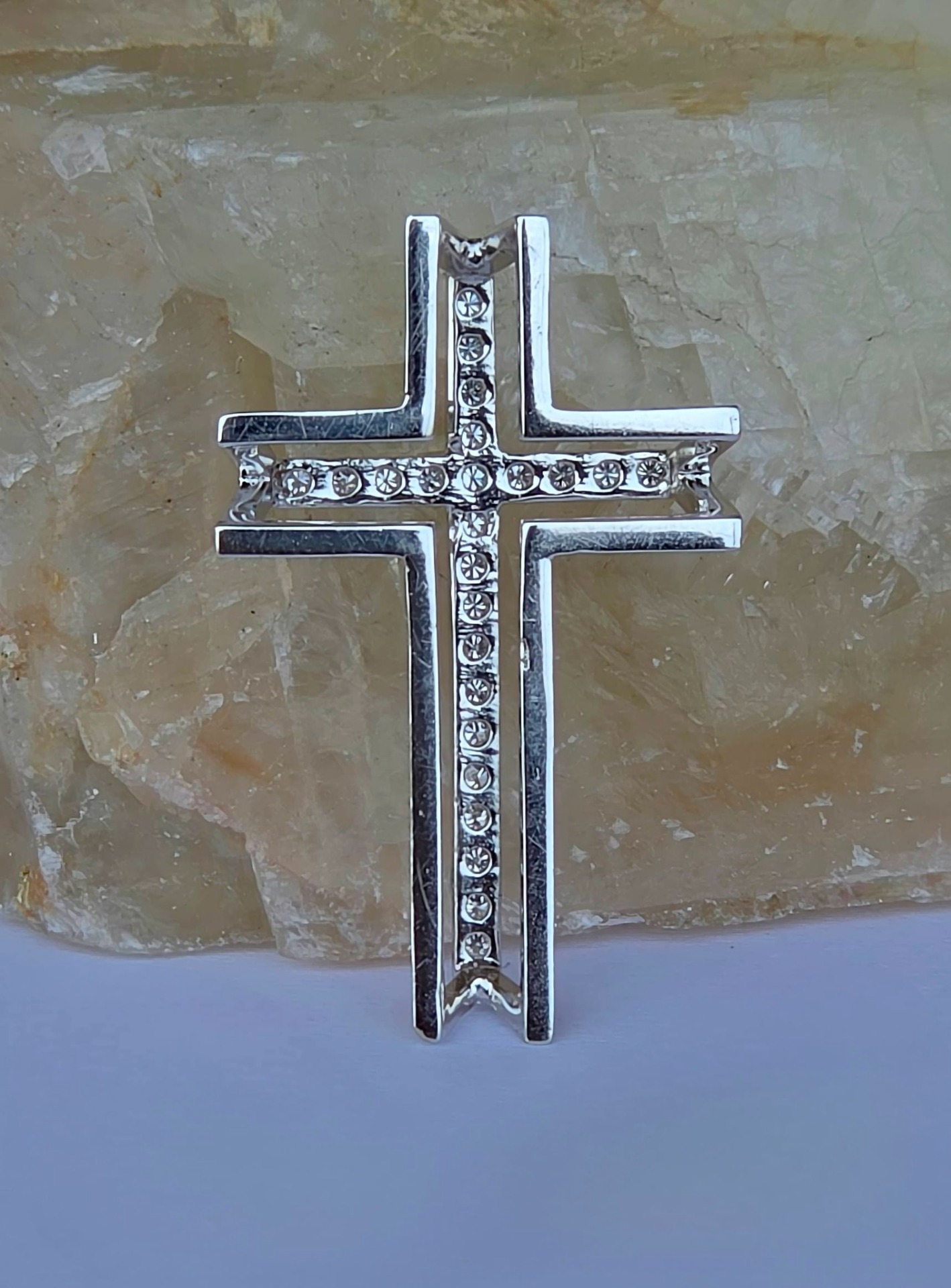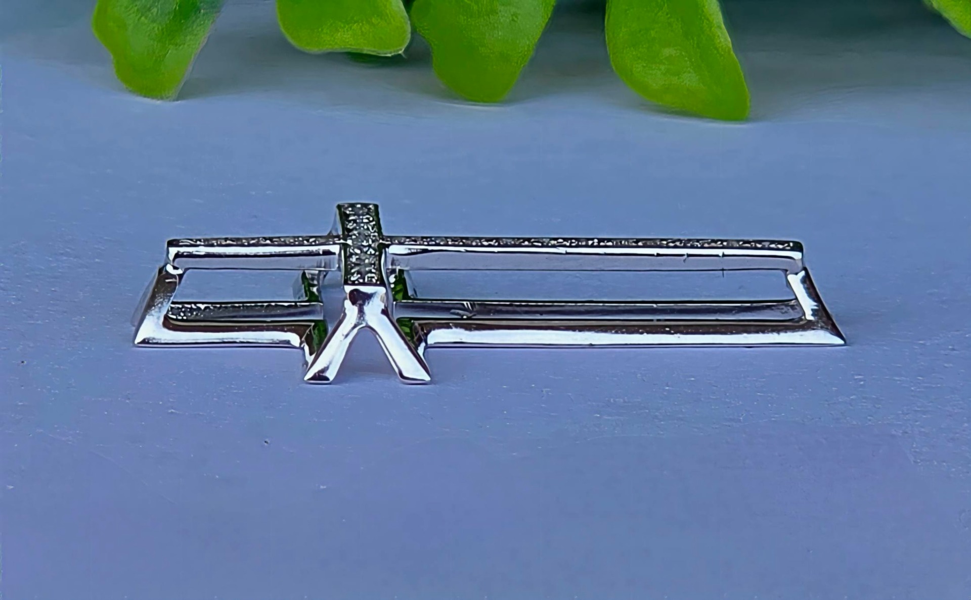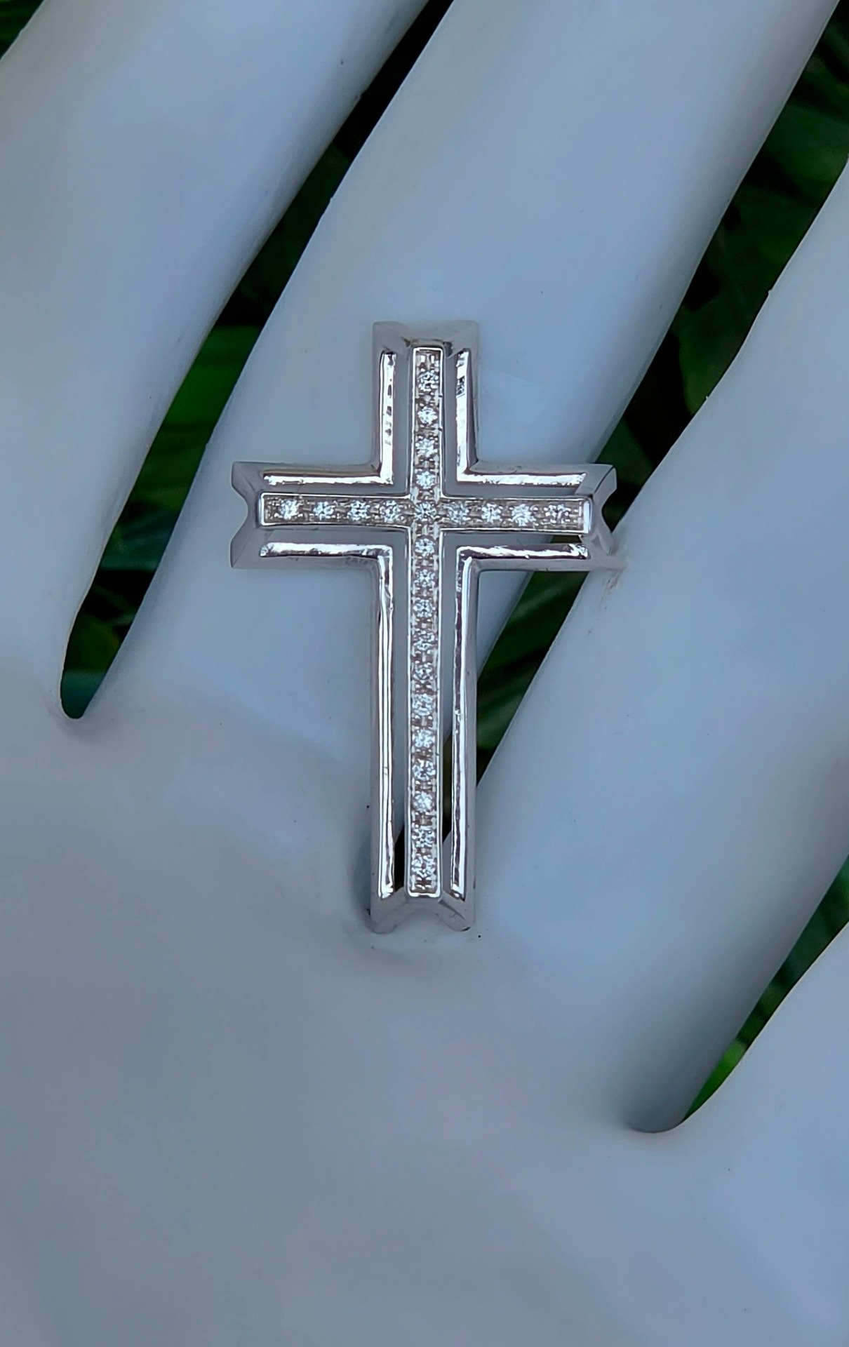 Pandantiv-cruce superb, din aur alb de 18K, cu 24 diamante naturale de calitate excepțională.