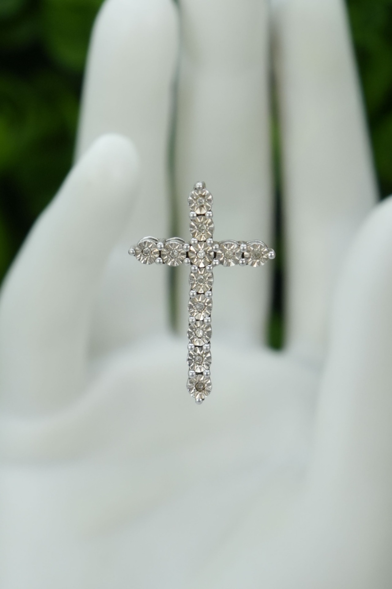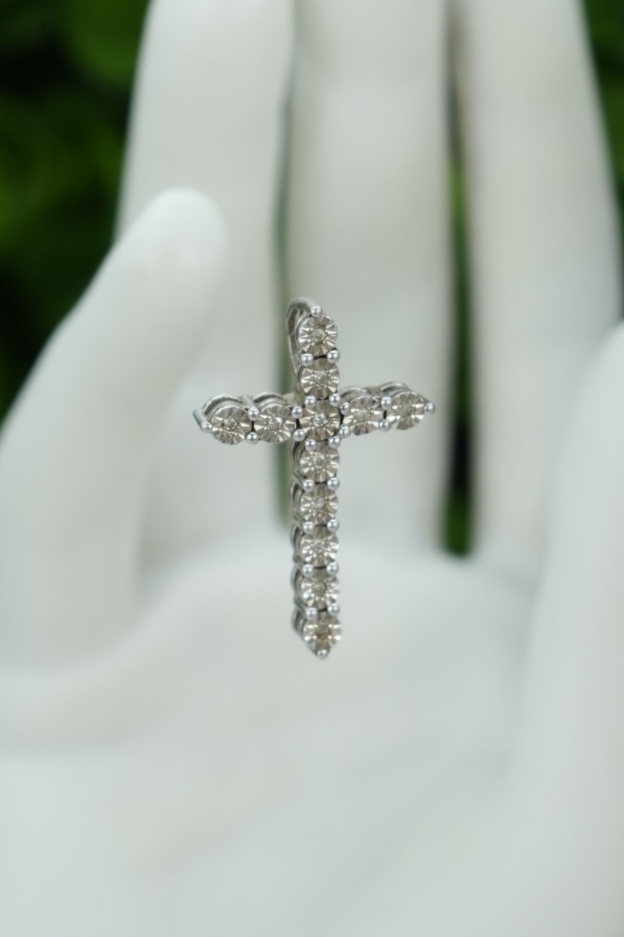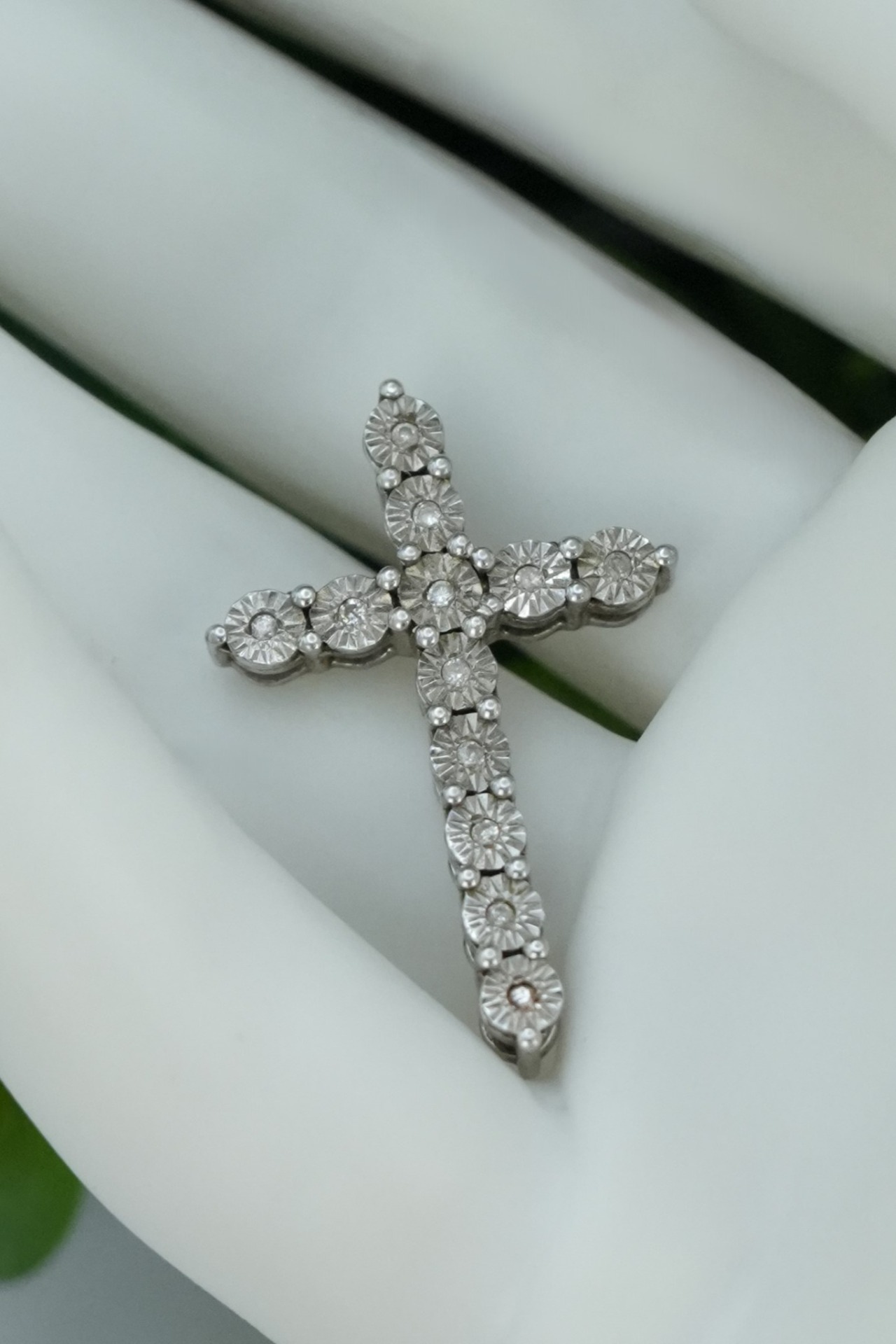 Pandantiv-cruce vechi din argint, cu 12 diamante naturale.