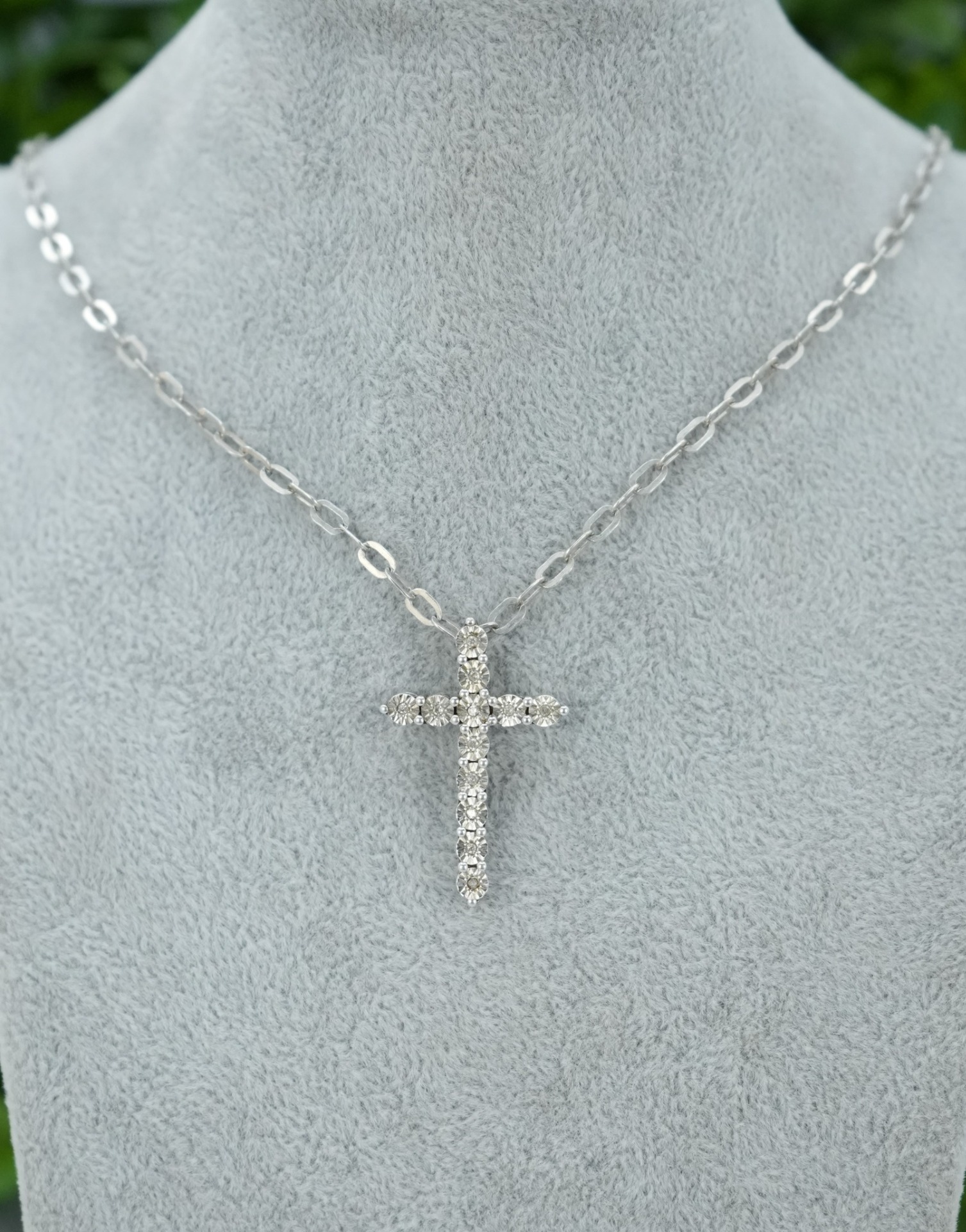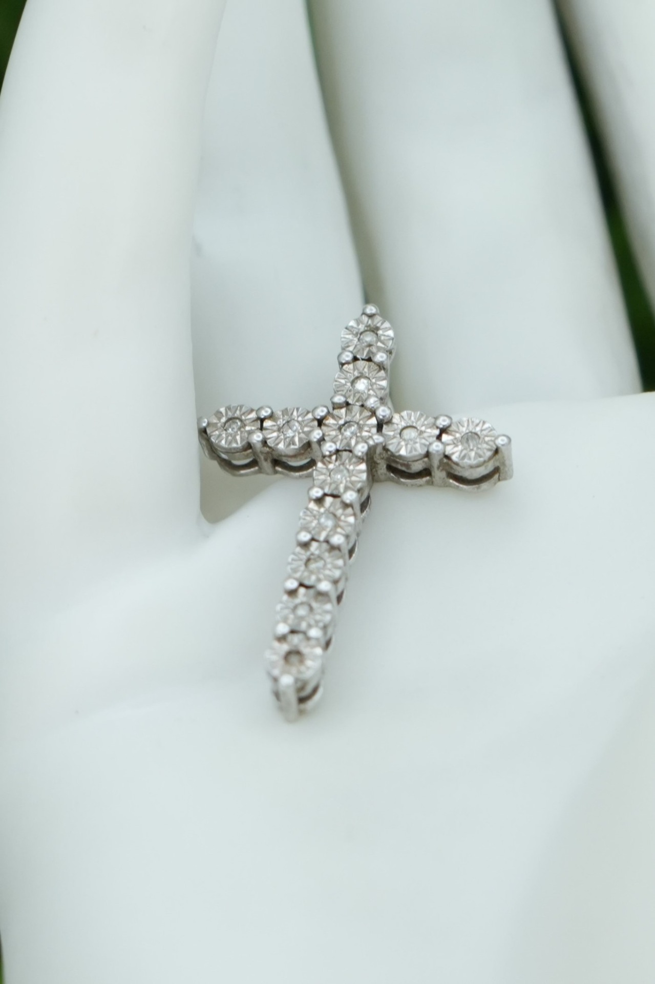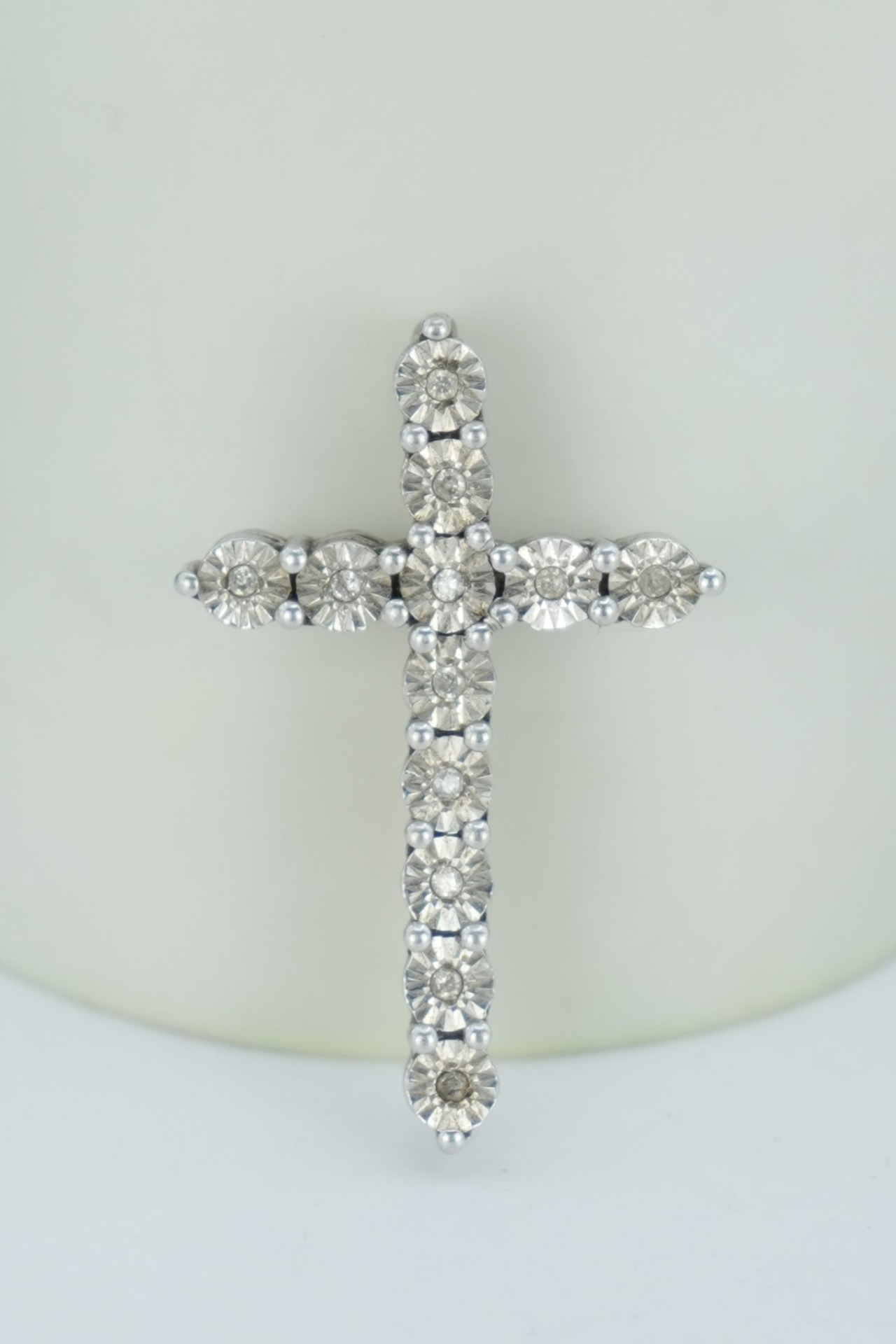 Pandantiv-cruce vechi din argint, cu 12 diamante naturale.
