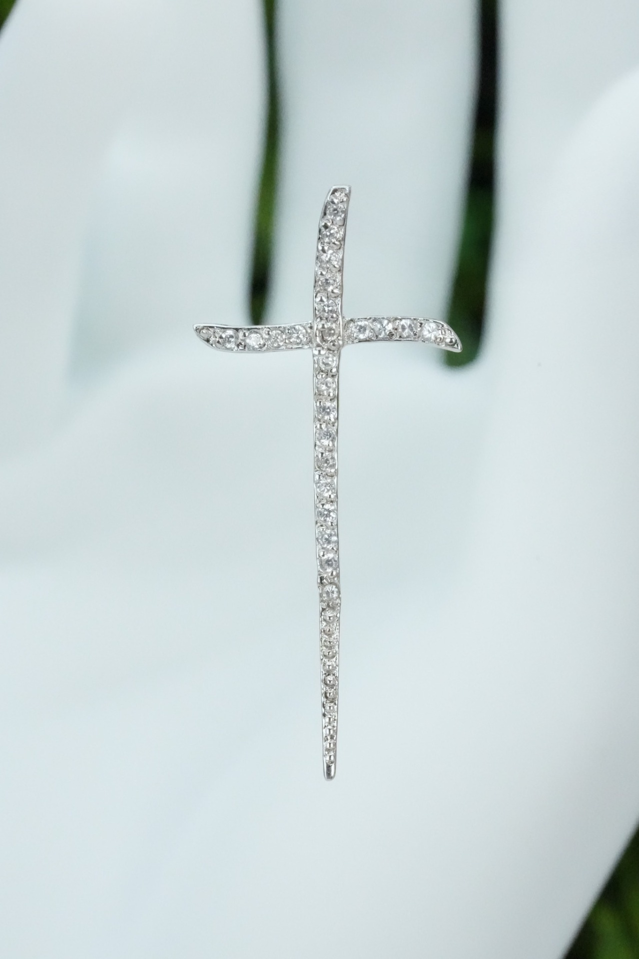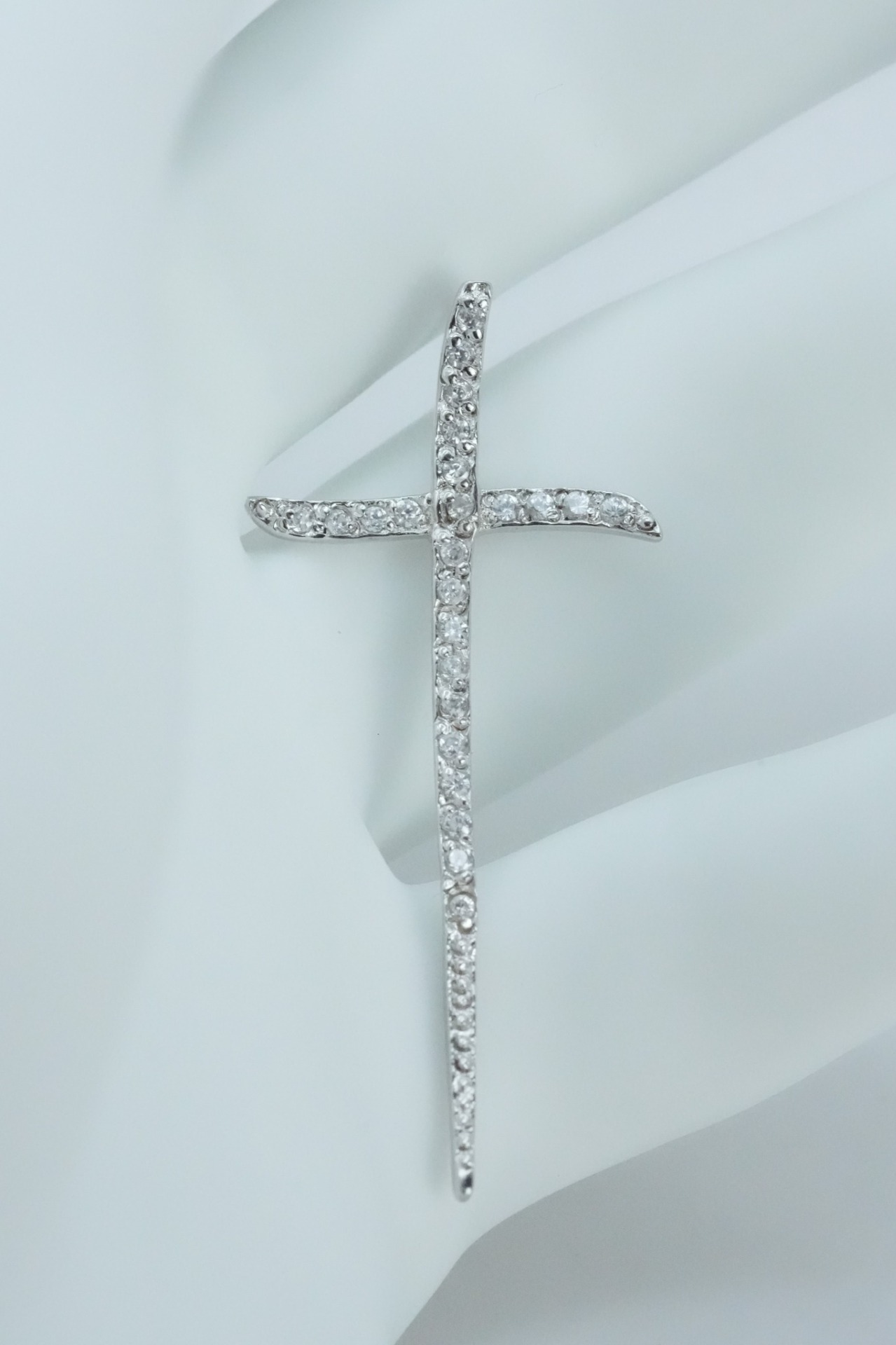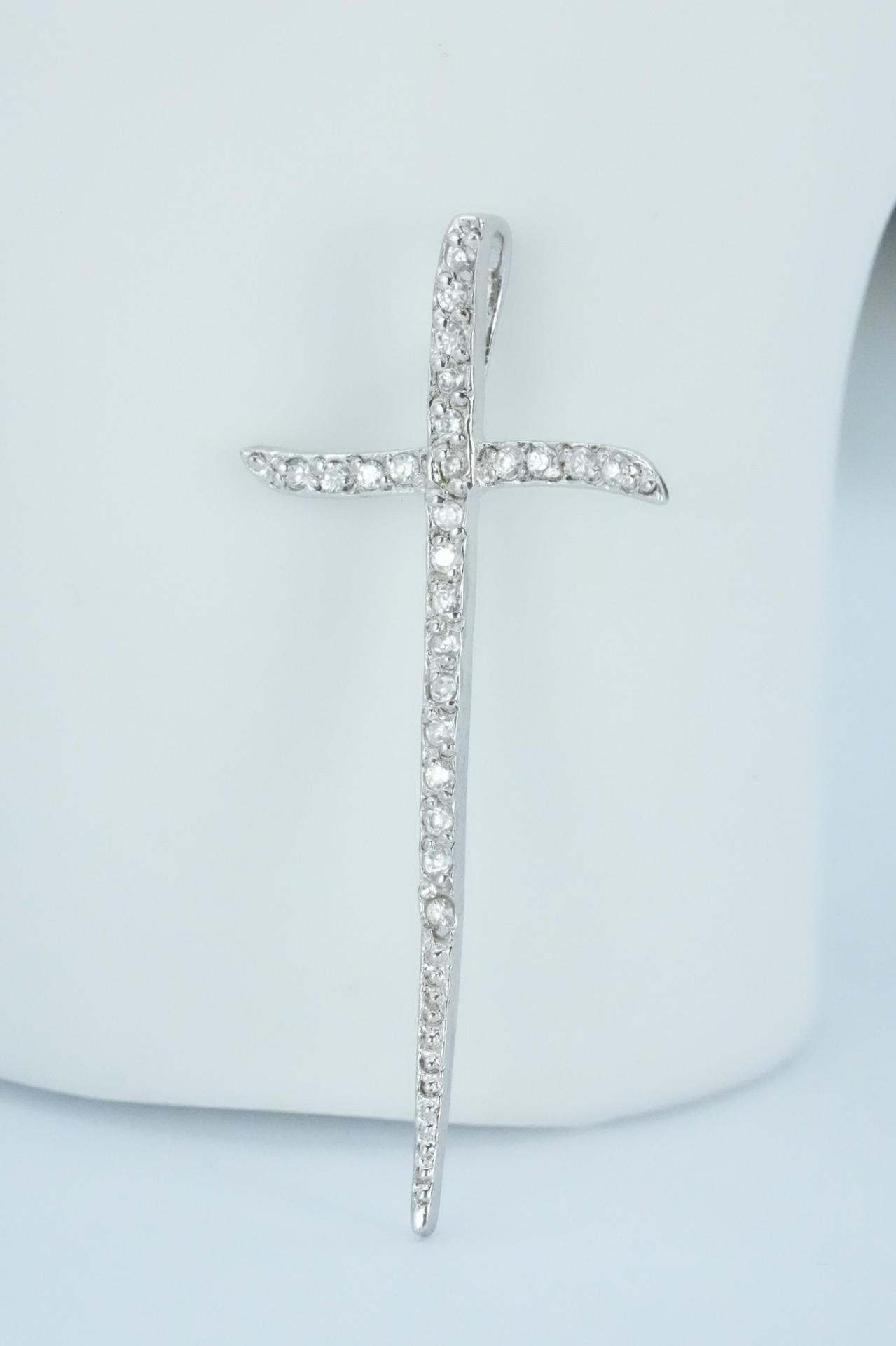 Pandantiv-cruce vechi din argint, cu pietre cubic zirconia.