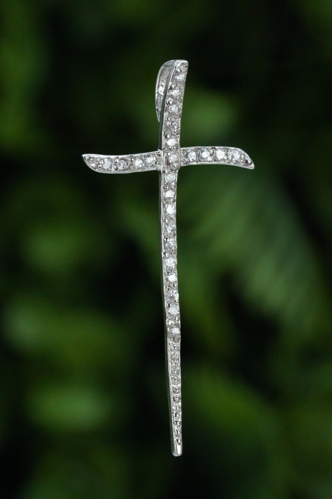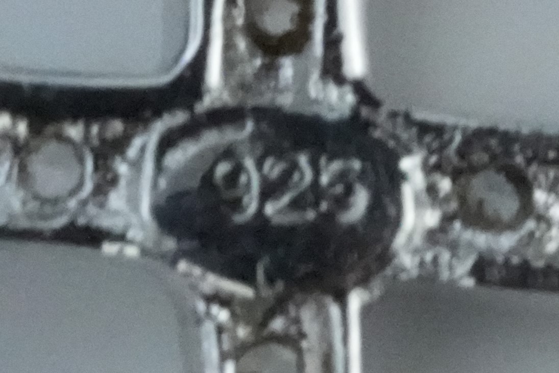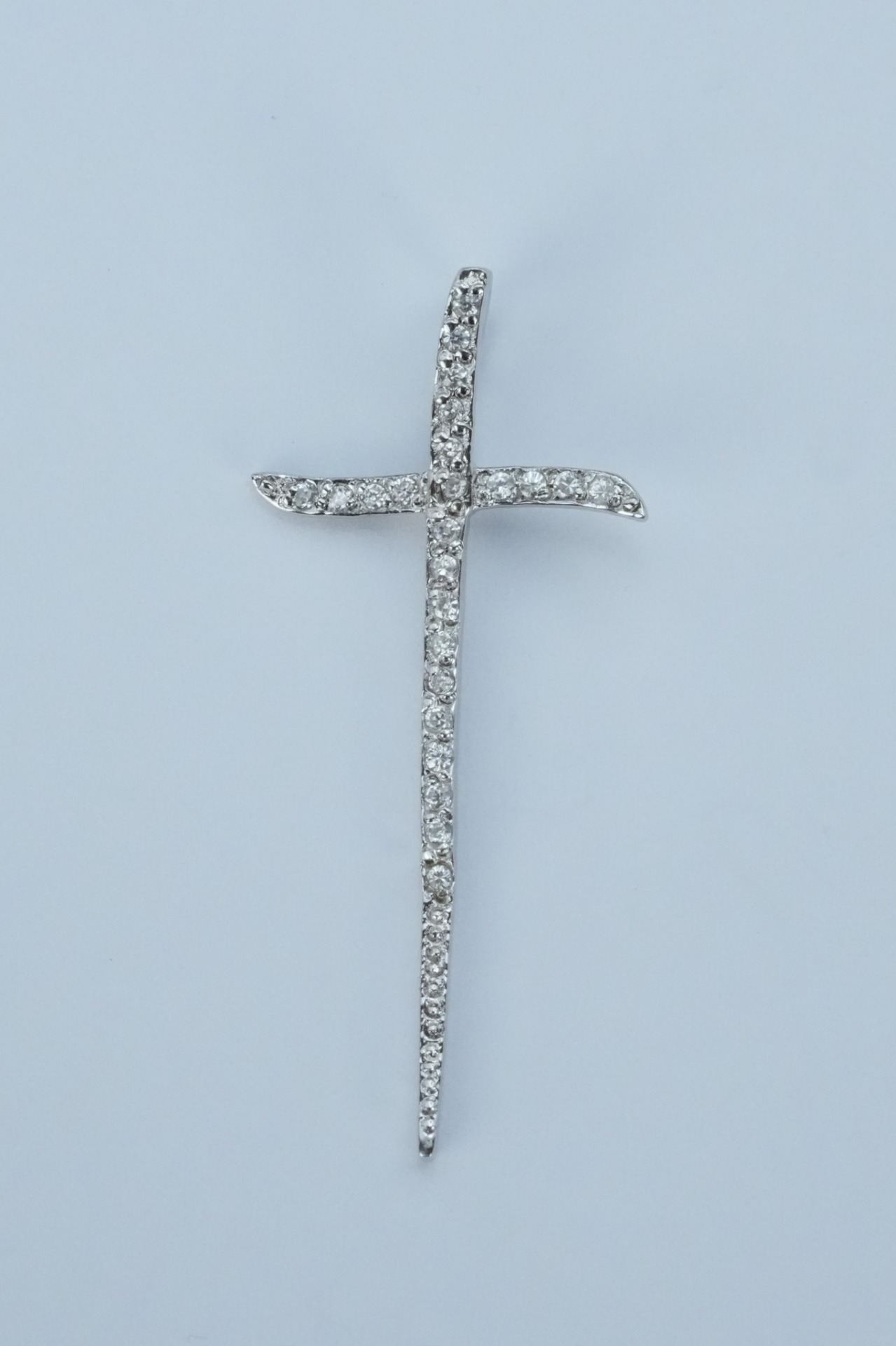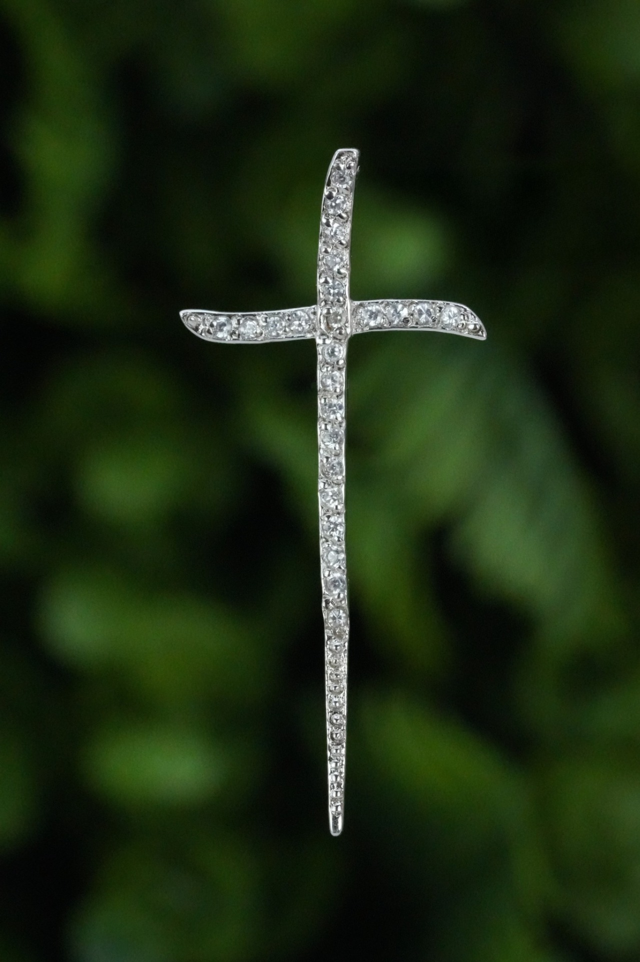 Pandantiv-cruce vechi din argint, cu pietre cubic zirconia.