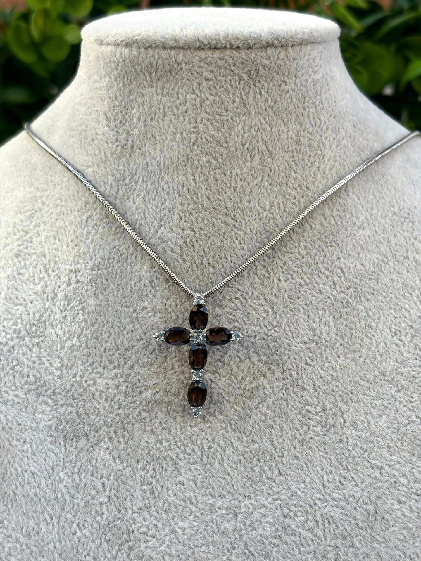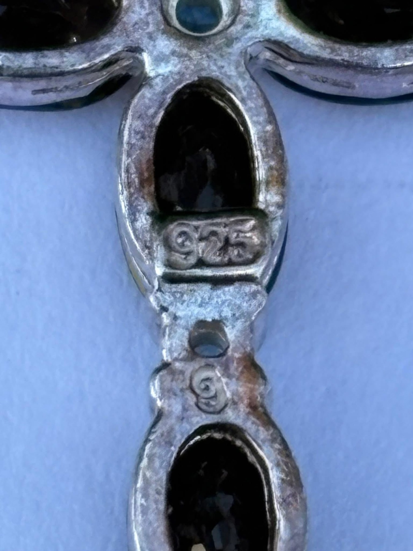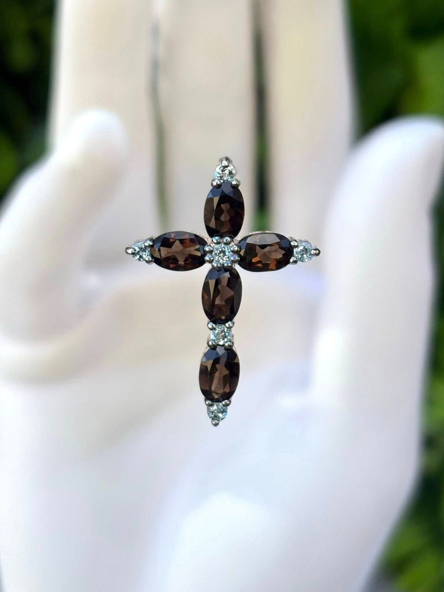 Pandantiv-cruce vechi, din argint, cu topaze și cuarț fumuriu naturale.