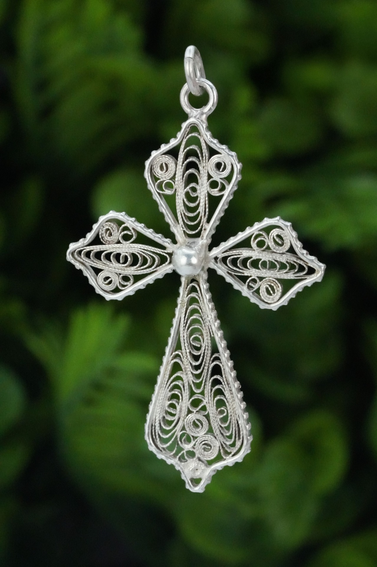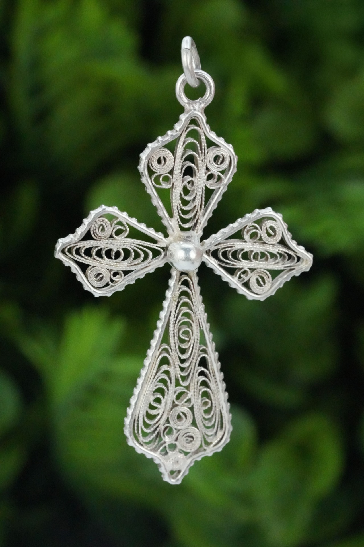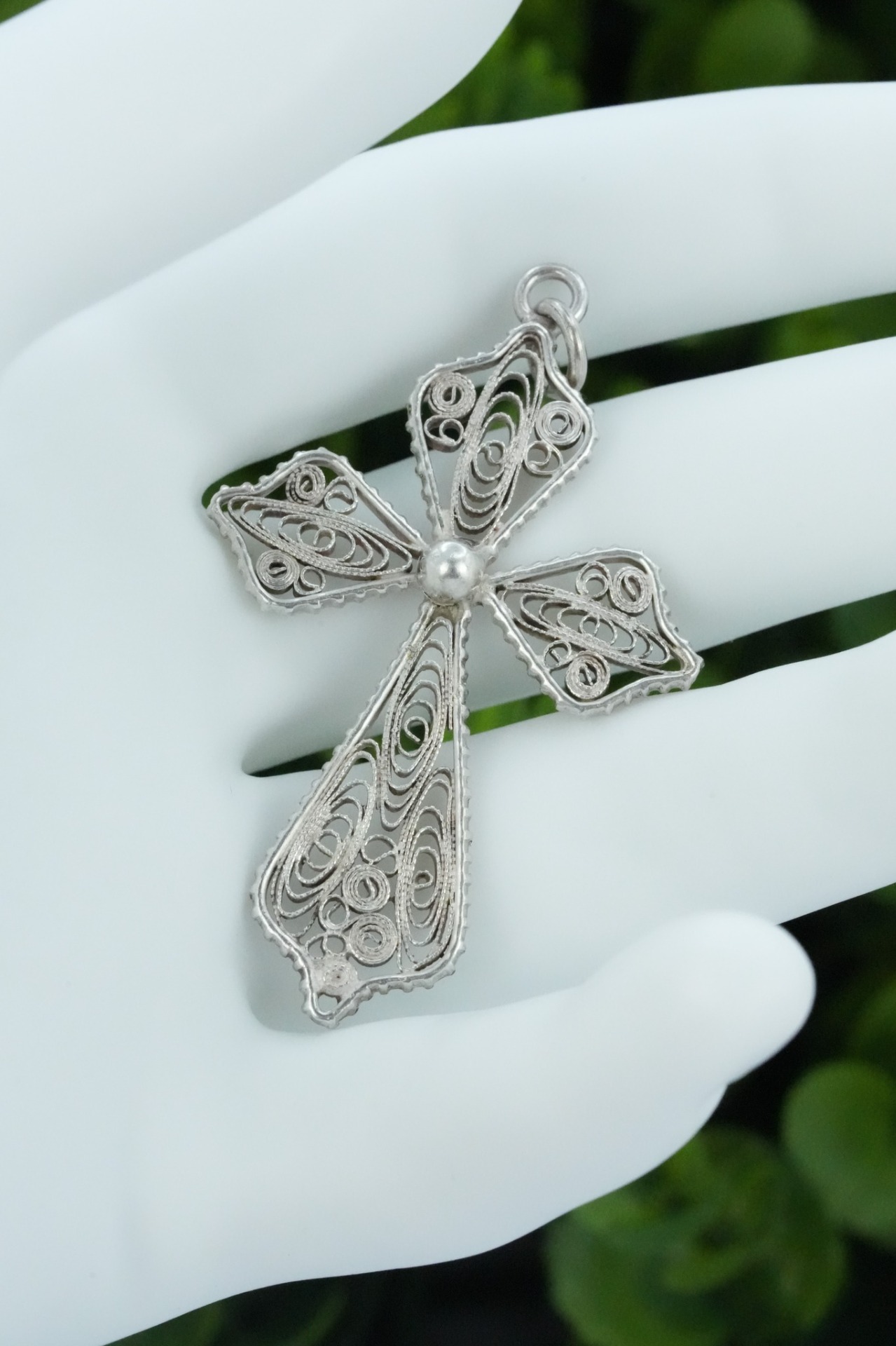 Pandantiv-cruce vechi din argint, manufactură deosebită în filigran.