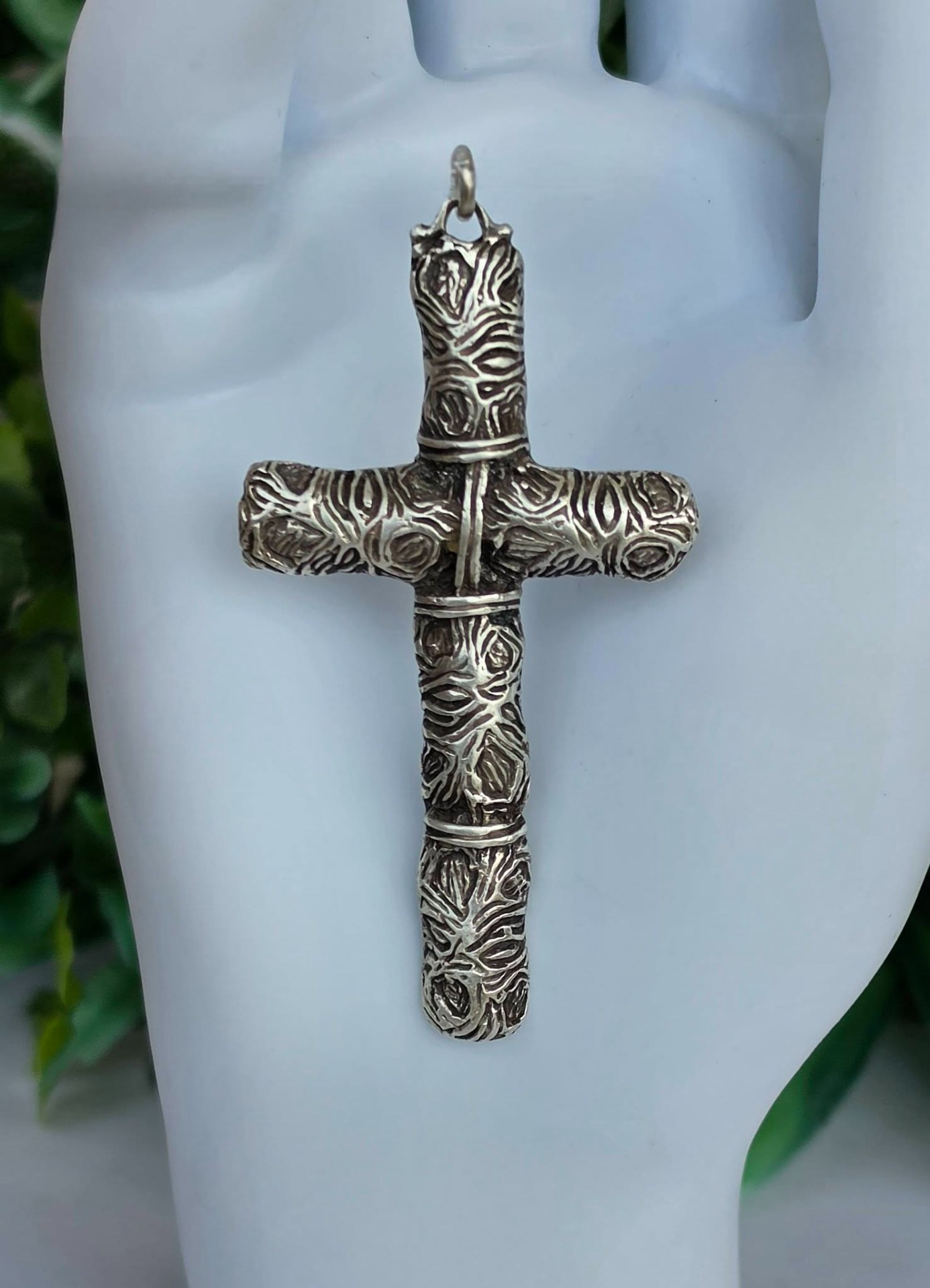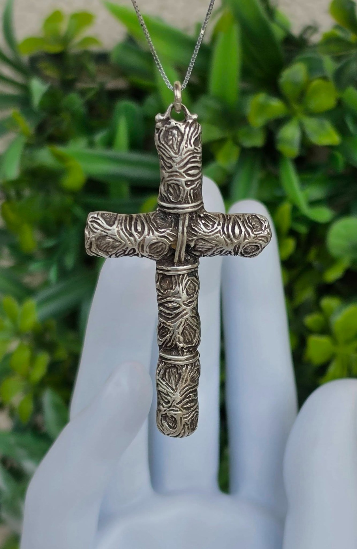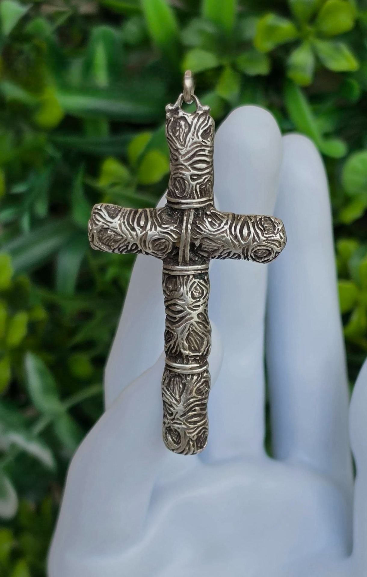 Pandantiv-cruce vechi din argint, manufactură deosebită în stil brutalist